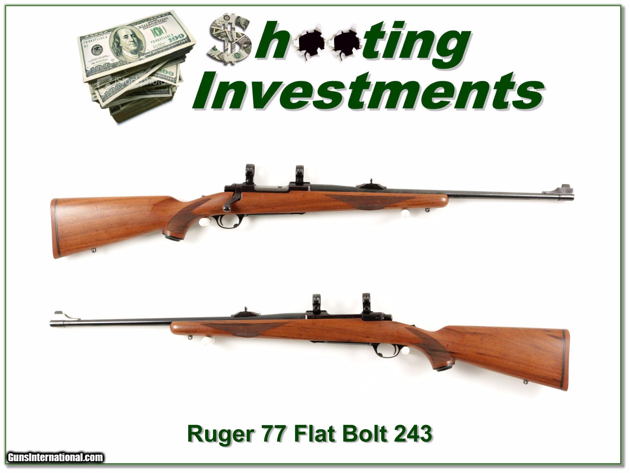 Description: Collectors, hunters and shooters, this is an early Ruger 77 Flat bolt in 243 Winchester. These early 77’s Flat bolts are of course pre-warning Red Pad tang safety guns. It has a 22in barrel with factory open sites. This one has excellent blue with factory rings and only a few minor marks on the wood. It will make a classic hunting gun or fine addition to your collection! Shipping and insurance is $39 or $19 more if you want it shipped in a new Plano hard case. Please email me with any questions or larger pictures. (Consign your quality firearms with Shooting Investments for only 10%! Let me know if you have any you would like to sell!) 17-1138 Payment: Payment is by Money Order, Cashiers Check or Personal Check. I can now also accept MasterCard and Visa with a 3% convenience fee. PayPal can be used for some items but never firearms. Please let us know if you would like to pay via PayPal. Shipping: The shipping charge will be listed in each description. It is $39 for most long guns and $29 for most handguns. Some heavy guns or those insured for over $2000 will be higher. Shipments to Alaska and Hawaii are higher because air shipment is required. Most firearms are shipped on Tuesday and Thursday and usually in 5 days of receipt of payment. We package all shipments carefully and insure them. For long guns you can purchase a new Plano case for $19. They now cost us $22 when buying 100 at a time. Optics are shipped Priority Mail and most other non-firearm shipments are shipped First Class. Returns: Our return policy is simple. If for any reason you are not pleased with your purchase, you may return your item for a full refund of purchase price. Ammunition cannot be returned. It is important to us that you are happy. Guns cannot be fired or dissembled before returning them and they must be returned in the same condition as received. Notification of a return must occur with-in 3 days of receipt at your dealer. Shipping, convenience and dealer fees are not refundable and are the responsibility of the buyer. Lay-a-way: If needed, we offer a 60 day lay-a-way option on most firearms. It is 1/3 now, 1/3 in 30 days and 1/3 in 60 days. Lay-a-way firearm sales are final and if not completed the first payment cannot be returned. Consigning your firearms with Shooting Investments: We will help you get top dollar for your firearms. While most local guns shops charge 20% or more, our fee is only 10% with a minimum of $75. At your local gun shop it might take months to sell. Selling on-line provides instant access to thousands of interested buyers. You won’t find any other on-line dealer willing to sell your firearms for only 10% or listing every gun on 3 separate s. Selling through an House typically costs the seller 15% and the buyer an addition 15% (so 30%) and you have to wait several months to sell and longer to receive funds. If properly priced, we will sell your firearms in a few weeks. Send us an email or give us a call and we’ll explain how easy it is for you to get top dollar. Trading: Trading for use is really just buying your gun to re-sell. If you have a gun you want to trade, please email a picture and we will let you know what we can give or it. You will always get more if we sell it for you on consignment. Help for California Buyers: We are happy to ship to California. It is the buyer’s responsibility to make sure any item you buy is legal in your state. We are also happy to help with your purchase of a firearm from someone other than us. If you see a gun you would like to buy but the seller can’t or won’t ship to California they can ship to use and we’ll then ship it to your California dealer. The cost for this service is only $30 + shipping. Let us know if we can help! SOLD |