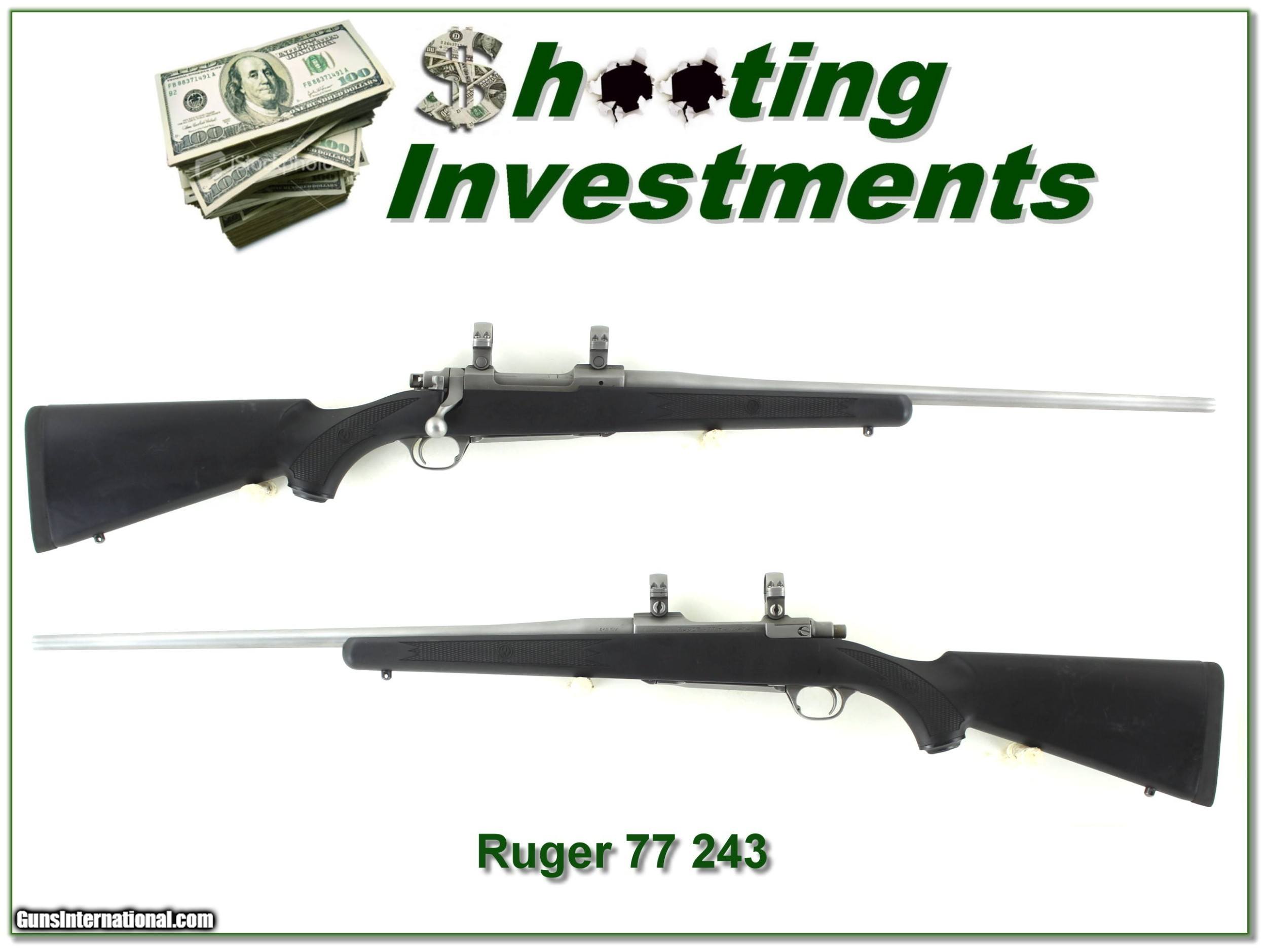 Description: This is an excellent condition Ruger 77 Hawkeye in 243 Winchester. It is the stainless all-weather model with 22in barrel. It comes with 3 factory stainless rings so you can accommodate any scope height. I am selling this one on consignment and as such lay-a-way can’t be used. It does of course have the standard 3-day inspection. Shipping and insurance is $39. Please email me with any questions or larger pictures. (Consign your quality firearms with Shooting Investments for only 12%! Let me know if you have any you would like to sell!) 21-1256 Payment: Payment is by Money Order, Cashiers Check or Personal Check. I can now also accept Credit Cards (MasterCard, Visa, Discover & American Express) with a 3% convenience fee. Shipping: The shipping charge will be listed in each description. It is $39 for most firearms. Some heavy guns or those insured for over $2000 will be higher. Shipments to Alaska and Hawaii are higher because air shipment is required. Most firearms are shipped on Tuesday and Thursday and usually in 5 days of receipt of payment. We package all shipments carefully and insure them. Optics are shipped Priority Mail and most other non-firearm shipments are shipped First Class. Returns: Our return policy is simple. If for any reason you are not pleased with your purchase, you may return your item for a full refund of purchase price. Ammunition cannot be returned. It is important to us that you are happy. Guns cannot be fired or dissembled before returning them and they must be returned in the same condition as received. Notification of a return must occur with-in 3 days of receipt at your dealer. Shipping, convenience and dealer fees are not refundable and are the responsibility of the buyer. Lay-a-way: If needed, we offer a 60 day lay-a-way option on most firearms. It is 1/3 now, 1/3 in 30 days and 1/3 in 60 days. Lay-a-way firearm sales are final and if not completed the first payment cannot be returned. Consigning your firearms with Shooting Investments: We will help you get top dollar for your firearms. While most local guns shops charge 20% or more, our fee is only 12% with a minimum of $75. At your local gun shop it might take months to sell. Selling on-line provides instant access to thousands of interested buyers. You won’t find any other on-line dealer willing to sell your firearms for only 12% or listing every gun on 3 separate s. Selling through an House typically costs the seller 15% and the buyer an addition 15% (so 30%) and you have to wait several months to sell and longer to receive funds. If properly priced, we will sell your firearms in a few weeks. Send us an email or give us a call and we’ll explain how easy it is for you to get top dollar. Trading: Trading for use is really just buying your gun to re-sell. If you have a gun you want to trade, please email a picture and we will let you know what we can give or it. You will always get more if we sell it for you on consignment. Help for California Buyers: We are happy to ship to California. It is the buyer’s responsibility to make sure any item you buy is legal in your state. We are also happy to help with your purchase of a firearm from someone other than us. If you see a gun you would like to buy but the seller can’t or won’t ship to California they can ship to use and we’ll then ship it to your California dealer. The cost for this service is only $30 + shipping. Let us know if we can help! SOLD |