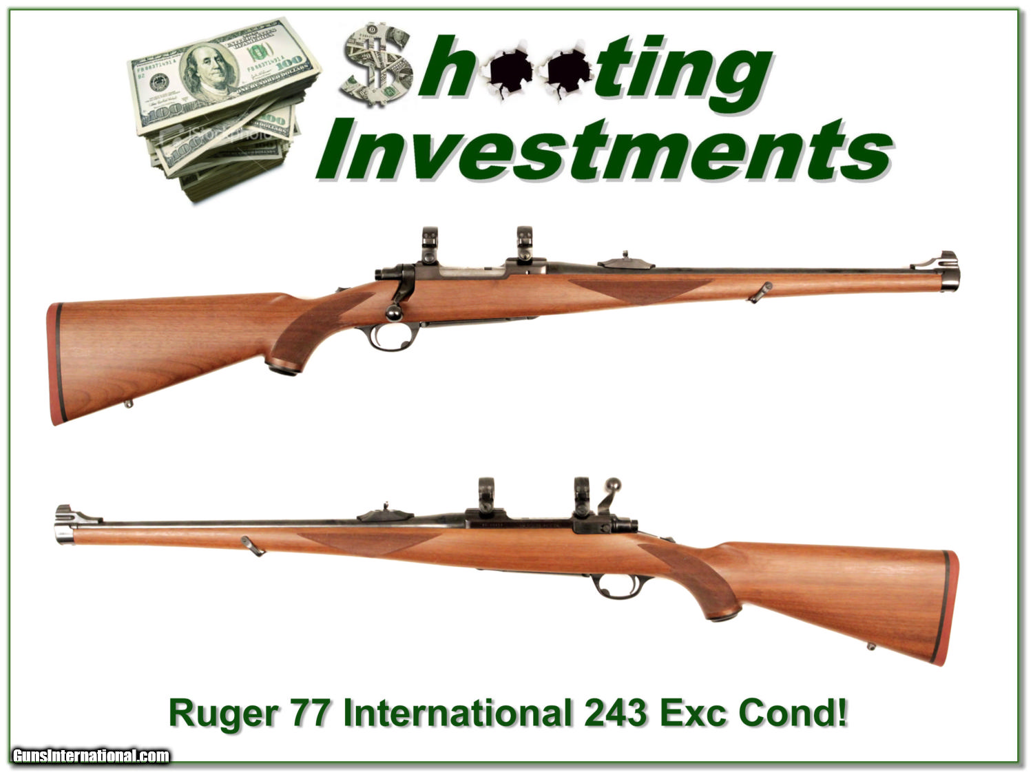 Description: Collectors, hunters, and shooters, this is an excellent near new Ruger 77 International. It is the older Red Pad and chambered in 243 Winchester. It comes with factory rings and open sights as shown. It will make a fine addition to your collection. Shipping and insurance is $35 or $15 more if you want it shipped in a new Plano hard case. Please email me with any questions or larger pictures. (I now consign quality firearms only 10%! Let me know if you have any you would like to sell!) [16-0044] Payment: Payment is by Money Order, Cashiers Check or Personal Check. I can now also accept MasterCard and Visa with a 3% convenience fee. PayPal can be used for some items but never firearms. Please let us know if you would like to pay via PayPal. Shipping: The shipping charge will be listed in each description. It is $35 for most guns. Some heavy guns or those insured for over $2000 will be higher. Shipments to Alaska and Hawaii are higher because air shipment is required. Most firearms are shipped within 5 days of receipt of payment. We prefer shipping at the beginning of the week to avoid firearms in transit over weekends. We package all shipments carefully and insure them for the full purchase price, rounded up to the next $100. In the unlikely event that damage occurs, it is important that you save all packaging material for the claims process. Optics are shipped Priority Mail and most other non-firearm shipments are shipped First Class. Returns: Our return policy is simple. If for any reason you are not pleased with your purchase, you may return your item for a refund. The only exception is ammunition, it cannot be returned. It is important to us that you are happy. Guns cannot be fired or dissembled before returning them and must be returned in the same condition as received. Notification of a return must occur with-in 3 days of receipt at your dealer. Shipping, convenience and dealer fees are not refundable and are the responsibility of the buyer. Lay-a-way: If needed, we offer a 60 day lay-a-way option on most firearms. It is 1/3 now, 1/3 in 30 days and 1/3 in 60 days. Lay-a-way firearm sales are final. Consigning your firearms with Shooting Investments: We will help you get top dollar for your firearms. While most local guns shops charge 20% or more, our fee is only 10% with a minimum of $50. At your local gun shop it might take months to sell. Selling on-line provides instant access to thousands of interested buyers. You won’t find any other on-line dealer willing to sell your firearms for only 10% or listing every gun on 4 separate s. Selling through an House typically costs the seller 15% and the buyer an addition 15% (so 30%) and you have to wait several months to sell and longer to receive funds. If properly priced, we will sell your firearms in a week or two. Send us an email or give us a call and we’ll explain how easy it is for you to get top dollar. Trading: We collect guns and usually just trade for guns we want to add to our collections. We often sell guns for others wanting to purchase one of ours. We find this the most fair to both of us. Our Commission is only 10% and we hold the gun you want until yours sells. Please contact us if you want to sell one of yours to buy one of ours. Help for California Buyers: We are happy to ship to California. It is the buyer’s responsibility to make sure any item you buy is legal in your state. We are also happy to help with your purchase of a firearm from someone other than us. If you see a gun you would like to buy but the seller can’t or won’t ship to California we can help. You buy the gun and have it shipped to us. We’ll then ship it to your California dealer. The cost for this service is only $30 + shipping. Let me know if we can help! SOLD |
