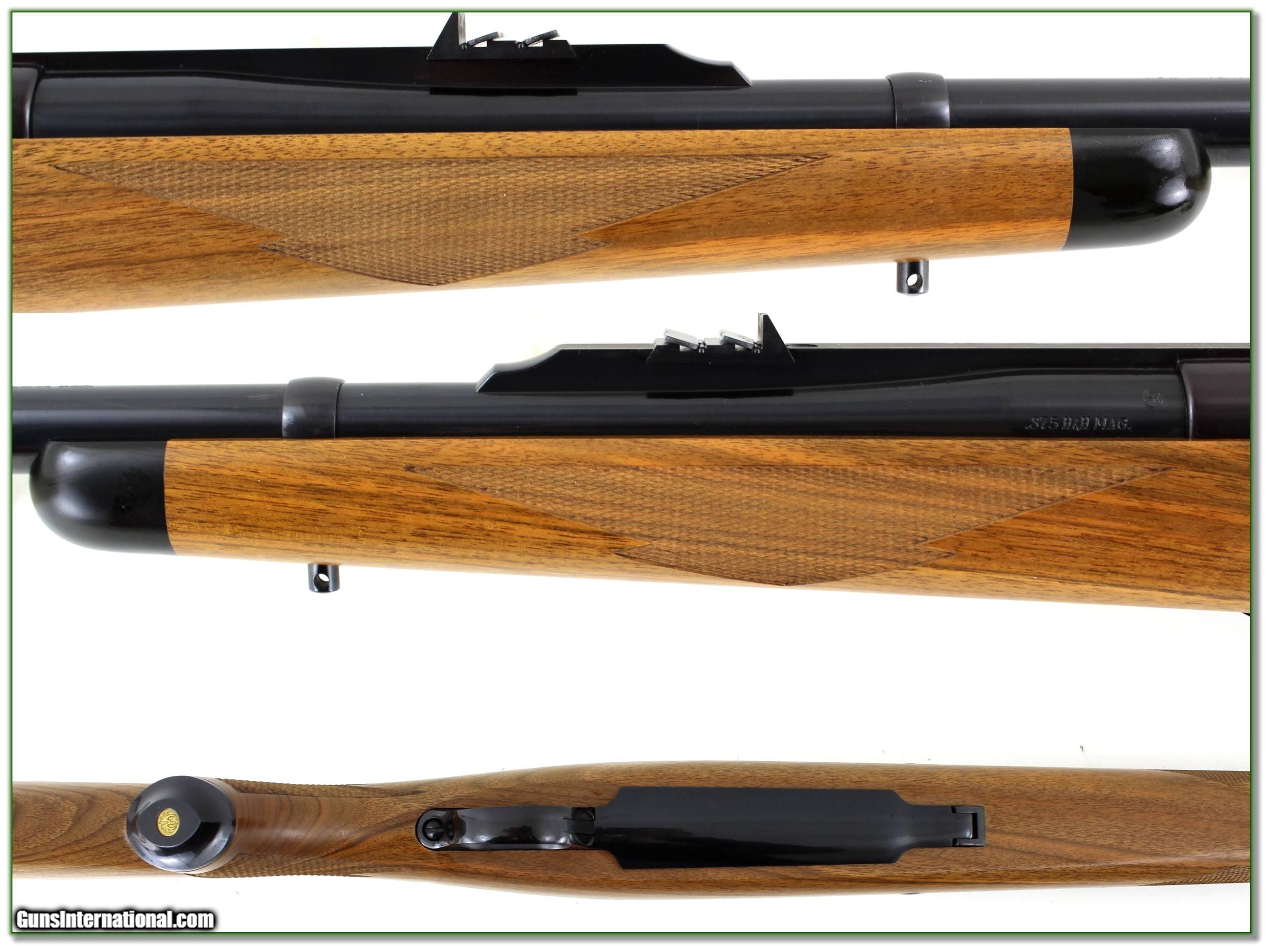 Description: Collectors, this is your chance to own a Ruger 77 Magnum that looks to unfired sine leaving the factory. It has beautiful Cartesian Walnut and a 22in medium heavy barrel with Safari express sights. It comes as seen in factory bow with papers and factory rings still unopened. Shipping and insurance is $39. Please email me with any questions or larger pictures. (Consign your quality firearms with Shooting Investments for only 12%! Let me know if you have any you would like to sell!) 20-0364 Payment: Payment is by Money Order, Cashiers Check or Personal Check. I can now also accept MasterCard and Visa with a 3% convenience fee. PayPal can be used for some items but never firearms. Please let us know if you would like to pay via PayPal. Shipping: The shipping charge will be listed in each description. It is $39 for most guns. Some heavy guns or those insured for over $2000 will be higher. Shipments to Alaska and Hawaii are higher because air shipment is required. Most firearms are shipped on Tuesday and Thursday and usually in 5 days of receipt of payment. We package all shipments carefully and insure them. Returns: Our return policy is simple. If for any reason you are not pleased with your purchase, you may return your item for a full refund of purchase price. Ammunition cannot be returned. It is important to us that you are happy. Guns cannot be fired or dissembled before returning them and they must be returned in the same condition as received. Notification of a return must occur with-in 3 days of receipt at your dealer. Shipping, convenience and dealer fees are not refundable and are the responsibility of the buyer. Lay-a-way: If needed, we offer a 60 day lay-a-way option on most firearms. It is 1/3 now, 1/3 in 30 days and 1/3 in 60 days. Lay-a-way firearm sales are final and if not completed the first payment cannot be returned. Consigning your firearms with Shooting Investments: We will help you get top dollar for your firearms. While most local guns shops charge 20% or more, our fee is only 12% with a minimum of $75. At your local gun shop it might take months to sell. Selling on-line provides instant access to thousands of interested buyers. You won’t find any other on-line dealer willing to sell your firearms for only 12% or listing every gun on 3 separate s. Selling through an House typically costs the seller 15% and the buyer an addition 15% (so 30%) and you have to wait several months to sell and longer to receive funds. If properly priced, we will sell your firearms in a few weeks. Send us an email or give us a call and we’ll explain how easy it is for you to get top dollar. Trading: Trading for use is really just buying your gun to re-sell. If you have a gun you want to trade, please email a picture and we will let you know what we can give or it. You will always get more if we sell it for you on consignment. Help for California Buyers: We are happy to ship to California. It is the buyer’s responsibility to make sure any item you buy is legal in your state. We are also happy to help with your purchase of a firearm from someone other than us. If you see a gun you would like to buy but the seller can’t or won’t ship to California they can ship to use and we’ll then ship it to your California dealer. The cost for this service is only $30 + shipping. Let us know if we can help! SOLD |