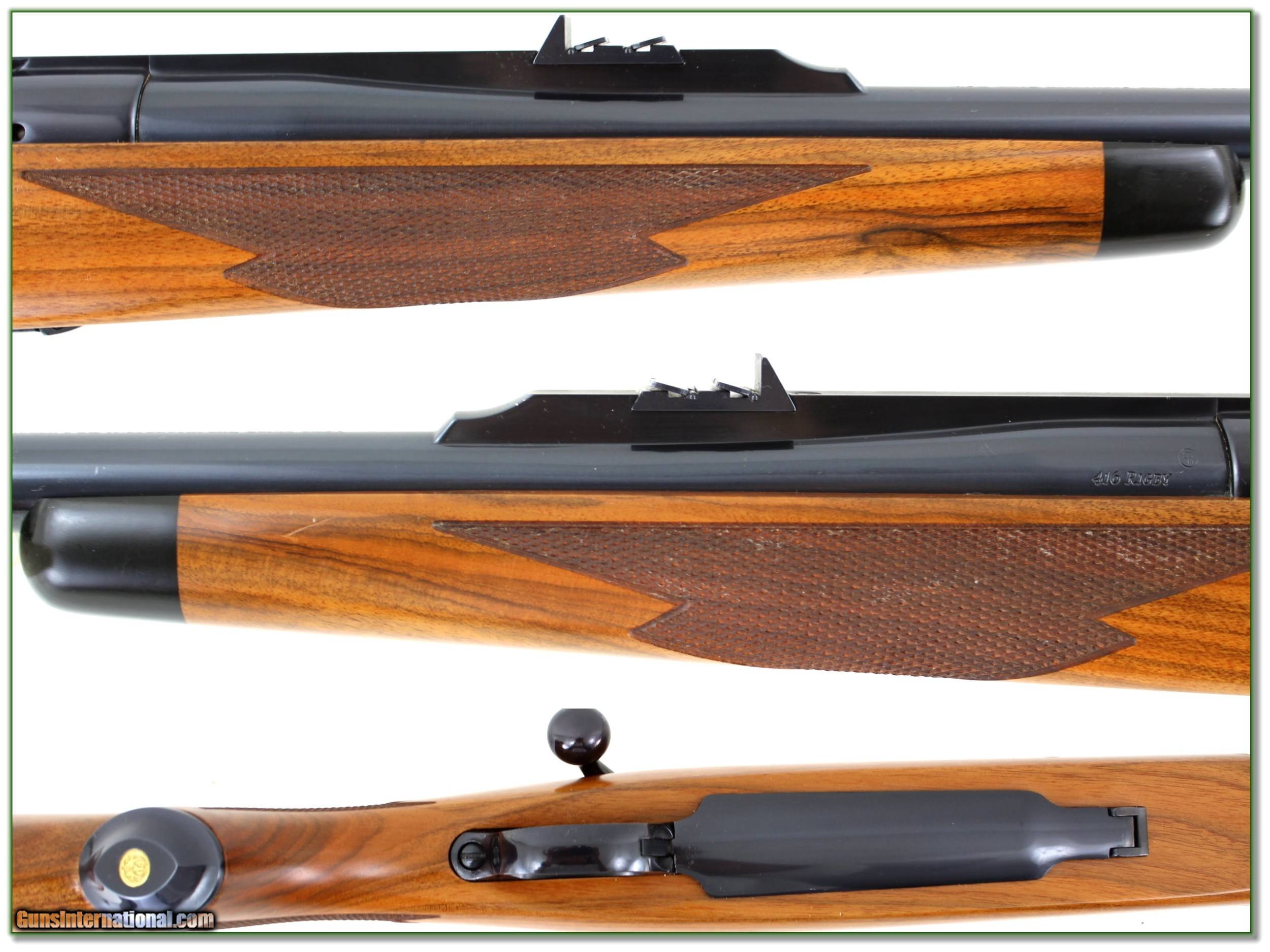 Description: African and Dangerous game hunters, this is a beautiful Ruger RSM in 416 Rigby. It has beautiful cartesian walnut with string horizonal grain and honey colored wood. It has a 24in barrel with express sights and if fired, not more than a couple rounds. It looks new with no marks I find and comes as seen in original box with manual and factory rings. Shipping with insurance is $49. Please email me with any questions or larger pictures. (Consign your quality firearms with Shooting Investments for only 12%! Let me know if you have any you would like to sell!) 20-0774 Payment: Payment is by Money Order, Cashiers Check or Personal Check. I can now also accept Credit Cards (MasterCard, Visa, Discover & American Express) with a 3% convenience fee. Shipping: The shipping charge will be listed in each description. It is $39 for most firearms. Some heavy guns or those insured for over $2000 will be higher. Shipments to Alaska and Hawaii are higher because air shipment is required. Most firearms are shipped on Tuesday and Thursday and usually in 5 days of receipt of payment. We package all shipments carefully and insure them. Optics are shipped Priority Mail and most other non-firearm shipments are shipped First Class. Returns: Our return policy is simple. If for any reason you are not pleased with your purchase, you may return your item for a full refund of purchase price. Ammunition cannot be returned. It is important to us that you are happy. Guns cannot be fired or dissembled before returning them and they must be returned in the same condition as received. Notification of a return must occur with-in 3 days of receipt at your dealer. Shipping, convenience and dealer fees are not refundable and are the responsibility of the buyer. Lay-a-way: If needed, we offer a 60 day lay-a-way option on most firearms. It is 1/3 now, 1/3 in 30 days and 1/3 in 60 days. Lay-a-way firearm sales are final and if not completed the first payment cannot be returned. Consigning your firearms with Shooting Investments: We will help you get top dollar for your firearms. While most local guns shops charge 20% or more, our fee is only 12% with a minimum of $75. At your local gun shop it might take months to sell. Selling on-line provides instant access to thousands of interested buyers. You won’t find any other on-line dealer willing to sell your firearms for only 12% or listing every gun on 3 separate s. Selling through an House typically costs the seller 15% and the buyer an addition 15% (so 30%) and you have to wait several months to sell and longer to receive funds. If properly priced, we will sell your firearms in a few weeks. Send us an email or give us a call and we’ll explain how easy it is for you to get top dollar. Trading: Trading for use is really just buying your gun to re-sell. If you have a gun you want to trade, please email a picture and we will let you know what we can give or it. You will always get more if we sell it for you on consignment. Help for California Buyers: We are happy to ship to California. It is the buyer’s responsibility to make sure any item you buy is legal in your state. We are also happy to help with your purchase of a firearm from someone other than us. If you see a gun you would like to buy but the seller can’t or won’t ship to California they can ship to use and we’ll then ship it to your California dealer. The cost for this service is only $30 + shipping. Let us know if we can help! SOLD |