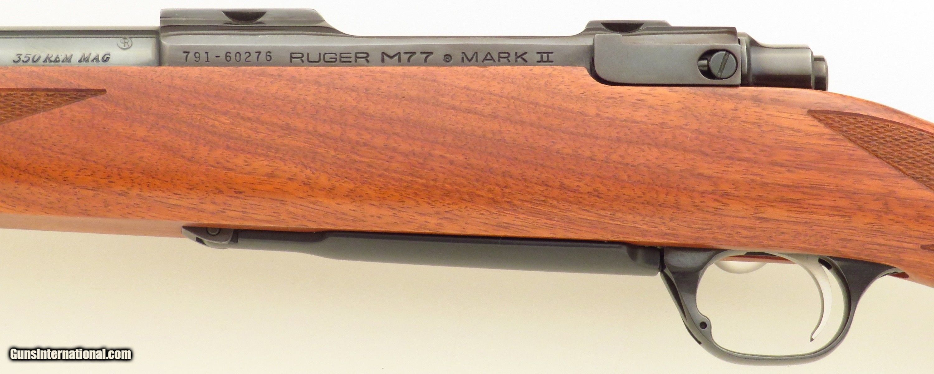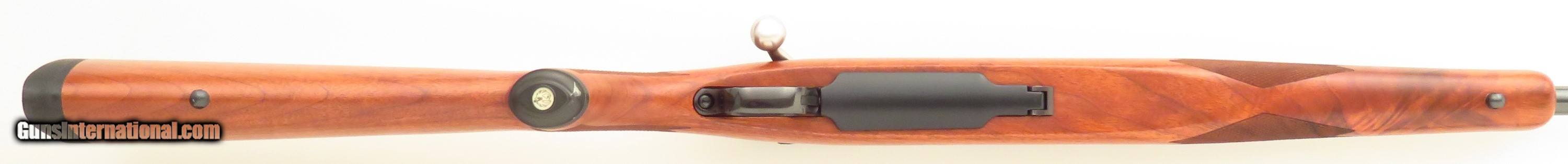 Ruger 77 Mark II .350 Remington Magnum. Made in 2005, serial 791-60276 has a 22-inch barrel. Features include integral mounts, stainless steel bolt/handle and a three-position safety. No box, rings or papers are present. DIMENSIONS: Weight is 6.8 pounds and the length-of-pull is 13.6 inches. CONDITION: Possibly unfired. The bore is pristine. Metal and wood finishes are each approximately 98 percent. The price is firm. $1,500 plus shipping.