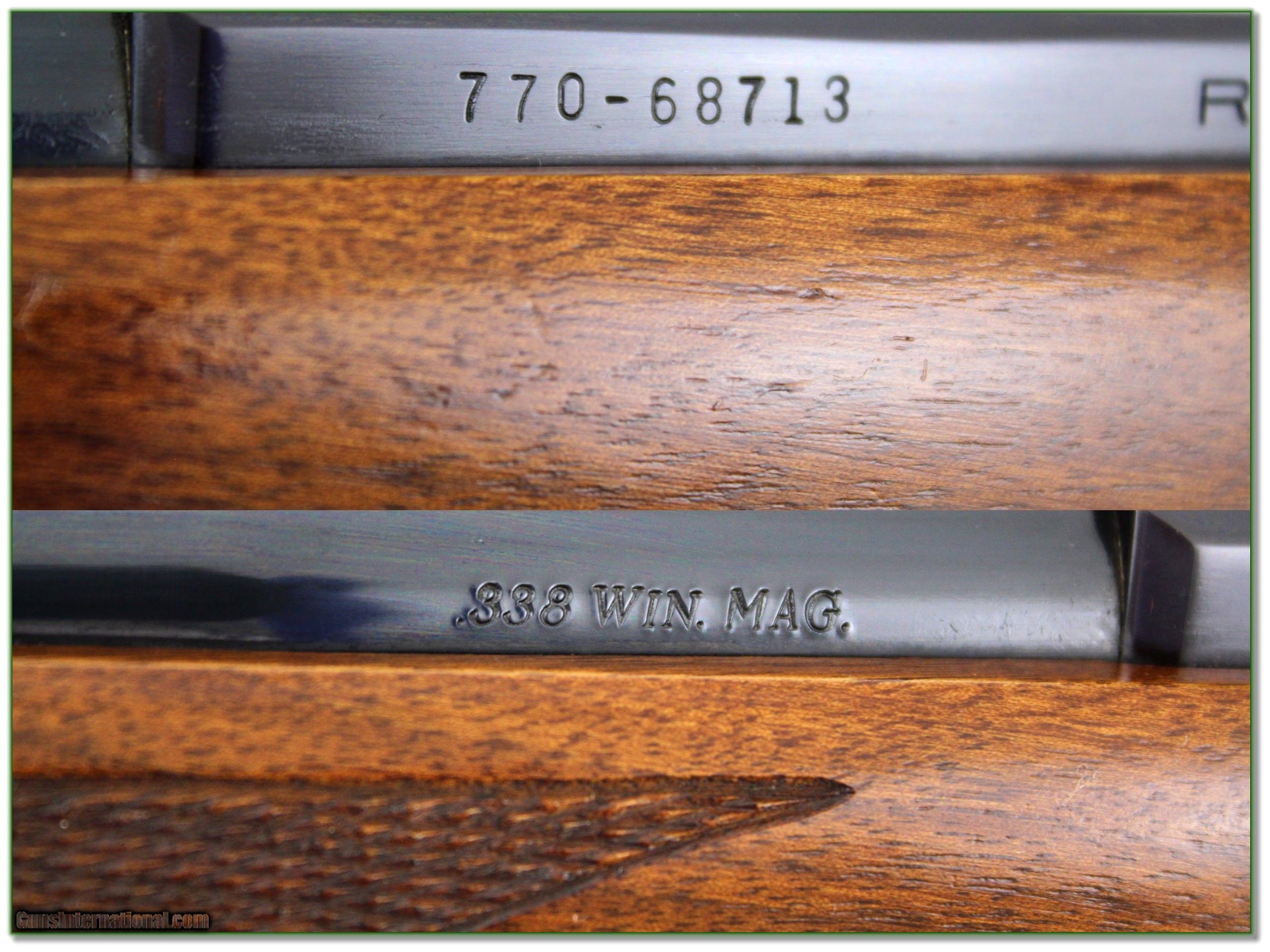 Description: Collector and big game hunters, this is an excellent condition Ruger 77 Tang Safety Red Pad in the hard hitting 338 Winchester Magnum. It has a 24in barrel and comes with rings as seen! I don’t find any marks on the metal or the blue. It is a Shooting Investment! Shipping and insurance is $49. Please email me with any questions or larger pictures. (Consign your quality firearms with Shooting Investments for only 12%! Let me know if you have any you would like to sell!) 23-0902 Payment: Payment is by Money Order, Cashier’s Check or Personal Check. I can now also accept Credit Cards (MasterCard, Visa, Discover & American Express) with a 3% convenience fee. Shipping: The shipping charge will be listed in each description. It is $49 for most firearms. Some heavy guns or those insured for over $2000 will be higher. Shipments to Alaska and Hawaii are higher because air shipment is required. Most firearms are shipped on Tuesday and Thursday and usually in 5 days of receipt of payment. We package all shipments carefully and insure them. Optics are shipped Priority Mail and most other non-firearm shipments are shipped First Class. Returns: Our return policy is simple. If for any reason you are not pleased with your purchase, you may return your item for a full refund of purchase price. Ammunition cannot be returned. It is important to us that you are happy. Guns cannot be fired or dissembled before returning them and they must be returned in the same condition as received. Notification of a return must occur within 3 days of receipt at your dealer. Shipping, convenience and dealer fees are not refundable and are the responsibility of the buyer. Lay-a-way: If needed, we offer a 60 day lay-a-way option on most firearms. It is 1/3 now, 1/3 in 30 days and 1/3 in 60 days. Lay-a-way firearm sales are final and cannot be returned. If a lay-a-way is not completed the first payment cannot be refunded. Consigning your firearms with Shooting Investments: We will help you get top dollar for your firearms. While most local guns shops charge 20% or more, our fee is only 12% with a minimum of $75. At your local gun shop it might take months to sell. Selling on-line provides instant access to thousands of interested buyers. You won’t find any other on-line dealer willing to sell your firearms for only 12% or listing every gun on 3 separate s. Selling through an House typically costs the seller 15% and the buyer an addition 15% (so 30%) and you have to wait several months to sell and longer to receive funds. If properly priced, we will sell your firearms within a few weeks. Send us an email or give us a call and we’ll explain how easy it is for you to get top dollar. Trading: Trading for us is really just buying your gun to re-sell. If you have a gun you want to trade, please email a picture and we will let you know what we can give for it. You will always get more if we sell it for you on consignment. SOLD |
