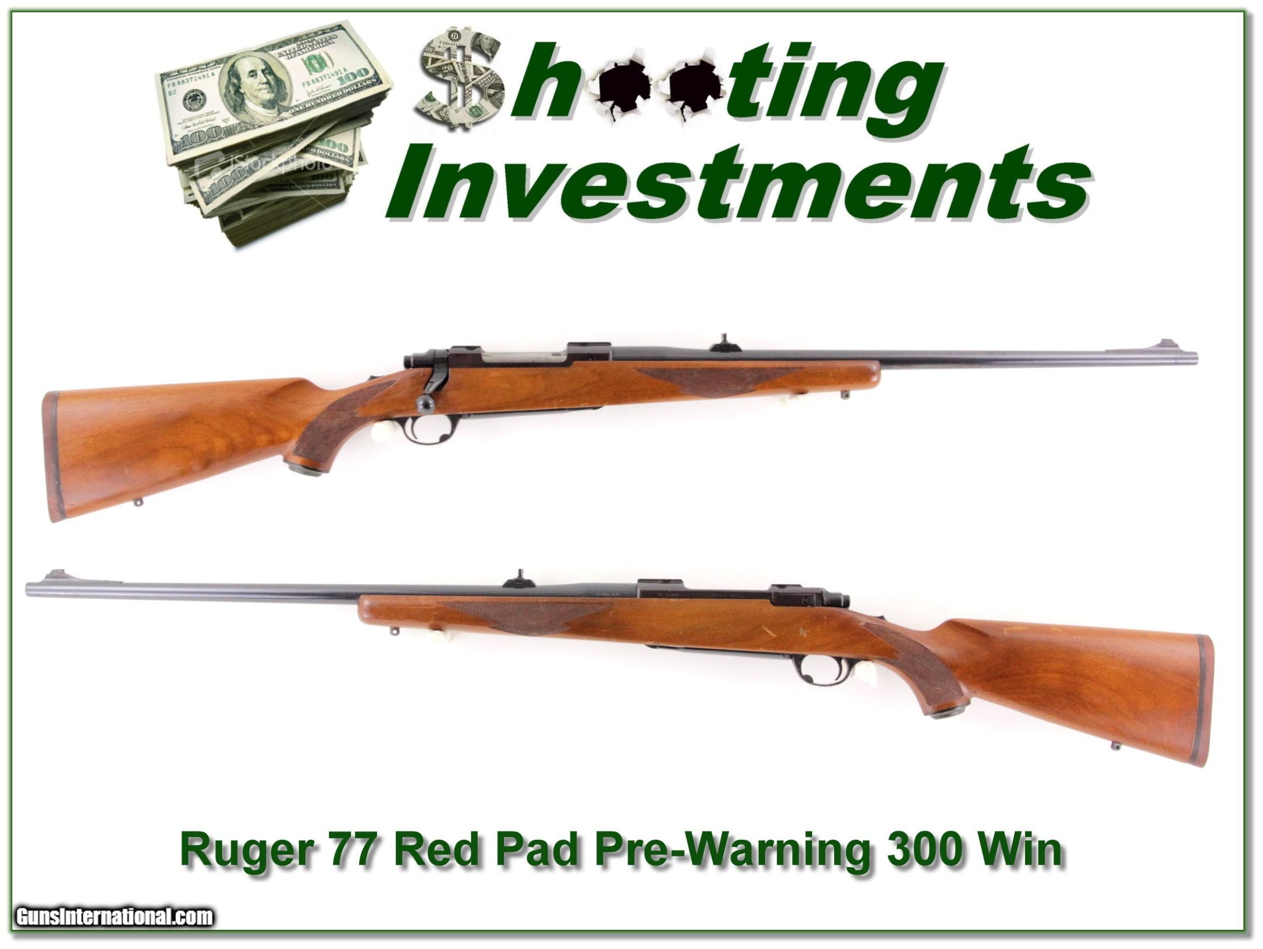 Description: This is an early Ruger 77 with tang safety, red pad and pre-warning. It is a 300 Winchester Magnum. It has open sights. Aside from a few feckless the blue is very nice. The wood has several hunting marks as seen. This will make a classic hunting gun in a hard-hitting caliber. Shipping with insurance is $39. Please email me with any questions or larger pictures. (Consign your quality firearms with Shooting Investments for only 12%! Let me know if you have any you would like to sell!) 19-1455 Payment: Payment is by Money Order, Cashiers Check or Personal Check. I can now also accept MasterCard and Visa with a 3% convenience fee. PayPal can be used for some items but never firearms. Please let us know if you would like to pay via PayPal. Shipping: The shipping charge will be listed in each description. It is $39 for most long guns and $29 for most handguns. Some heavy guns or those insured for over $2000 will be higher. Shipments to Alaska and Hawaii are higher because air shipment is required. Most firearms are shipped on Tuesday and Thursday and usually in 5 days of receipt of payment. We package all shipments carefully and insure them. For long guns you can purchase a new Plano case for $19. They now cost us $22 when buying 100 at a time. Optics are shipped Priority Mail and most other non-firearm shipments are shipped First Class. Returns: Our return policy is simple. If for any reason you are not pleased with your purchase, you may return your item for a full refund of purchase price. Ammunition cannot be returned. It is important to us that you are happy. Guns cannot be fired or dissembled before returning them and they must be returned in the same condition as received. Notification of a return must occur with-in 3 days of receipt at your dealer. Shipping, convenience and dealer fees are not refundable and are the responsibility of the buyer. Lay-a-way: If needed, we offer a 60 day lay-a-way option on most firearms. It is 1/3 now, 1/3 in 30 days and 1/3 in 60 days. Lay-a-way firearm sales are final and if not completed the first payment cannot be returned. Consigning your firearms with Shooting Investments: We will help you get top dollar for your firearms. While most local guns shops charge 20% or more, our fee is only 12% with a minimum of $75. At your local gun shop it might take months to sell. Selling on-line provides instant access to thousands of interested buyers. You won’t find any other on-line dealer willing to sell your firearms for only 12% or listing every gun on 3 separate s. Selling through an House typically costs the seller 15% and the buyer an addition 15% (so 30%) and you have to wait several months to sell and longer to receive funds. If properly priced, we will sell your firearms in a few weeks. Send us an email or give us a call and we’ll explain how easy it is for you to get top dollar. Trading: Trading for use is really just buying your gun to re-sell. If you have a gun you want to trade, please email a picture and we will let you know what we can give or it. You will always get more if we sell it for you on consignment. Help for California Buyers: We are happy to ship to California. It is the buyer’s responsibility to make sure any item you buy is legal in your state. We are also happy to help with your purchase of a firearm from someone other than us. If you see a gun you would like to buy but the seller can’t or won’t ship to California they can ship to use and we’ll then ship it to your California dealer. The cost for this service is only $30 + shipping. Let us know if we can help! SOLD |