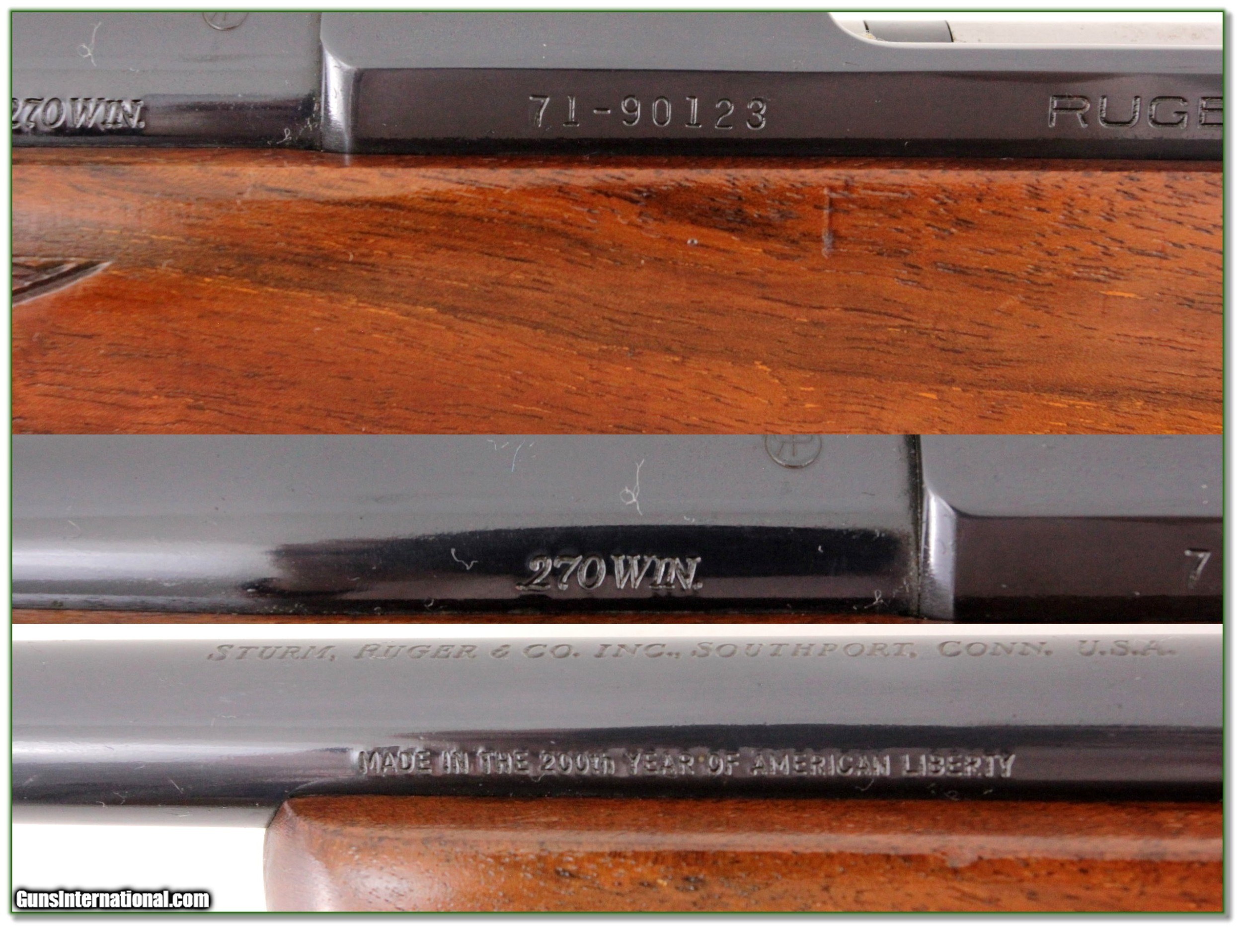 Description: This is a VERY hard to find 1976 Liberty Ruger 77 in 270 Winchester. These Round Top models were made without the Ruger dovetail and use standard bases in factory drilled holes. This one comes with Weaver bases. The Gun is very good. The barrel is 22in with open sites. The wood does have scattered marks from use. It will make a classic hunting gun for sure! Shipping with insurance is $39. Please email me with any questions or larger pictures. (Consign your quality firearms with Shooting Investments for only 12%! Let me know if you have any you would like to sell!) 19-1555 Payment: Payment is by Money Order, Cashiers Check or Personal Check. I can now also accept Credit Cards (MasterCard, Visa, Discover & American Express) with a 3% convenience fee. PayPal can be used for some items but never for firearms. Shipping: The shipping charge will be listed in each description. It is $39 for most firearms. Some heavy guns or those insured for over $2000 will be higher. Shipments to Alaska and Hawaii are higher because air shipment is required. Most firearms are shipped on Tuesday and Thursday and usually in 5 days of receipt of payment. We package all shipments carefully and insure them. Optics are shipped Priority Mail and most other non-firearm shipments are shipped First Class. Returns: Our return policy is simple. If for any reason you are not pleased with your purchase, you may return your item for a full refund of purchase price. Ammunition cannot be returned. It is important to us that you are happy. Guns cannot be fired or dissembled before returning them and they must be returned in the same condition as received. Notification of a return must occur with-in 3 days of receipt at your dealer. Shipping, convenience and dealer fees are not refundable and are the responsibility of the buyer. Lay-a-way: If needed, we offer a 60 day lay-a-way option on most firearms. It is 1/3 now, 1/3 in 30 days and 1/3 in 60 days. Lay-a-way firearm sales are final and if not completed the first payment cannot be returned. Consigning your firearms with Shooting Investments: We will help you get top dollar for your firearms. While most local guns shops charge 20% or more, our fee is only 12% with a minimum of $75. At your local gun shop it might take months to sell. Selling on-line provides instant access to thousands of interested buyers. You won’t find any other on-line dealer willing to sell your firearms for only 12% or listing every gun on 3 separate s. Selling through an House typically costs the seller 15% and the buyer an addition 15% (so 30%) and you have to wait several months to sell and longer to receive funds. If properly priced, we will sell your firearms in a few weeks. Send us an email or give us a call and we’ll explain how easy it is for you to get top dollar. Trading: Trading for use is really just buying your gun to re-sell. If you have a gun you want to trade, please email a picture and we will let you know what we can give or it. You will always get more if we sell it for you on consignment. Help for California Buyers: We are happy to ship to California. It is the buyer’s responsibility to make sure any item you buy is legal in your state. We are also happy to help with your purchase of a firearm from someone other than us. If you see a gun you would like to buy but the seller can’t or won’t ship to California they can ship to use and we’ll then ship it to your California dealer. The cost for this service is only $30 + shipping. Let us know if we can help! SOLD |