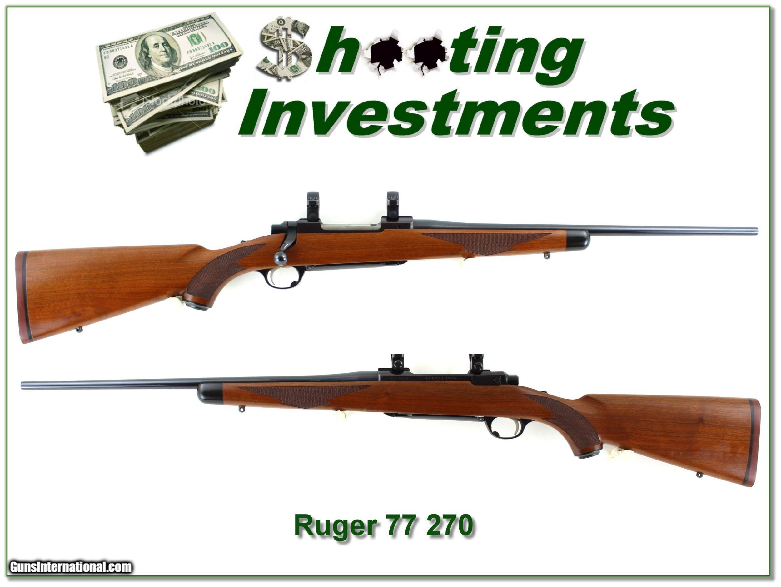 Description: This is an excellent condition and hard to find Ruger Light Weight in 270 Winchester. It is an early tang safety Red Pad Ruger. These were made with 20in barrel and light contour stock with ebony forearm tip. I am sure this one has only fired a few rounds. It come with factory rings and I only find a few light handing marks on the stock. It will make a classic lightweight hunting gun. Shipping and insurance is $39. Please email me with any questions or larger pictures. (Consign your quality firearms with Shooting Investments for only 12%! Let me know if you have any you would like to sell!) 21-0295 Payment: Payment is by Money Order, Cashiers Check or Personal Check. I can now also accept Credit Cards (MasterCard, Visa, Discover & American Express) with a 3% convenience fee. Shipping: The shipping charge will be listed in each description. It is $39 for most firearms. Some heavy guns or those insured for over $2000 will be higher. Shipments to Alaska and Hawaii are higher because air shipment is required. Most firearms are shipped on Tuesday and Thursday and usually in 5 days of receipt of payment. We package all shipments carefully and insure them. Optics are shipped Priority Mail and most other non-firearm shipments are shipped First Class. Returns: Our return policy is simple. If for any reason you are not pleased with your purchase, you may return your item for a full refund of purchase price. Ammunition cannot be returned. It is important to us that you are happy. Guns cannot be fired or dissembled before returning them and they must be returned in the same condition as received. Notification of a return must occur with-in 3 days of receipt at your dealer. Shipping, convenience and dealer fees are not refundable and are the responsibility of the buyer. Lay-a-way: If needed, we offer a 60 day lay-a-way option on most firearms. It is 1/3 now, 1/3 in 30 days and 1/3 in 60 days. Lay-a-way firearm sales are final and if not completed the first payment cannot be returned. Consigning your firearms with Shooting Investments: We will help you get top dollar for your firearms. While most local guns shops charge 20% or more, our fee is only 12% with a minimum of $75. At your local gun shop it might take months to sell. Selling on-line provides instant access to thousands of interested buyers. You won’t find any other on-line dealer willing to sell your firearms for only 12% or listing every gun on 3 separate s. Selling through an House typically costs the seller 15% and the buyer an addition 15% (so 30%) and you have to wait several months to sell and longer to receive funds. If properly priced, we will sell your firearms in a few weeks. Send us an email or give us a call and we’ll explain how easy it is for you to get top dollar. Trading: Trading for use is really just buying your gun to re-sell. If you have a gun you want to trade, please email a picture and we will let you know what we can give or it. You will always get more if we sell it for you on consignment. Help for California Buyers: We are happy to ship to California. It is the buyer’s responsibility to make sure any item you buy is legal in your state. We are also happy to help with your purchase of a firearm from someone other than us. If you see a gun you would like to buy but the seller can’t or won’t ship to California they can ship to use and we’ll then ship it to your California dealer. The cost for this service is only $30 + shipping. Let us know if we can help! SOLD |