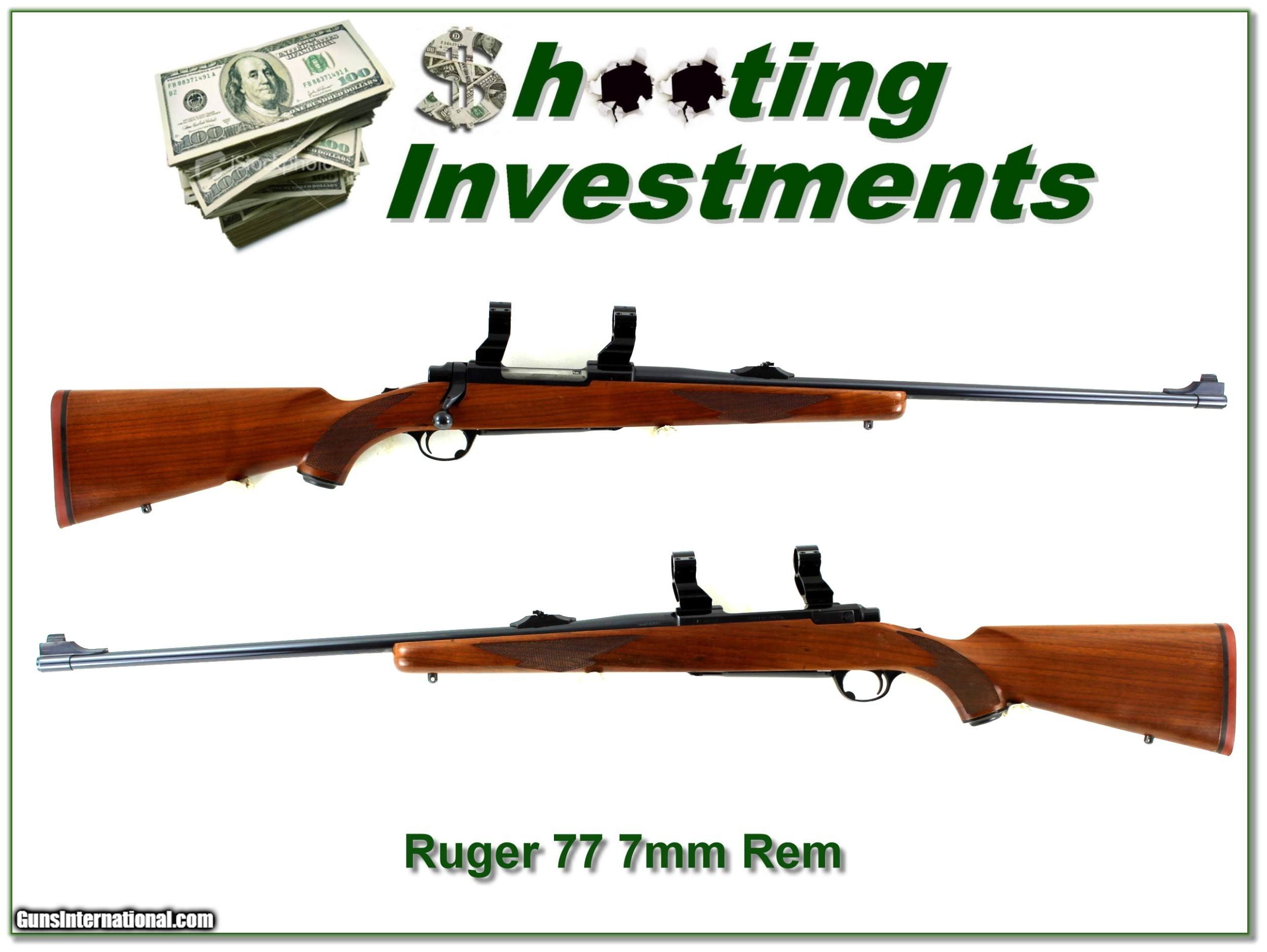 Description: This is a Ruger 77 RLS Red Pad in the flat shooting 7mm Remington Magnum. The metal is excellent. It has a 24in barrel with open sights and includes the see-through rings as seen. The wood has very nice horizontal grain. It has a few marks mostly on the left side under the receiver. It will make a classic hunting gun and they just don’t make them like they used too! Shipping and insurance is $49. Please email me with any questions or larger pictures. (Consign your quality firearms with Shooting Investments for only 12%! Let me know if you have any you would like to sell!) 22-0696 Payment: Payment is by Money Order, Cashiers Check or Personal Check. I can now also accept Credit Cards (MasterCard, Visa, Discover & American Express) with a 3% convenience fee. Shipping: The shipping charge will be listed in each description. It is $49 for most long guns. Some heavy guns, over 48in boxes or those insured for over $2000 will be higher. Shipments to Alaska and Hawaii are higher because air shipment is required. Most firearms are shipped on Tuesday and Thursday and usually in 5 days of receipt of payment. We package all shipments carefully and insure them. Optics are shipped Priority Mail and most other non-firearm shipments are shipped First Class. Returns: Our return policy is simple. If for any reason you are not pleased with your purchase, you may return your item for a full refund of purchase price. Ammunition cannot be returned. It is important to us that you are happy. Guns cannot be fired or dissembled before returning them and they must be returned in the same condition as received. Notification of a return must occur with-in 3 days of receipt at your dealer. Shipping, convenience and dealer fees are not refundable and are the responsibility of the buyer. Lay-a-way: If needed, we offer a 60 day lay-a-way option on most firearms. It is 1/3 now, 1/3 in 30 days and 1/3 in 60 days. Lay-a-way firearm sales are final and if not completed the first payment cannot be returned. Consigning your firearms with Shooting Investments: We will help you get top dollar for your firearms. While most local guns shops charge 20% or more, our fee is only 12% with a minimum of $75. At your local gun shop it might take months to sell. Selling on-line provides instant access to thousands of interested buyers. You won’t find any other on-line dealer willing to sell your firearms for only 12% or listing every gun on 3 separate s. Selling through an House typically costs the seller 15% and the buyer an addition 15% (so 30%) and you have to wait several months to sell and longer to receive funds. If properly priced, we will sell your firearms in a few weeks. Send us an email or give us a call and we’ll explain how easy it is for you to get top dollar. Trading: Trading for use is really just buying your gun to re-sell. If you have a gun you want to trade, please email a picture and we will let you know what we can give or it. You will always get more if we sell it for you on consignment. Help for California Buyers: We are happy to ship to California. It is the buyer’s responsibility to make sure any item you buy is legal in your state. We are also happy to help with your purchase of a firearm from someone other than us. If you see a gun you would like to buy but the seller can’t or won’t ship to California they can ship to use and we’ll then ship it to your California dealer. The cost for this service is only $30 + shipping. Let us know if we can help! SOLD |