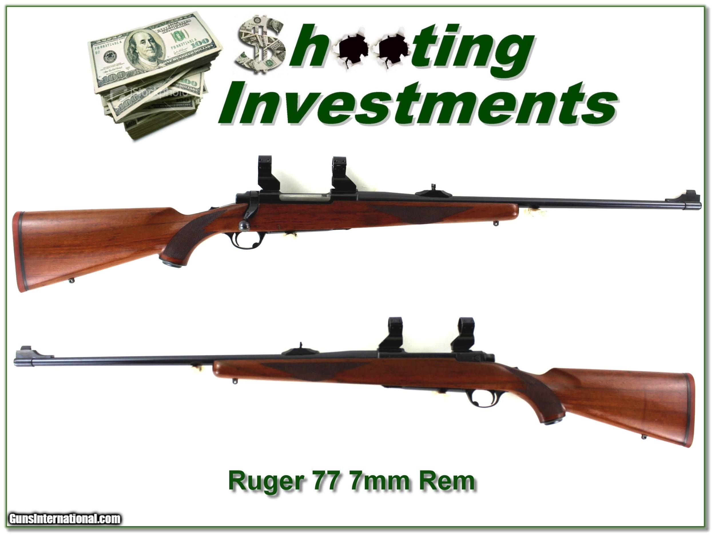 Description: Shooters and hunters, this is a tang safety Red Pad Ruger 77 in the very hard to find RS configuration. It is a round top sporter with 24in barrel and open sights in 7mm Remington Magnum. It comes with see-through rings as seen. It has a few marks from some use and will make a classic long rang big game hunting gun. They just don’t make them like this anymore! It is a real Shooting Investment! Shipping and insurance is $49. Please email me with any questions or larger pictures. (Consign your quality firearms with Shooting Investments for only 12%! Let me know if you have any you would like to sell!) 22-0747 Payment: Payment is by Money Order, Cashiers Check or Personal Check. I can now also accept Credit Cards (MasterCard, Visa, Discover & American Express) with a 3% convenience fee. Shipping: The shipping charge will be listed in each description. It is $49 for most long guns. Some heavy guns, over 48in boxes or those insured for over $2000 will be higher. Shipments to Alaska and Hawaii are higher because air shipment is required. Most firearms are shipped on Tuesday and Thursday and usually in 5 days of receipt of payment. We package all shipments carefully and insure them. Optics are shipped Priority Mail and most other non-firearm shipments are shipped First Class. Returns: Our return policy is simple. If for any reason you are not pleased with your purchase, you may return your item for a full refund of purchase price. Ammunition cannot be returned. It is important to us that you are happy. Guns cannot be fired or dissembled before returning them and they must be returned in the same condition as received. Notification of a return must occur with-in 3 days of receipt at your dealer. Shipping, convenience and dealer fees are not refundable and are the responsibility of the buyer. Lay-a-way: If needed, we offer a 60 day lay-a-way option on most firearms. It is 1/3 now, 1/3 in 30 days and 1/3 in 60 days. Lay-a-way firearm sales are final and if not completed the first payment cannot be returned. Consigning your firearms with Shooting Investments: We will help you get top dollar for your firearms. While most local guns shops charge 20% or more, our fee is only 12% with a minimum of $75. At your local gun shop it might take months to sell. Selling on-line provides instant access to thousands of interested buyers. You won’t find any other on-line dealer willing to sell your firearms for only 12% or listing every gun on 3 separate s. Selling through an House typically costs the seller 15% and the buyer an addition 15% (so 30%) and you have to wait several months to sell and longer to receive funds. If properly priced, we will sell your firearms in a few weeks. Send us an email or give us a call and we’ll explain how easy it is for you to get top dollar. Trading: Trading for use is really just buying your gun to re-sell. If you have a gun you want to trade, please email a picture and we will let you know what we can give or it. You will always get more if we sell it for you on consignment. Help for California Buyers: We are happy to ship to California. It is the buyer’s responsibility to make sure any item you buy is legal in your state. We are also happy to help with your purchase of a firearm from someone other than us. If you see a gun you would like to buy but the seller can’t or won’t ship to California they can ship to use and we’ll then ship it to your California dealer. The cost for this service is only $30 + shipping. Let us know if we can help! SOLD |