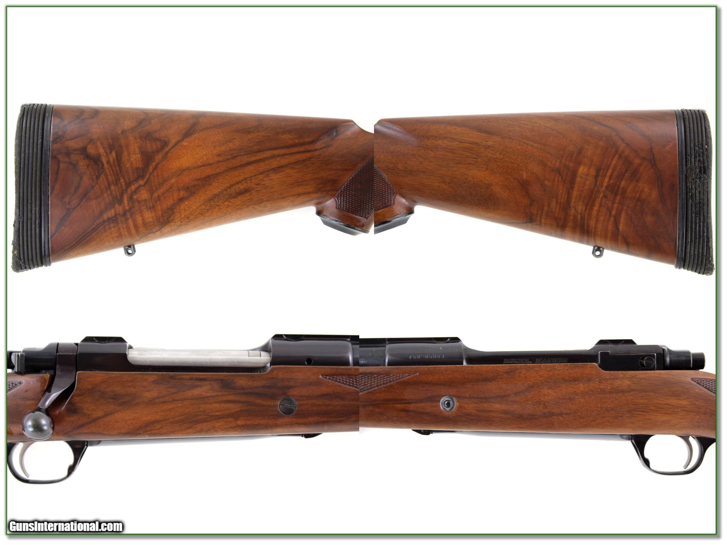 Description: This is the Ruger 77 RSM (Ruger Safari Magnum) It is a hard hitting 458 Lott Magnum and it comes in original box numbered to gun with papers and factory rings. It has beautiful walnut and a Limbsaver recoil pad. It has some use with a few minor marks. But like most big-bore it hasn’t fired many rounds. It will make fine rifle for your next safari. Shipping and insurance is $39. Please email me with any questions or larger pictures. (Consign your quality firearms with Shooting Investments for only 12%! Let me know if you have any you would like to sell!) 20-0853 Payment: Payment is by Money Order, Cashiers Check or Personal Check. I can now also accept Credit Cards (MasterCard, Visa, Discover & American Express) with a 3% convenience fee. Shipping: The shipping charge will be listed in each description. It is $39 for most firearms. Some heavy guns or those insured for over $2000 will be higher. Shipments to Alaska and Hawaii are higher because air shipment is required. Most firearms are shipped on Tuesday and Thursday and usually in 5 days of receipt of payment. We package all shipments carefully and insure them. Optics are shipped Priority Mail and most other non-firearm shipments are shipped First Class. Returns: Our return policy is simple. If for any reason you are not pleased with your purchase, you may return your item for a full refund of purchase price. Ammunition cannot be returned. It is important to us that you are happy. Guns cannot be fired or dissembled before returning them and they must be returned in the same condition as received. Notification of a return must occur with-in 3 days of receipt at your dealer. Shipping, convenience and dealer fees are not refundable and are the responsibility of the buyer. Lay-a-way: If needed, we offer a 60 day lay-a-way option on most firearms. It is 1/3 now, 1/3 in 30 days and 1/3 in 60 days. Lay-a-way firearm sales are final and if not completed the first payment cannot be returned. Consigning your firearms with Shooting Investments: We will help you get top dollar for your firearms. While most local guns shops charge 20% or more, our fee is only 12% with a minimum of $75. At your local gun shop it might take months to sell. Selling on-line provides instant access to thousands of interested buyers. You won’t find any other on-line dealer willing to sell your firearms for only 12% or listing every gun on 3 separate s. Selling through an House typically costs the seller 15% and the buyer an addition 15% (so 30%) and you have to wait several months to sell and longer to receive funds. If properly priced, we will sell your firearms in a few weeks. Send us an email or give us a call and we’ll explain how easy it is for you to get top dollar. Trading: Trading for use is really just buying your gun to re-sell. If you have a gun you want to trade, please email a picture and we will let you know what we can give or it. You will always get more if we sell it for you on consignment. Help for California Buyers: We are happy to ship to California. It is the buyer’s responsibility to make sure any item you buy is legal in your state. We are also happy to help with your purchase of a firearm from someone other than us. If you see a gun you would like to buy but the seller can’t or won’t ship to California they can ship to use and we’ll then ship it to your California dealer. The cost for this service is only $30 + shipping. Let us know if we can help! SOLD |