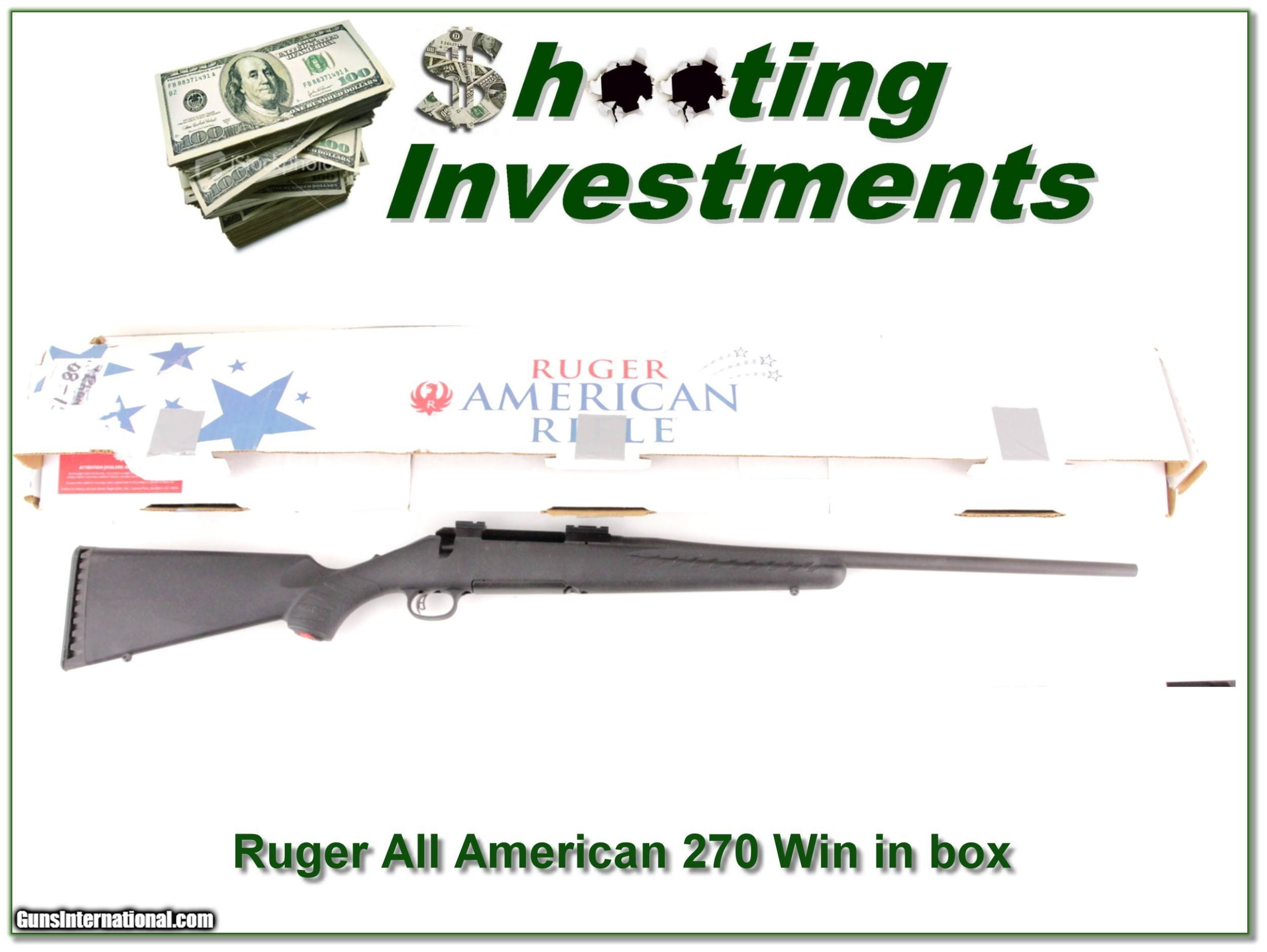 Description: This is a Ruger American in 270 Winchester. It is near new in original box. I see no marks and I’m sure only a few rounds fired. It has a 22in barrel. I am selling this one on consignment and as such lay-a-way can’t be used. It does of course have the standard 3-day inspection. Shipping with insurance is $39. Please email me with any questions or larger pictures. (Consign your quality firearms with Shooting Investments for only 12%! Let me know if you have any you would like to sell!) 19-0753 Payment: Payment is by Money Order, Cashiers Check or Personal Check. I can now also accept MasterCard and Visa with a 3% convenience fee. PayPal can be used for some items but never firearms. Please let us know if you would like to pay via PayPal. Shipping: The shipping charge will be listed in each description. It is $39 for most guns. Some heavy guns or those insured for over $2000 will be higher. Shipments to Alaska and Hawaii are higher because air shipment is required. Most firearms are shipped on Tuesday and Thursday and usually in 5 days of receipt of payment. We package all shipments carefully and insure them. Returns: Our return policy is simple. If for any reason you are not pleased with your purchase, you may return your item for a full refund of purchase price. Ammunition cannot be returned. It is important to us that you are happy. Guns cannot be fired or dissembled before returning them and they must be returned in the same condition as received. Notification of a return must occur with-in 3 days of receipt at your dealer. Shipping, convenience and dealer fees are not refundable and are the responsibility of the buyer. Lay-a-way: If needed, we offer a 60 day lay-a-way option on most firearms. It is 1/3 now, 1/3 in 30 days and 1/3 in 60 days. Lay-a-way firearm sales are final and if not completed the first payment cannot be returned. Consigning your firearms with Shooting Investments: We will help you get top dollar for your firearms. While most local guns shops charge 20% or more, our fee is only 12% with a minimum of $75. At your local gun shop it might take months to sell. Selling on-line provides instant access to thousands of interested buyers. You won’t find any other on-line dealer willing to sell your firearms for only 12% or listing every gun on 3 separate s. Selling through an House typically costs the seller 15% and the buyer an addition 15% (so 30%) and you have to wait several months to sell and longer to receive funds. If properly priced, we will sell your firearms in a few weeks. Send us an email or give us a call and we’ll explain how easy it is for you to get top dollar. Trading: Trading for use is really just buying your gun to re-sell. If you have a gun you want to trade, please email a picture and we will let you know what we can give or it. You will always get more if we sell it for you on consignment. Help for California Buyers: We are happy to ship to California. It is the buyer’s responsibility to make sure any item you buy is legal in your state. We are also happy to help with your purchase of a firearm from someone other than us. If you see a gun you would like to buy but the seller can’t or won’t ship to California they can ship to use and we’ll then ship it to your California dealer. The cost for this service is only $30 + shipping. Let us know if we can help! SOLD |