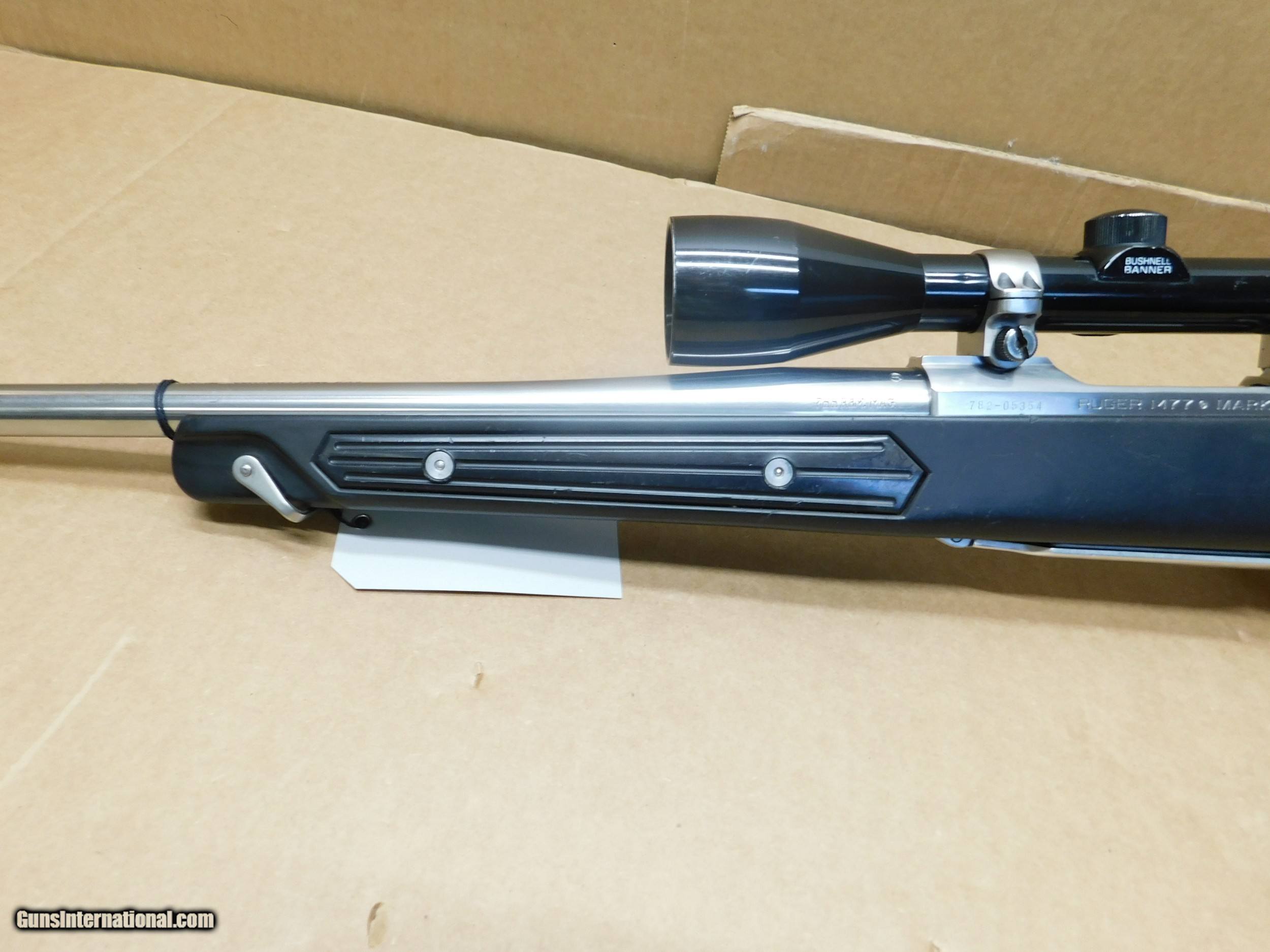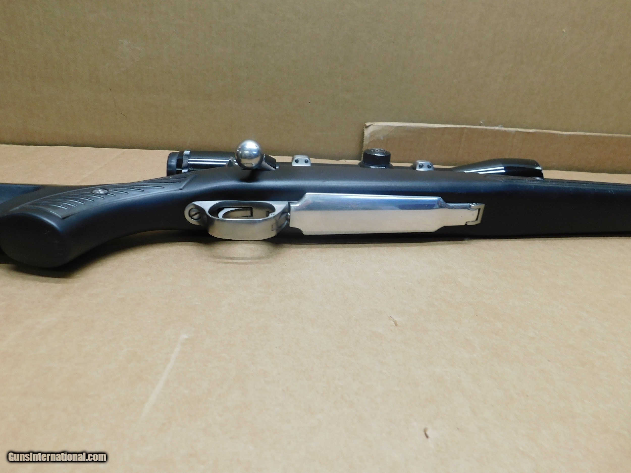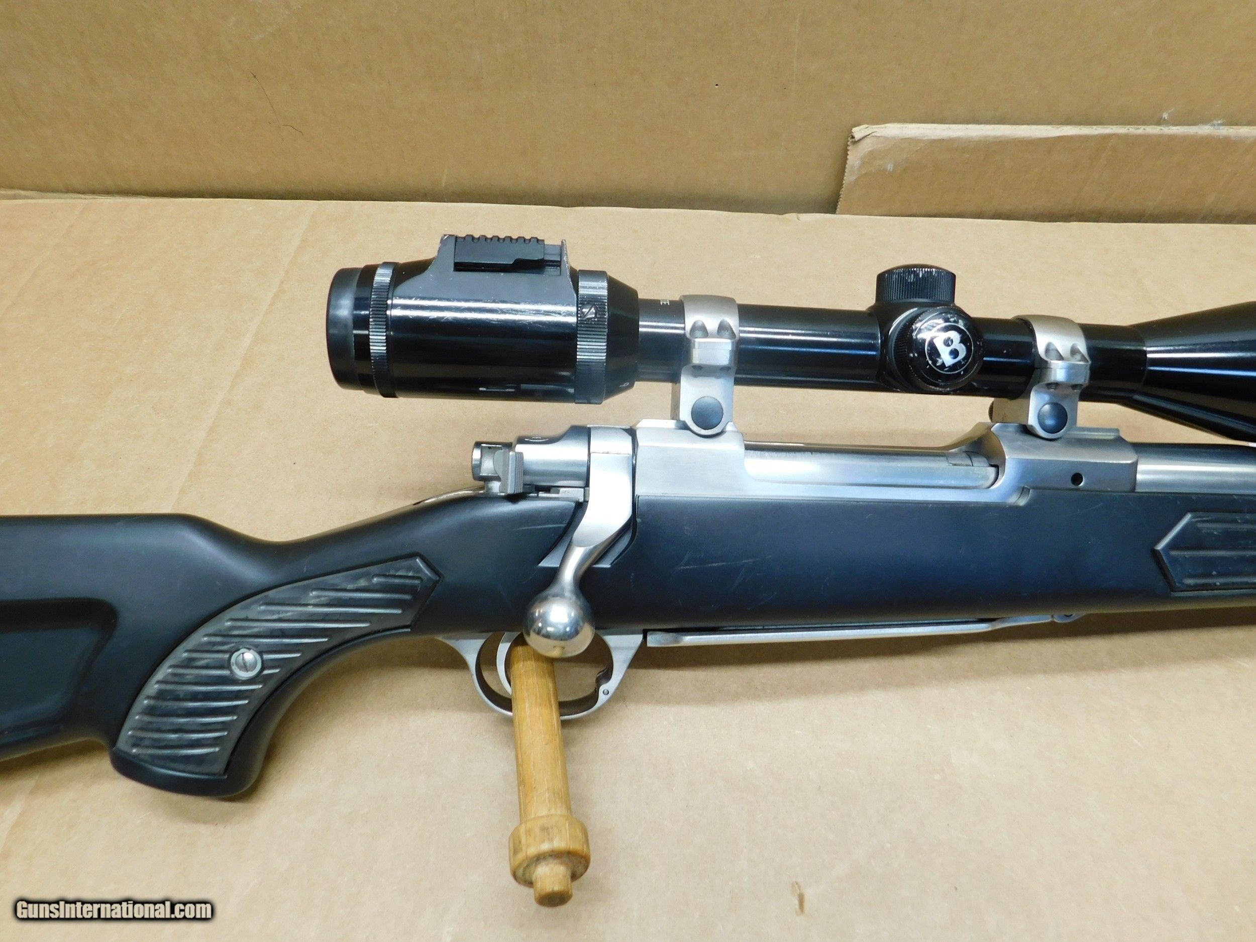 Description: This is a used Ruger M77 MKII bolt action 7MM Rem Mag rifle It is a 3+1 shot with a 24" stainless barrel Has a Busenell Banner 3-9x 40 Ill dot scope It has a Zyltel boat paddle stock SN-782-05354 SOLD Rifle Caliber: 7mm Remington Magnum Manufacturer: Ruger Model: M77 MKII Serial Number: 782-05354 Barrel Length: 24 Condition: Used Metal Condition: Very Good Bore Condition: Very good Barrel Type: Round Stock: Zytel/Paddle Boat/Skeleton Butt Pad: Rubber Finish: Stainless Steel |