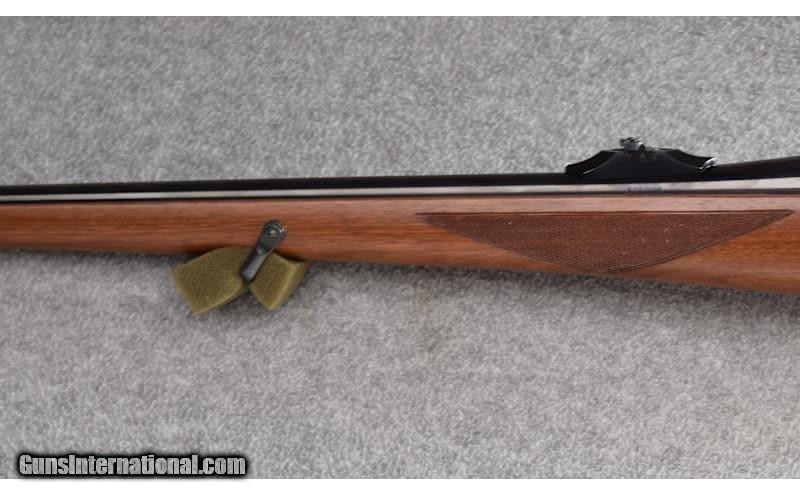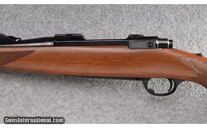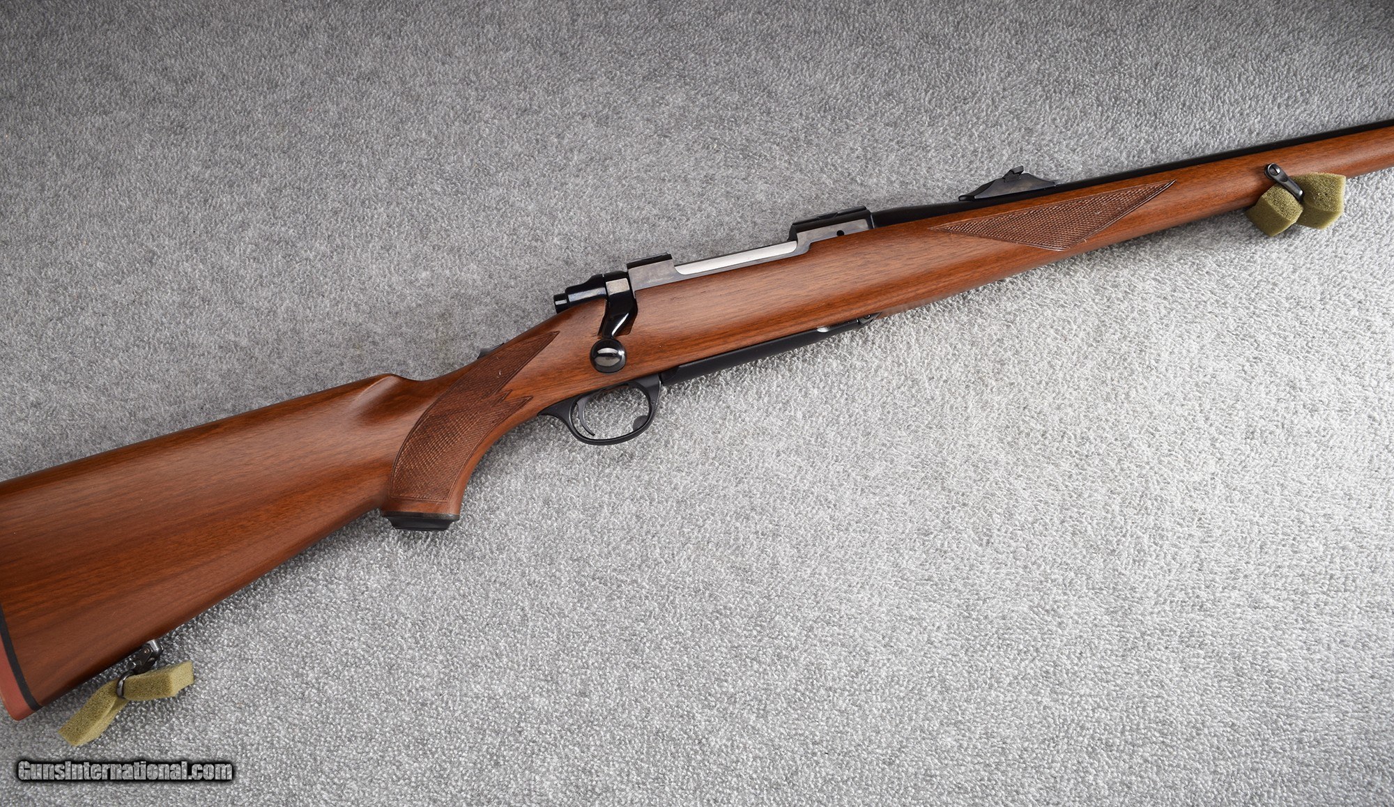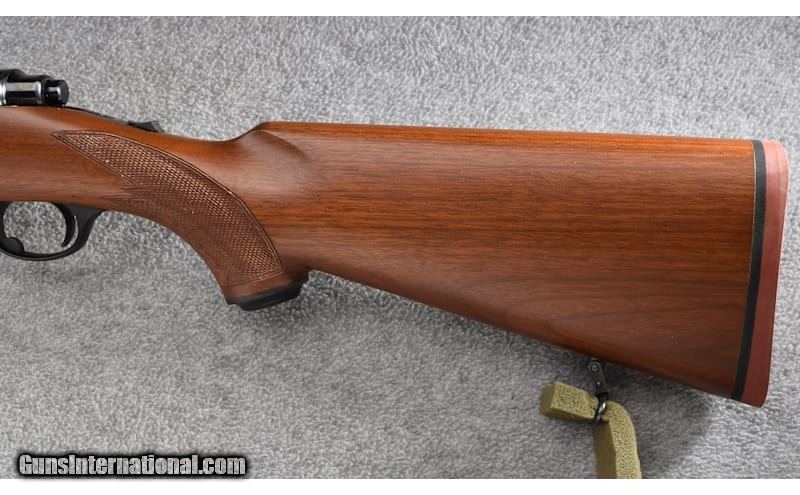 Description: This Ruger M77 in .243 Winchester is in very good to excellent condition. It has an 18.5" barrel with iron sights. The wood stock is a Mannlicher style. Blue and bore are excellent. The wood stock does show a few very light handling marks. Top tang safety. Serial number lookup reveals this rifle was manufactured in 1983. The original Ruger cardboard box is also included. .243 Winchester Metal Condition: Excellent Wood Condition: Very Good Bore Condition: Excellent Barrels: 18.5 Triggers: Factory Stock Dimensions: 13.5" LOP Fore End: Checkered Walnut Semi Pistol Grip Stock - Mannlicher Forend Butt Pad: Red Pad Weight: 6lbs 4oz Sights: Post & Bead Front - U Notch Rear Item Location: Wheeling Price: $1,649.99 Contact Seller |