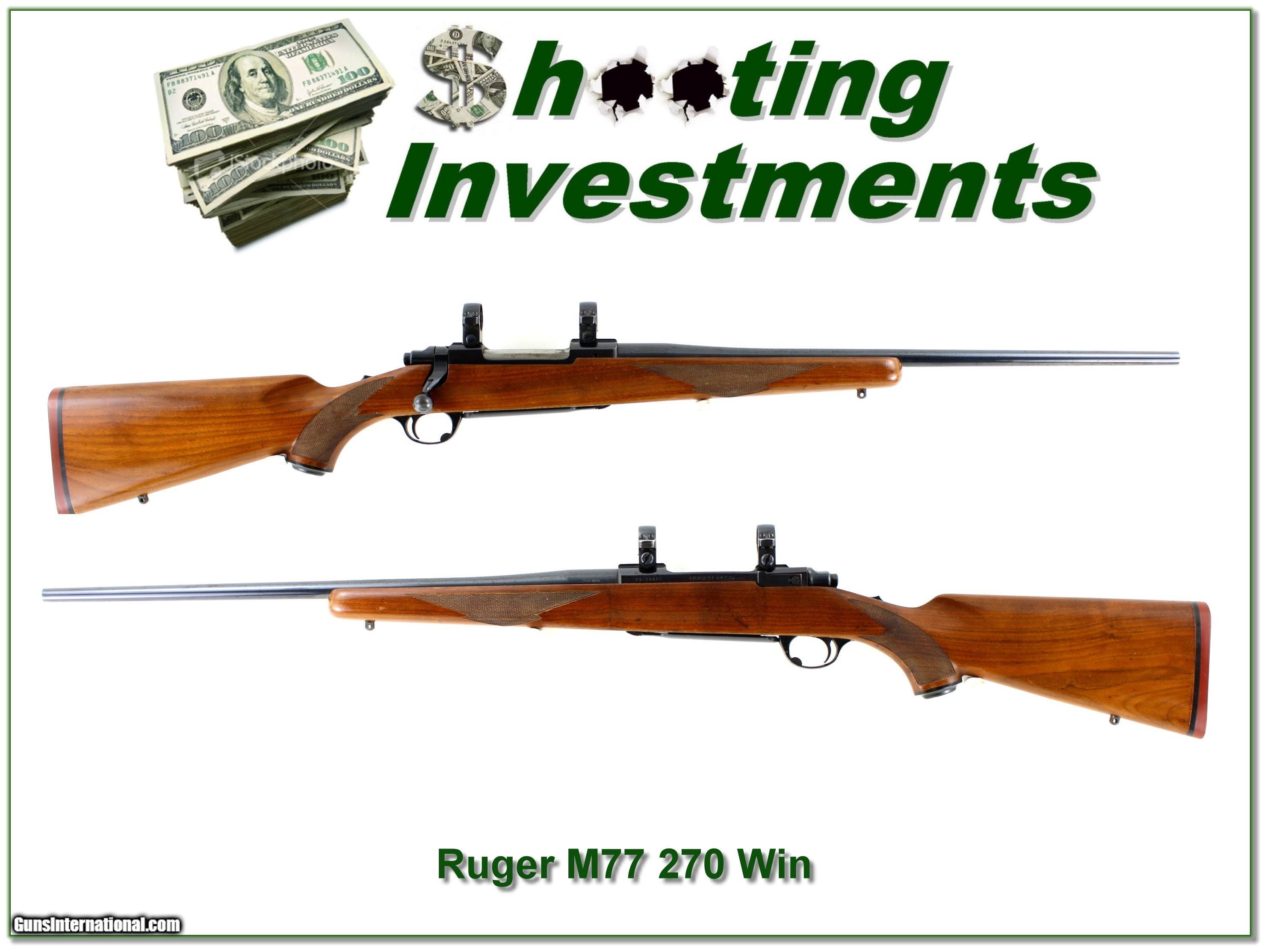 Description: This is an older Ruger M77 Red Pad in 270 Winchester. It is in very good condition with some marks as seen. It has a 22in barrel and the bore is bright and shiny! It comes with factory rings as seen. It will make a classic hunting gun. Shipping and insurance is $49. Please email me with any questions or larger pictures. (Consign your quality firearms with Shooting Investments for only 12%! Let me know if you have any you would like to sell!) 25-1076 Payment: Payment is by Money Order, Cashier’s Check or Personal Check. I can now also accept Credit Cards (MasterCard, Visa, Discover & American Express) with a 3% convenience fee. Shipping: The shipping charge will be listed in each description. It is $49 for most firearms. Some heavy guns or those insured for over $2000 will be higher. Shipments to Alaska and Hawaii are higher because air shipment is required. Most firearms are shipped on Tuesday and Thursday and usually in 5 days of receipt of payment. We package all shipments carefully and insure them. Optics are shipped Priority Mail and most other non-firearm shipments are shipped First Class. Returns: Our return policy is simple. If for any reason you are not pleased with your purchase, you may return your item for a full refund of purchase price. Ammunition cannot be returned. It is important to us that you are happy. Guns cannot be fired or dissembled before returning them and they must be returned in the same condition as received. Notification of a return must occur within 3 days of receipt at your dealer. Shipping, convenience and dealer fees are not refundable and are the responsibility of the buyer. Lay-a-way: If needed, we offer a 60 day lay-a-way option on most firearms. It is 1/3 now, 1/3 in 30 days and 1/3 in 60 days. Lay-a-way firearm sales are final and cannot be returned. If a lay-a-way is not completed the first payment cannot be refunded. Consigning your firearms with Shooting Investments: We will help you get top dollar for your firearms. While most local guns shops charge 20% or more, our fee is only 12% with a minimum of $100. At your local gun shop it might take months to sell. Selling on-line provides instant access to thousands of interested buyers. You won’t find any other on-line dealer willing to sell your firearms for only 12% or listing every gun on 3 separate s. Selling through an House typically costs the seller 15% and the buyer an addition 15% (so 30%) and you have to wait several months to sell and longer to receive funds. If properly priced, we will sell your firearms within a few weeks. Send us an email or give us a call and we’ll explain how easy it is for you to get top dollar. Trading: Trading for us is really just buying your gun to re-sell. If you have a gun you want to trade, please email a picture and we will let you know what we can give for it. You will always get more if we sell it for you on consignment. SOLD |