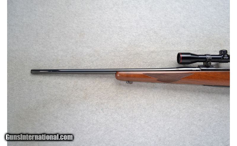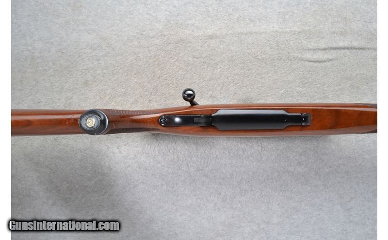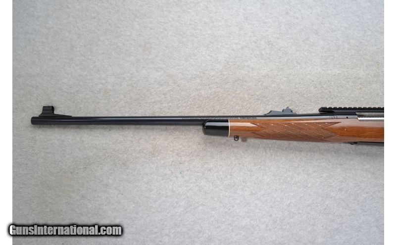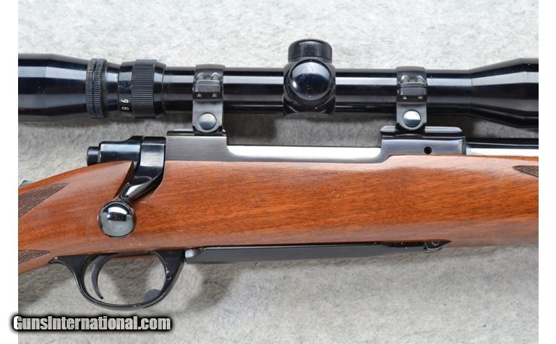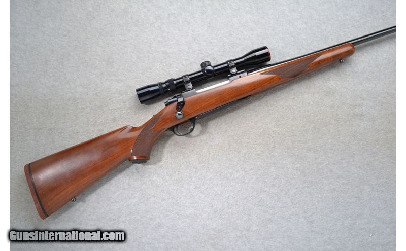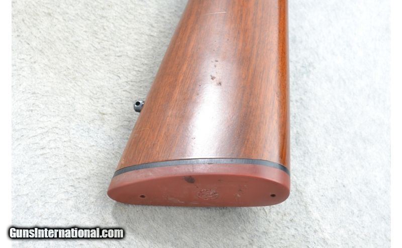 Description: This Ruger Model M77 is a right hand bolt action rifle in .30-06 Sprg. Cal. It has a 22 inch barrel. It is outfitted with a Simmons 3-9x32 Scope. No iron sights. The butt stock is a checkered grip walnut pistol grip with a black cap. The forearm is a checkered grip walnut. .30-06 Springfield SOLD Chambers: Bolt Action 4 round internal magazine with a hinged floorplate. Metal Condition: Excellent. Wood Condition: Good with handling marks. Bore Condition: Excellent. Barrels: 22 inch. Triggers: Adjustable. Stock Dimensions: LOP 13 5/8 inches. Fore End: Checkered grip walnut. Butt Pad: Ruger red rubber pad. Weight: 8 lb. 3 oz. Sights: Simmons 3-9x32 Scope. No iron sights. Item Location: Richfield, WI |