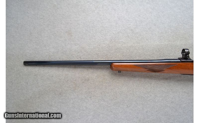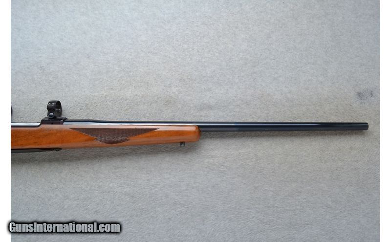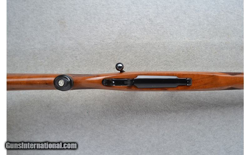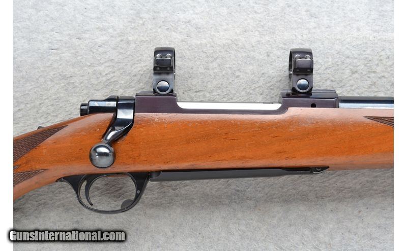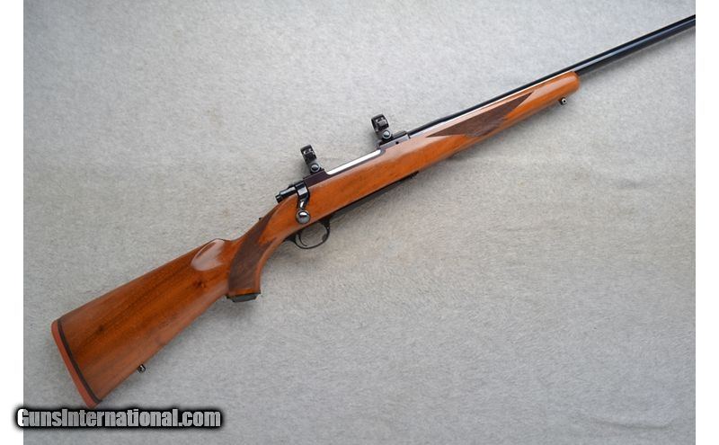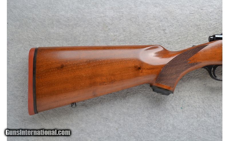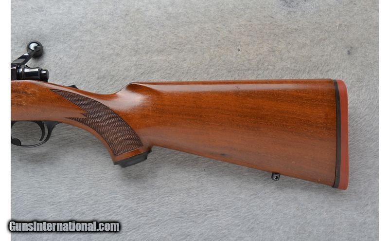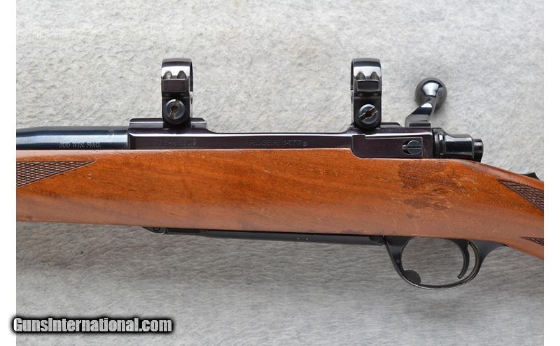 Description: This Ruger Model M77 is a right hand semi-auto rifle in .300 Win. Mag. Cal. It has a 24 inch barrel. There are scope rings attached. No iron sights. The butt stock is a checkered grip walnut with a black cap. The forearm is a checkered grip walnut. It has an adjustable trigger. .300 Winchester Magnum SOLD Chambers: Internal magazine with a hinged floorplate. Metal Condition: Very good. Some minor use marks. Wood Condition: Very good. Light handling marks. Bore Condition: Excellent. Barrels: 24 inch. Triggers: Adjustable. Stock Dimensions: LOP 13 5/8 inches. Fore End: Checkered grip walnut. Butt Pad: Ruger red pad. Weight: 8 lb. 4 oz. Sights: Scope rings attached. No iron sights. Item Location: Richfield, WI |
