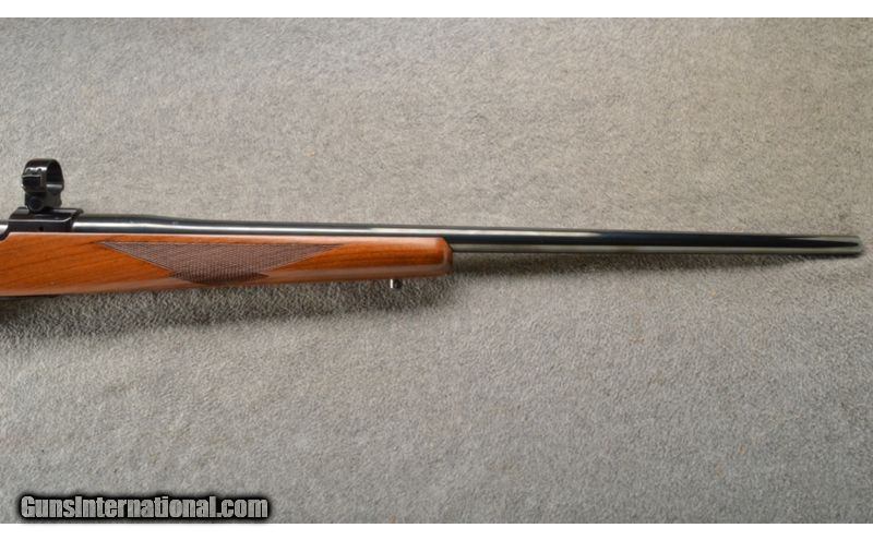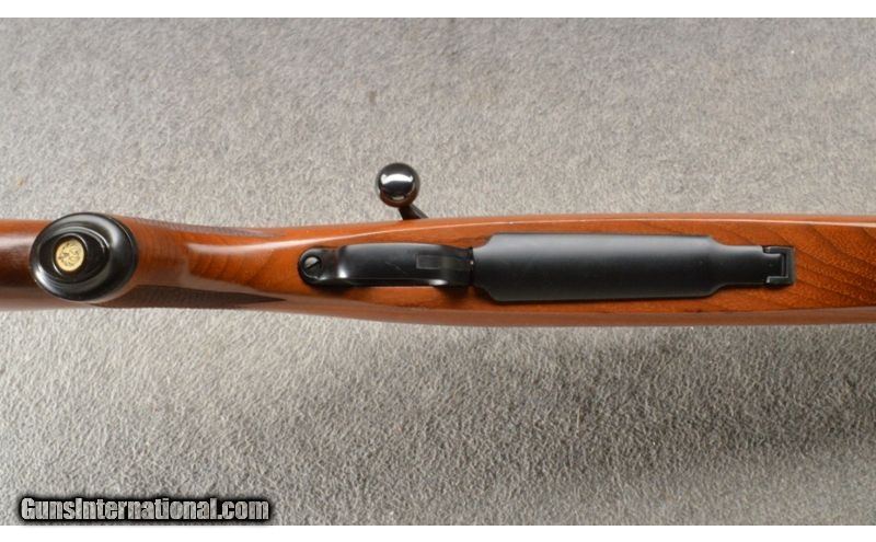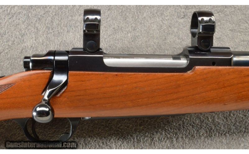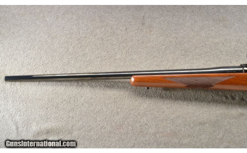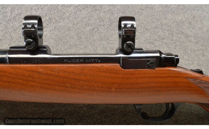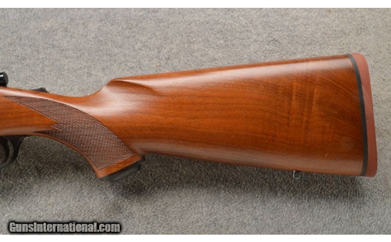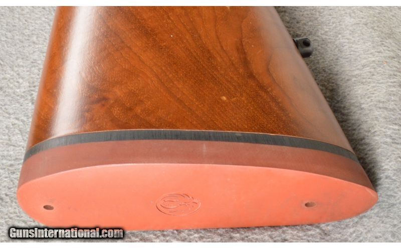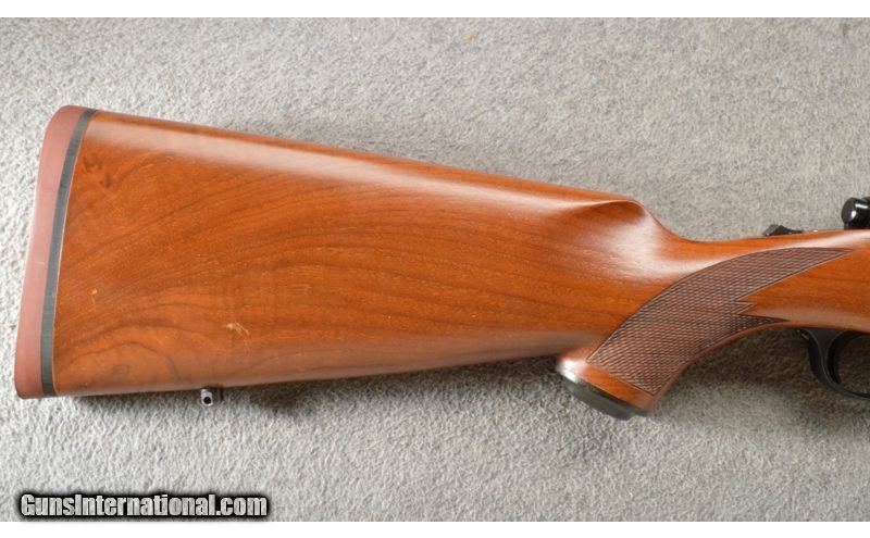 Description: This is a very nice Ruger M77 in .338 Win Mag. The rifle has a tang safety, red butt pad and a Mauser style action. The bolt face is still blue and the rifle looks to have been fired very little. The walnut stock is very nice but not special as Ruger goes. This is a great looking rifle that was made in 1979. .338 Winchester Magnum SOLD Chambers: Bolt action repeater 3+1. Metal Condition: Excellent like new. Wood Condition: Excellent with a couple of very small dings. Bore Condition: Bright and shiny. Barrels: 24 inch gloss blue. Triggers: Single blue. Stock Dimensions: 13 1/2 inch LOP. Fore End: Very nice walnut. Butt Pad: Red rubber Ruger butt pad. Weight: 8 lbs. Sights: Comes with Ruger scope rings. Item Location: Owatonna, MN |