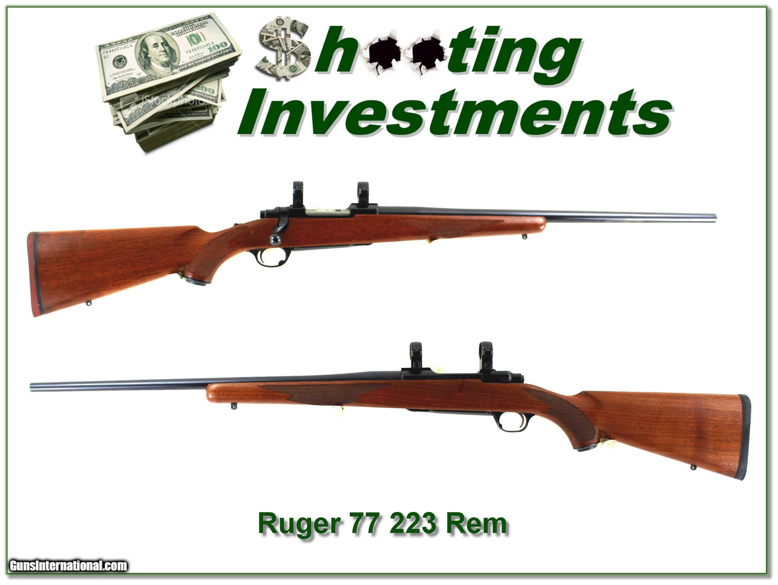 Description: This is an excellent condition Ruger M77 in 223 Remington. The metal is about new with no marks I see. The wood has only a couple insignificant handing marks. It has a 22in barrel and come with factory rings as seen! Shipping and insurance is $49. Please email me with any questions or larger pictures. (Consign your quality firearms with Shooting Investments for only 12%! Let me know if you have any you would like to sell!) 23-1154 Payment: Payment is by Money Order, Cashier’s Check or Personal Check. I can now also accept Credit Cards (MasterCard, Visa, Discover & American Express) with a 3% convenience fee. Shipping: The shipping charge will be listed in each description. It is $49 for most firearms. Some heavy guns or those insured for over $2000 will be higher. Shipments to Alaska and Hawaii are higher because air shipment is required. Most firearms are shipped on Tuesday and Thursday and usually in 5 days of receipt of payment. We package all shipments carefully and insure them. Optics are shipped Priority Mail and most other non-firearm shipments are shipped First Class. Returns: Our return policy is simple. If for any reason you are not pleased with your purchase, you may return your item for a full refund of purchase price. Ammunition cannot be returned. It is important to us that you are happy. Guns cannot be fired or dissembled before returning them and they must be returned in the same condition as received. Notification of a return must occur within 3 days of receipt at your dealer. Shipping, convenience and dealer fees are not refundable and are the responsibility of the buyer. Lay-a-way: If needed, we offer a 60 day lay-a-way option on most firearms. It is 1/3 now, 1/3 in 30 days and 1/3 in 60 days. Lay-a-way firearm sales are final and cannot be returned. If a lay-a-way is not completed the first payment cannot be refunded. Consigning your firearms with Shooting Investments: We will help you get top dollar for your firearms. While most local guns shops charge 20% or more, our fee is only 12% with a minimum of $75. At your local gun shop it might take months to sell. Selling on-line provides instant access to thousands of interested buyers. You won’t find any other on-line dealer willing to sell your firearms for only 12% or listing every gun on 3 separate s. Selling through an House typically costs the seller 15% and the buyer an addition 15% (so 30%) and you have to wait several months to sell and longer to receive funds. If properly priced, we will sell your firearms within a few weeks. Send us an email or give us a call and we’ll explain how easy it is for you to get top dollar. Trading: Trading for us is really just buying your gun to re-sell. If you have a gun you want to trade, please email a picture and we will let you know what we can give for it. You will always get more if we sell it for you on consignment. SOLD |
