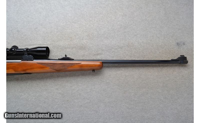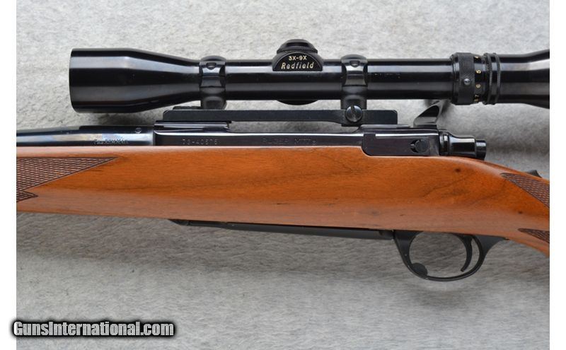 Description: This Ruger Model 77 is a right hand bolt action rifle in 7mm Rem. Mag. Cal. It has a 24 inch barrel. A raised blade front sight and a folding adjustable notch middle sight. It is outfitted with a Redfield 3x-9x Scope. The butt stock is a checkered grip walnut pistol grip with a black cap. The forearm is a checkered grip walnut. It has an adjustable trigger. DOM 1978. 7mm Remington Magnum SOLD Chambers: Right hand bolt action 4 round internal magazine with a hinged floorplate. Metal Condition: Very good. A few very minor handling marks and a couple small spots of very minor freckling. Wood Condition: Very good with some minor handling marks. Bore Condition: Excellent. Barrels: 24 inch barrel. Triggers: Adjustable. Stock Dimensions: LOP 13 5/8 inches. Fore End: Checkered grip walnut. Butt Pad: Ruger red rubber pad. Weight: 8 lb. 14 oz. Sights: Raised front blade. Folding adjustable notch middle. Redfield 3x-9x Scope. Item Location: Richfield, WI |