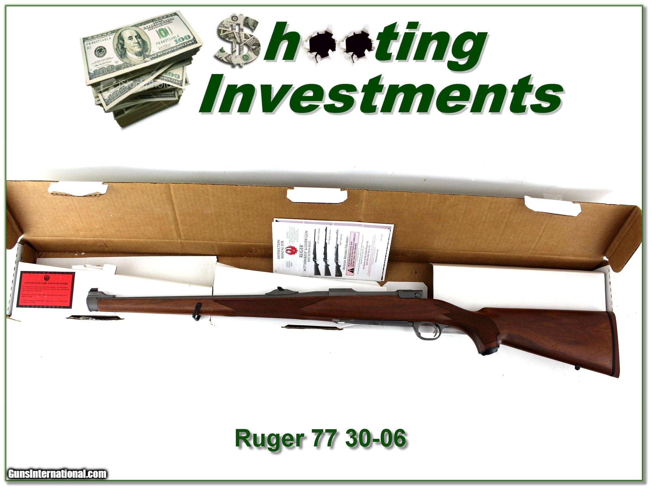 Description: Collectors, this is a new condition Limpsy Special Ruger 77 Hawkeye International in 30-06. It is stainless with beautiful walnut and a red pad. It has an 18.5in barrel and comes as seen in box with manual and factory rings. I am selling this one on consignment and as such lay-a-way can’t be used. It does of course have the standard 3-day inspection. Shipping and insurance is $59. Please email me with any questions or larger pictures. (Consign your quality firearms with Shooting Investments for only 12%! Let me know if you have any you would like to sell!) 23-0144 Payment: Payment is by Money Order, Cashier’s Check or Personal Check. I can now also accept Credit Cards (MasterCard, Visa, Discover & American Express) with a 3% convenience fee. Shipping: The shipping charge will be listed in each description. It is $49 for most firearms. Some heavy guns or those insured for over $2000 will be higher. Shipments to Alaska and Hawaii are higher because air shipment is required. Most firearms are shipped on Tuesday and Thursday and usually in 5 days of receipt of payment. We package all shipments carefully and insure them. Optics are shipped Priority Mail and most other non-firearm shipments are shipped First Class. Returns: Our return policy is simple. If for any reason you are not pleased with your purchase, you may return your item for a full refund of purchase price. Ammunition cannot be returned. It is important to us that you are happy. Guns cannot be fired or dissembled before returning them and they must be returned in the same condition as received. Notification of a return must occur within 3 days of receipt at your dealer. Shipping, convenience and dealer fees are not refundable and are the responsibility of the buyer. Lay-a-way: If needed, we offer a 60 day lay-a-way option on most firearms. It is 1/3 now, 1/3 in 30 days and 1/3 in 60 days. Lay-a-way firearm sales are final and cannot be returned. If a lay-a-way is not completed the first payment cannot be refunded. Consigning your firearms with Shooting Investments: We will help you get top dollar for your firearms. While most local guns shops charge 20% or more, our fee is only 12% with a minimum of $75. At your local gun shop it might take months to sell. Selling on-line provides instant access to thousands of interested buyers. You won’t find any other on-line dealer willing to sell your firearms for only 12% or listing every gun on 3 separate s. Selling through an House typically costs the seller 15% and the buyer an addition 15% (so 30%) and you have to wait several months to sell and longer to receive funds. If properly priced, we will sell your firearms within a few weeks. Send us an email or give us a call and we’ll explain how easy it is for you to get top dollar. Trading: Trading for us is really just buying your gun to re-sell. If you have a gun you want to trade, please email a picture and we will let you know what we can give for it. You will always get more if we sell it for you on consignment. SOLD |