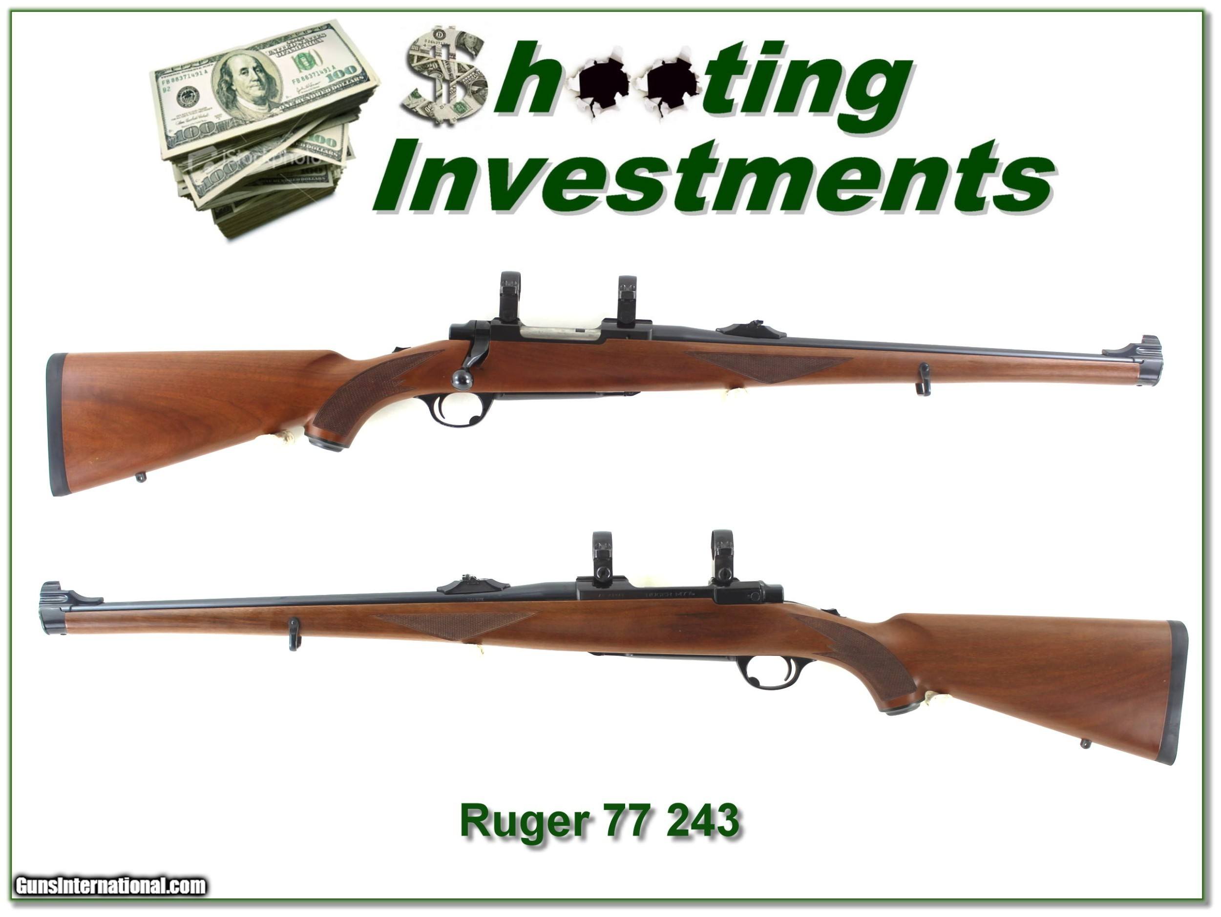 Description: This is an excellent condition Ruger 77 International in 243 Winchester. I find no marks of note on the metal or wood. It has a 19in barrel with full stock and comes as seen with factory rings. I am selling this one on consignment and as such lay-a-way can’t be used. It does of course have the standard 3-day inspection. Shipping and insurance is $39. Please email me with any questions or larger pictures. (Consign your quality firearms with Shooting Investments for only 12%! Let me know if you have any you would like to sell!) 21-1367 Payment: Payment is by Money Order, Cashiers Check or Personal Check. I can now also accept Credit Cards (MasterCard, Visa, Discover & American Express) with a 3% convenience fee. Shipping: The shipping charge will be listed in each description. It is $39 for most firearms. Some heavy guns or those insured for over $2000 will be higher. Shipments to Alaska and Hawaii are higher because air shipment is required. Most firearms are shipped on Tuesday and Thursday and usually in 5 days of receipt of payment. We package all shipments carefully and insure them. Optics are shipped Priority Mail and most other non-firearm shipments are shipped First Class. Returns: Our return policy is simple. If for any reason you are not pleased with your purchase, you may return your item for a full refund of purchase price. Ammunition cannot be returned. It is important to us that you are happy. Guns cannot be fired or dissembled before returning them and they must be returned in the same condition as received. Notification of a return must occur with-in 3 days of receipt at your dealer. Shipping, convenience and dealer fees are not refundable and are the responsibility of the buyer. Lay-a-way: If needed, we offer a 60 day lay-a-way option on most firearms. It is 1/3 now, 1/3 in 30 days and 1/3 in 60 days. Lay-a-way firearm sales are final and if not completed the first payment cannot be returned. Consigning your firearms with Shooting Investments: We will help you get top dollar for your firearms. While most local guns shops charge 20% or more, our fee is only 12% with a minimum of $75. At your local gun shop it might take months to sell. Selling on-line provides instant access to thousands of interested buyers. You won’t find any other on-line dealer willing to sell your firearms for only 12% or listing every gun on 3 separate s. Selling through an House typically costs the seller 15% and the buyer an addition 15% (so 30%) and you have to wait several months to sell and longer to receive funds. If properly priced, we will sell your firearms in a few weeks. Send us an email or give us a call and we’ll explain how easy it is for you to get top dollar. Trading: Trading for use is really just buying your gun to re-sell. If you have a gun you want to trade, please email a picture and we will let you know what we can give or it. You will always get more if we sell it for you on consignment. Help for California Buyers: We are happy to ship to California. It is the buyer’s responsibility to make sure any item you buy is legal in your state. We are also happy to help with your purchase of a firearm from someone other than us. If you see a gun you would like to buy but the seller can’t or won’t ship to California they can ship to use and we’ll then ship it to your California dealer. The cost for this service is only $30 + shipping. Let us know if we can help! SOLD |