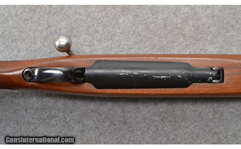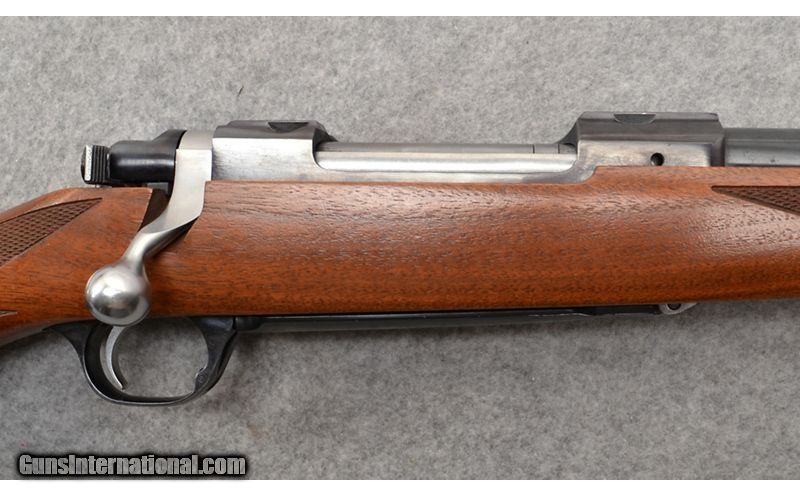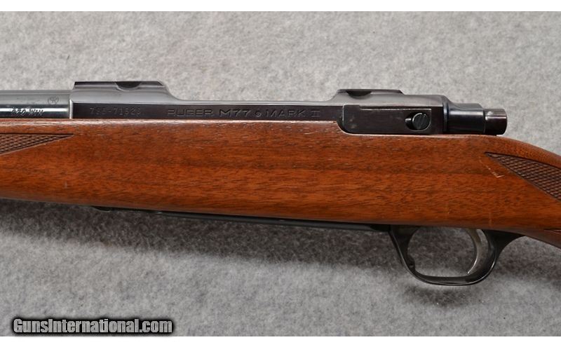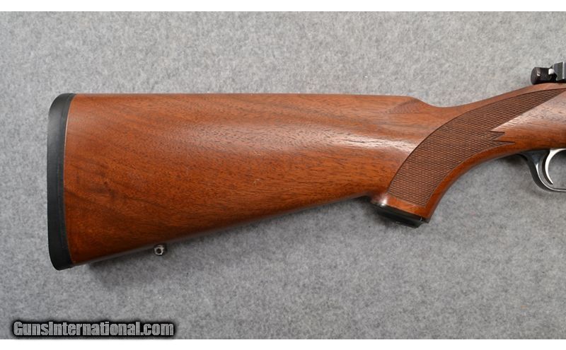 Description: Ruger M77 Mark II in .270 Winchester. A 22" blued barrel sits on a wood stock with checkered pistol grip and checkered fore end. The barrel is generally in good shape with a few scratches and dings. Some scratches do go through the bluing to metal. The bore is bright with strong rifling. The wood stock and fore end is in good shape with a few scratches and dings throughout. There are a couple of spots where the scratches go through the finish. Overall, this firearm is in good shape. However, it has seen some normal wear and tear in its life. .270 Winchester SOLD Metal Condition: "Barrel in generally good shape. There are a few dings and scratches, with some going through the bluing to bare metal. Also, a couple of deep scratches on either side of the front sight. Bolt release on receiver has a couple of pitting spots. Wood Condition: "Numerous dings and scratches in fore end, though none go through the finish. Stock has a few scratches and dings with a couple going through the finish near the heel and sling swivel stud on stock. Bore Condition: Bore is bright with strong rifling. Barrels: 22" barrel. Triggers: Smooth trigger. Stock Dimensions: 13 1/2" LOP Fore End: "Checkered wood fore end. Numerous rubs, dings, and scratches, though none go through the finish. Butt Pad: Factory black rubber recoil pad. Weight: 7 lb - 5 oz Sights: Integral Ruger scope ring attachment bases. Item Location: Mitchell, SD |