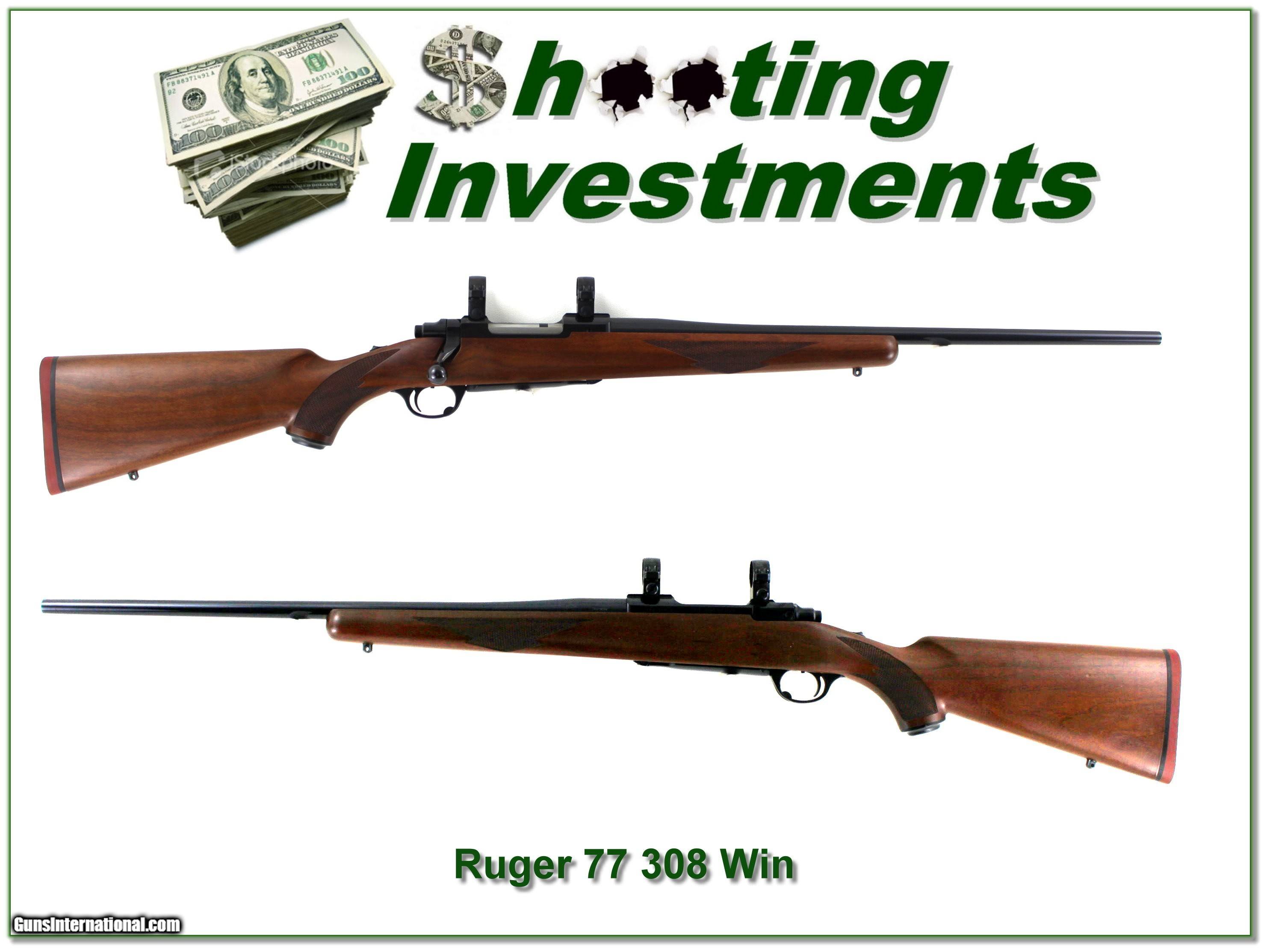 Description: Collectors and hunters, this is an excellent condition and harder to find Ruger M77 in 308 Winchester. It is the original Tang Safety Red Pad model. It has a 22in barrel and comes with factory rings as seen. It has beautiful walnut. The metal is like new and I find no marks of note on the wood. It is a real Shooting Investment! Shipping and insurance is $49. Please email me with any questions or larger pictures. (Consign your quality firearms with Shooting Investments for only 12%! Let me know if you have any you would like to sell!) 25-0553 Payment: Payment is by Money Order, Cashier’s Check or Personal Check. I can now also accept Credit Cards (MasterCard, Visa, Discover & American Express) with a 3% convenience fee. Shipping: The shipping charge will be listed in each description. It is $49 for most firearms. Some heavy guns or those insured for over $2000 will be higher. Shipments to Alaska and Hawaii are higher because air shipment is required. Most firearms are shipped on Tuesday and Thursday and usually in 5 days of receipt of payment. We package all shipments carefully and insure them. Optics are shipped Priority Mail and most other non-firearm shipments are shipped First Class. Returns: Our return policy is simple. If for any reason you are not pleased with your purchase, you may return your item for a full refund of purchase price. Ammunition cannot be returned. It is important to us that you are happy. Guns cannot be fired or dissembled before returning them and they must be returned in the same condition as received. Notification of a return must occur within 3 days of receipt at your dealer. Shipping, convenience and dealer fees are not refundable and are the responsibility of the buyer. Lay-a-way: If needed, we offer a 60 day lay-a-way option on most firearms. It is 1/3 now, 1/3 in 30 days and 1/3 in 60 days. Lay-a-way firearm sales are final and cannot be returned. If a lay-a-way is not completed the first payment cannot be refunded. Consigning your firearms with Shooting Investments: We will help you get top dollar for your firearms. While most local guns shops charge 20% or more, our fee is only 12% with a minimum of $100. At your local gun shop it might take months to sell. Selling on-line provides instant access to thousands of interested buyers. You won’t find any other on-line dealer willing to sell your firearms for only 12% or listing every gun on 3 separate s. Selling through an House typically costs the seller 15% and the buyer an addition 15% (so 30%) and you have to wait several months to sell and longer to receive funds. If properly priced, we will sell your firearms within a few weeks. Send us an email or give us a call and we’ll explain how easy it is for you to get top dollar. Trading: Trading for us is really just buying your gun to re-sell. If you have a gun you want to trade, please email a picture and we will let you know what we can give for it. You will always get more if we sell it for you on consignment. SOLD |