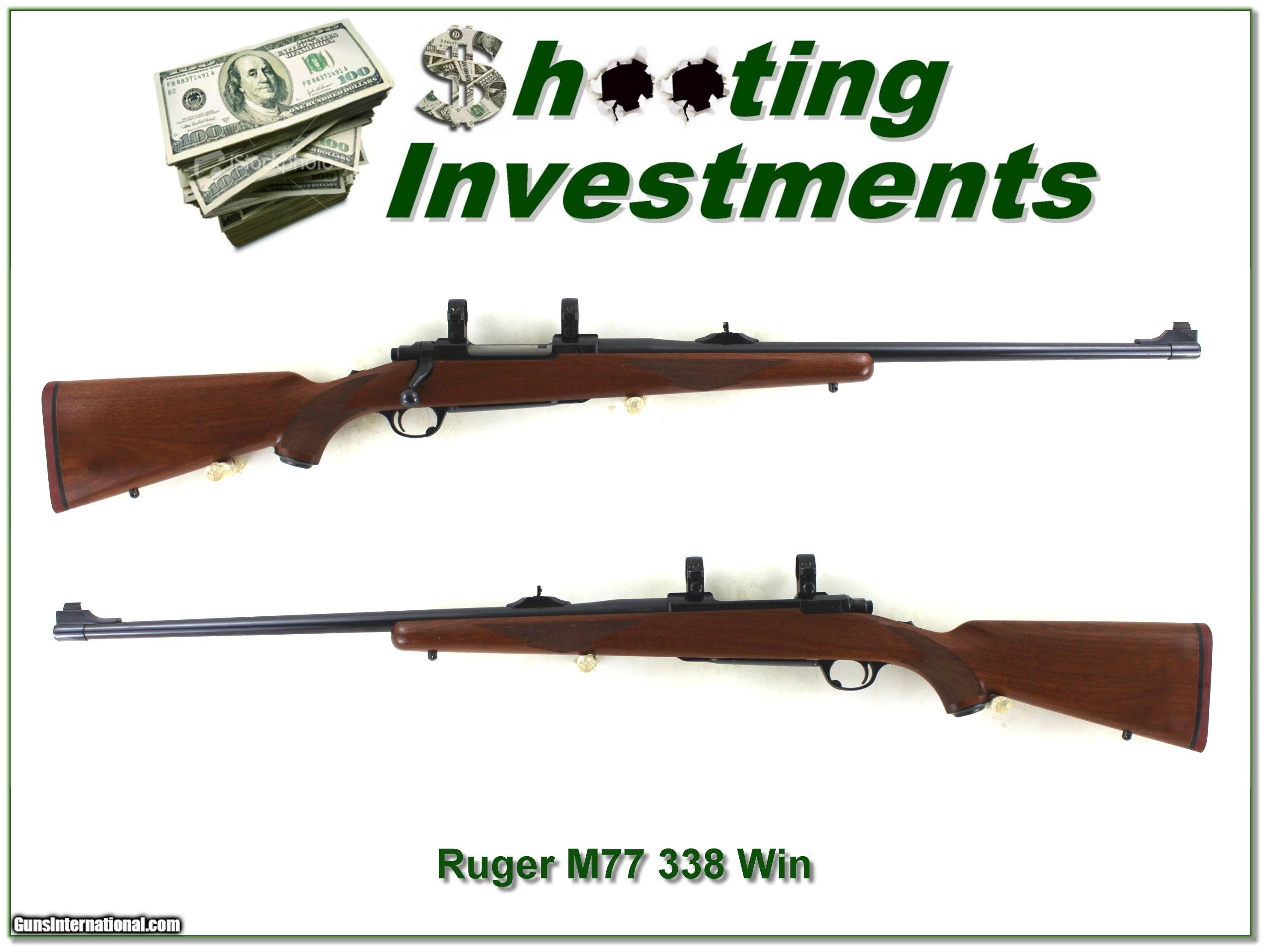 Description: Big game hunters, this is a very nice Ruger M77 in the hard hitting 338 Winchester Magnum. It is the original tang safety Red Pad Ruger. The blue is excellent with no marks I see. It has a 24in barrel with factory open sights and includes factory rings as seen. The walnut has just a few minor marks. It will make a fine addition to your collection of be a classic big game gun! Shipping and insurance is $49. Please email me with any questions or larger pictures. (Consign your quality firearms with Shooting Investments for only 12%! Let me know if you have any you would like to sell!) 25-0439 Payment: Payment is by Money Order, Cashier’s Check or Personal Check. I can now also accept Credit Cards (MasterCard, Visa, Discover & American Express) with a 3% convenience fee. Shipping: The shipping charge will be listed in each description. It is $49 for most firearms. Some heavy guns or those insured for over $2000 will be higher. Shipments to Alaska and Hawaii are higher because air shipment is required. Most firearms are shipped on Tuesday and Thursday and usually in 5 days of receipt of payment. We package all shipments carefully and insure them. Optics are shipped Priority Mail and most other non-firearm shipments are shipped First Class. Returns: Our return policy is simple. If for any reason you are not pleased with your purchase, you may return your item for a full refund of purchase price. Ammunition cannot be returned. It is important to us that you are happy. Guns cannot be fired or dissembled before returning them and they must be returned in the same condition as received. Notification of a return must occur within 3 days of receipt at your dealer. Shipping, convenience and dealer fees are not refundable and are the responsibility of the buyer. Lay-a-way: If needed, we offer a 60 day lay-a-way option on most firearms. It is 1/3 now, 1/3 in 30 days and 1/3 in 60 days. Lay-a-way firearm sales are final and cannot be returned. If a lay-a-way is not completed the first payment cannot be refunded. Consigning your firearms with Shooting Investments: We will help you get top dollar for your firearms. While most local guns shops charge 20% or more, our fee is only 12% with a minimum of $100. At your local gun shop it might take months to sell. Selling on-line provides instant access to thousands of interested buyers. You won’t find any other on-line dealer willing to sell your firearms for only 12% or listing every gun on 3 separate s. Selling through an House typically costs the seller 15% and the buyer an addition 15% (so 30%) and you have to wait several months to sell and longer to receive funds. If properly priced, we will sell your firearms within a few weeks. Send us an email or give us a call and we’ll explain how easy it is for you to get top dollar. Trading: Trading for us is really just buying your gun to re-sell. If you have a gun you want to trade, please email a picture and we will let you know what we can give for it. You will always get more if we sell it for you on consignment. SOLD |