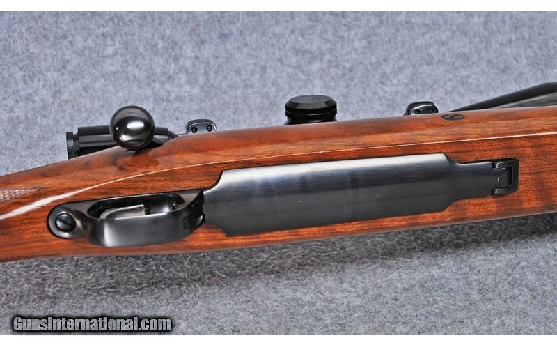 Description: As per manufacturer: Non-rotating, Mauser-type controlled round feed extractor is the most positive case extraction system ever invented, and features a fixed blade-type ejector that positively ejects the empty cases as the bolt is moved fully rearward. Three-position safety is easily accessible and allows the shooter to lock the bolt or to load and unload the rifle with the safety engaged. Cold hammer-forged barrel results in ultra-precise rifling that provides exceptional accuracy, longevity and easy cleaning. Patented integral scope mounts, machined directly on the solid-steel receiver, provide a stable mounting surface for scope rings, eliminating a potential source of looseness and inaccuracy in the field. Ergonomically pleasing, American walnut stock has rounded contours along the barrel, on the bottom of the stock and on top of the pistol grip and wrap-around checkering on grip and forend. Hinged solid-steel floorplate for easy unloading without having to chamber each cartridge. Features patented latch that is flush with the trigger guard to avoid accidental dumping of cartridges. SOLD Caliber Info: .375 H&H Magnum. Metal Condition: Excellent condition. Wood Condition: Good with some minor handling marks. Chiped finish on Ebony forend. Bore Condition: Bright and shiny. Barrels: 24 In. Stock: American walnut with checkered pistol grip with cap. Stock Dimensions: 13 1/2 LOP Fore End: American walnut checkered grip with Ebony forend cap. Butt Pad: Ruger original. Weight: 10 1/2 Lbs. with scope. Sights: Nikon Monarch 6x42. Drift adjustable quarter rib with one fixed and two folding leaves. Replacable front sight with brass bead. Extras: With scope. Item Location: Billings, MT |