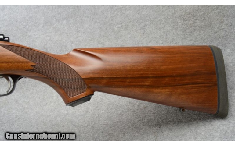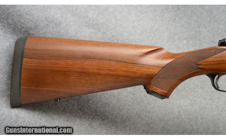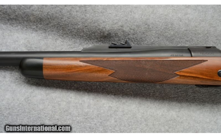 Description: SOLD Caliber Info: .375 H&H Metal Condition: Scratches to the flat black metal finishes Wood Condition: Scratches and dents to the stock and forearm Bore Condition: Bright and shiny Barrels: 23 Stock: Checkered walnut with metal capped pistol grip Stock Dimensions: 13 7/8" LOP Fore End: Checkered walnut with ebony forend tip Butt Pad: Hiviz Xcoil black rubber buttpad Weight: 9 lbs 7 oz Sights: Graduated rear flip sight blades with front blade sight Item Location: Fort Worth, TX |