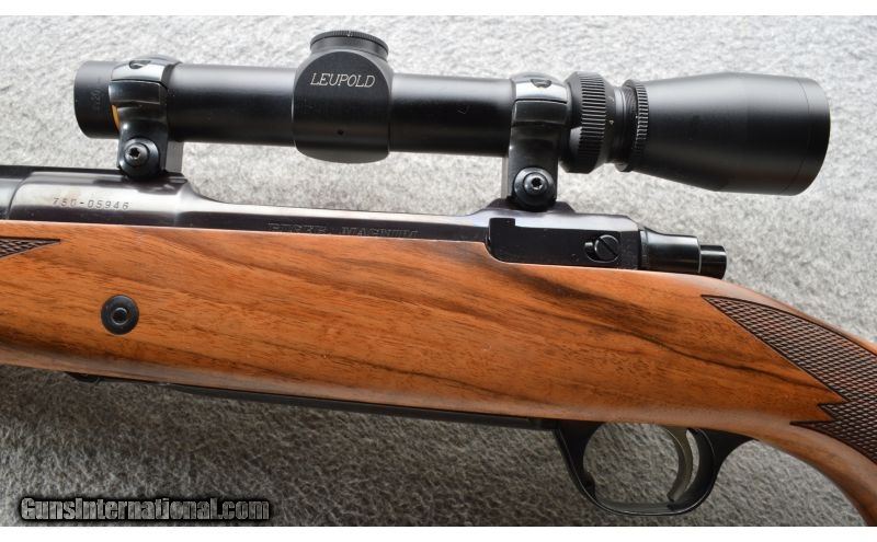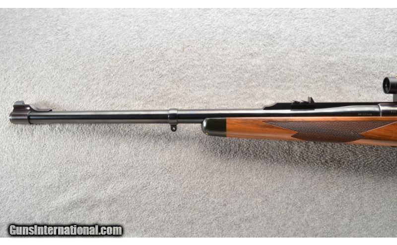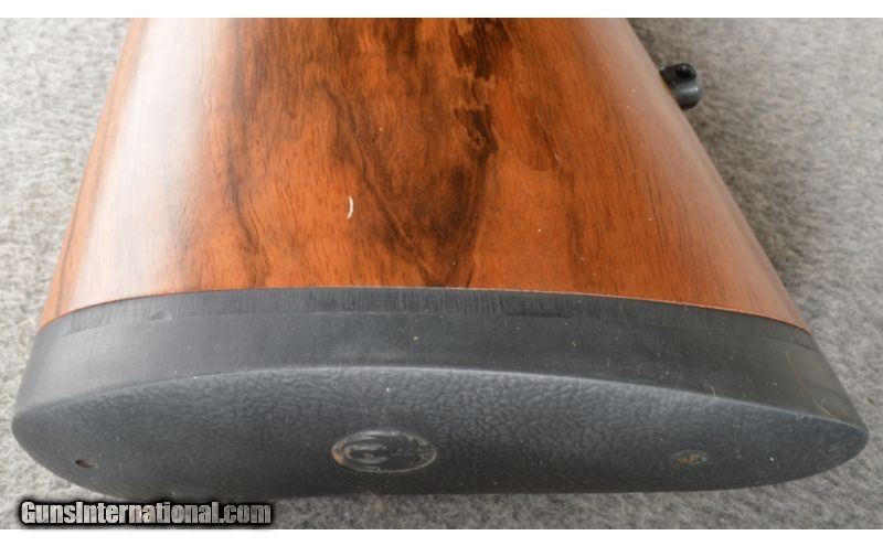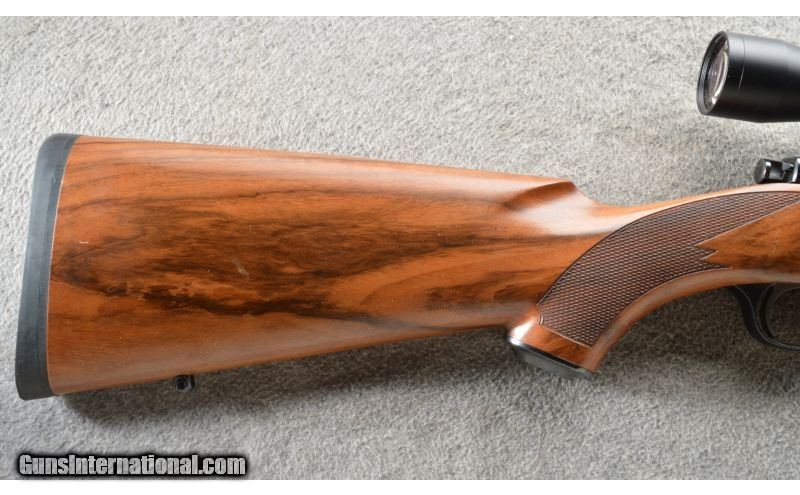 Description: This is a like new Ruger Magnum Rifle with a 750 Prefix. The blue is like new and the high grade walnut stock is also about new. There is a little finish flaking on the black forearn tip (standard). This is one of the true Magnum rifles with a 750 Prefix and has safari sights and is topped with a Leupold VX-II 1-4X20 Scope. If you are giong where the pray hunts back this would be a great rifle for you. SOLD Caliber Info: .375 H&H Chambers: Bolt action repeater. Metal Condition: Like new. Wood Condition: Excellent. Bore Condition: Bright and shiny. Barrels: 23 inch blue with sights and sling band. Triggers: Single. Stock: High grade walnut with a checkered pistol grip a grip cap and rear sling stud. Stock Dimensions: 13 1/2 Inch LOP. Fore End: Matching checkered walnut and a black tip. Butt Pad: Ruger black rubber butt pad. Weight: 10 Lbs 12 Oz as pictured with the scope. Sights: Safari with 1 standing and 2 folding rear and a blade on ramp front along with a Leupold VX-II 1-4X20 Scope. Extras: Comes with rings and the Leupold scope. Item Location: Owatonna, MN |