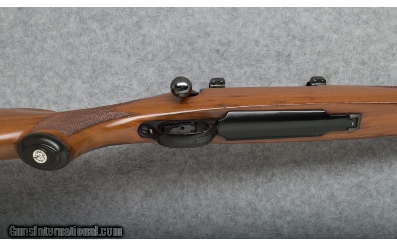 Description: SOLD Caliber Info: .300 Win. Mag. Metal Condition: Very good; couple of scratches on triggerguard Wood Condition: Good; some scratches and handling marks Bore Condition: Clean and sharp Barrels: 24 Triggers: Smooth; blued steel Stock: Classic checkered walnut with steel grip cap Stock Dimensions: LOP - 13 3/4 inch Butt Pad: Red rubber pad Weight: 8 lbs. Sights: None - integrated dovetail bases Item Location: Sun Prairie, WI |