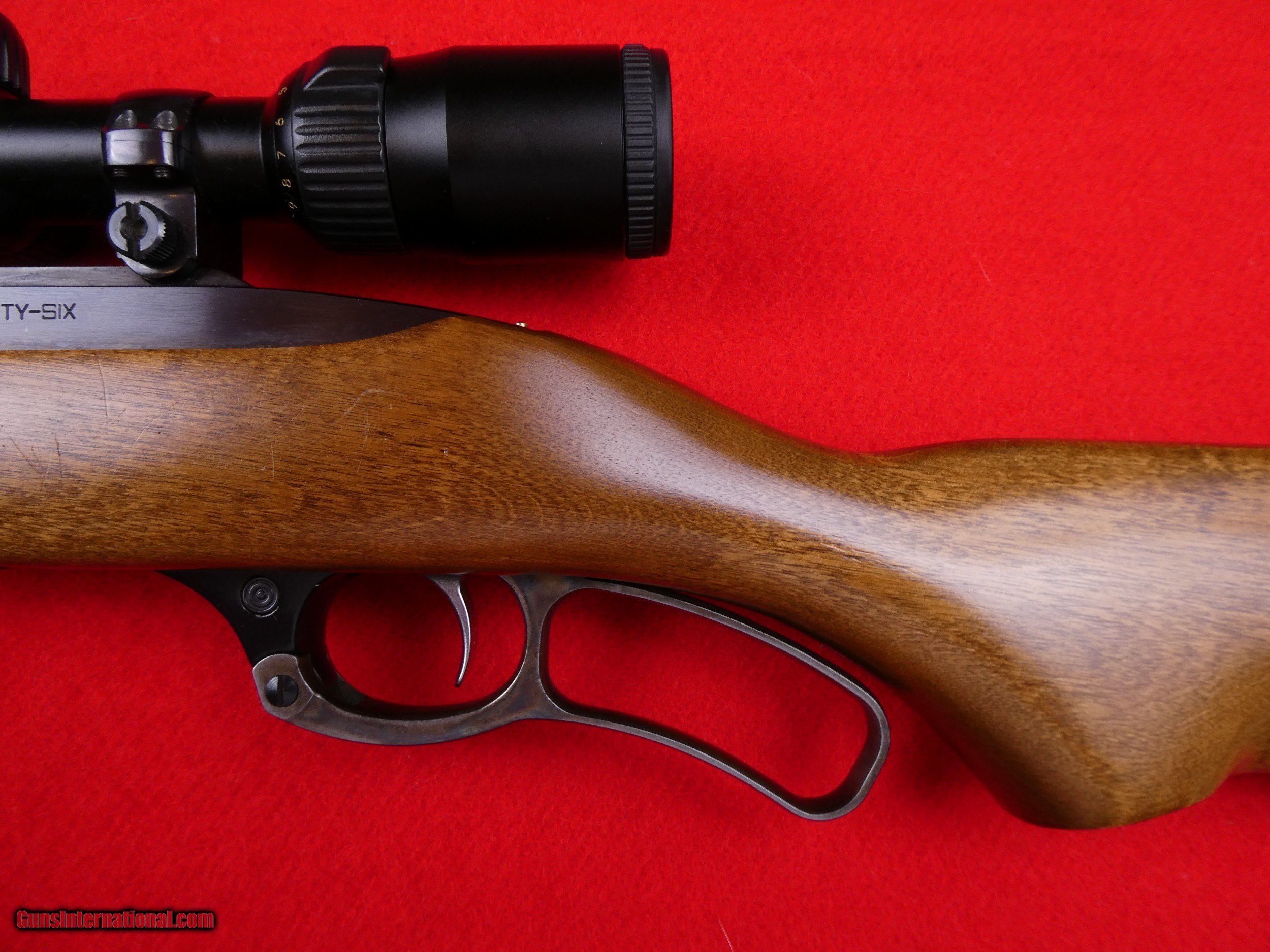 Description: Ruger Model 96 .44 Magnum Lever action. Comes with Nikon Prostaff 3x9x40 scope. Disc in 2007, 18 1/2 inch barrel, uncheckered stock, 4- round rotary mag. cross bolt safety, case color hardened lever, integral scope base. ser # 640-16593. Rifle has been used but does not look like it. Like new. These are the same rifle as the model 44 carbine semi- auto except in lever action. Scarce gun in .44 mag. Layaway available SOLD |