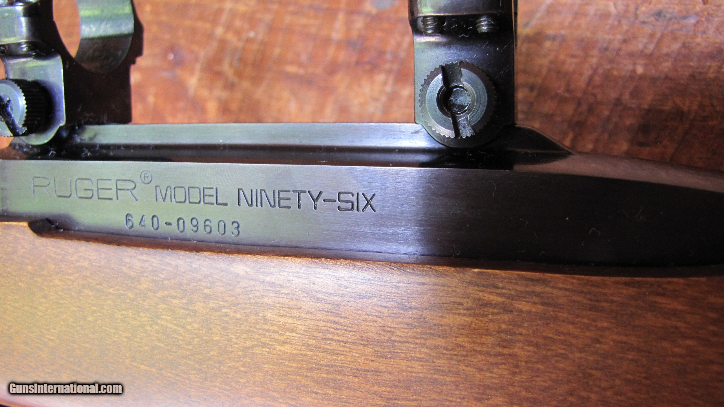 Description: Here is a Rare Ruger model Ninety-Six (96) chambered in 44 Magnum. This rifle is in excellent condition with just a few marks on the magazine base plate. The wood and metal rate as excellent. The lever has really nice case colors. The bore looks excellent. Includes Ruger rings for scope mounting. This is a beautiful rare Ruger rifle in a great caliber. We are required to charge 5.5% tax for Maine residents and 8.25% for Texas residents. There is a 3.5% fee if paying by credit card. SOLD Rifle Caliber: .44 Magnum Manufacturer: Ruger Model: 96 Serial Number: 640-09603 Condition: Excellent Metal Condition: Excellent Wood Condition: Excellent Bore Condition: Excellent |
