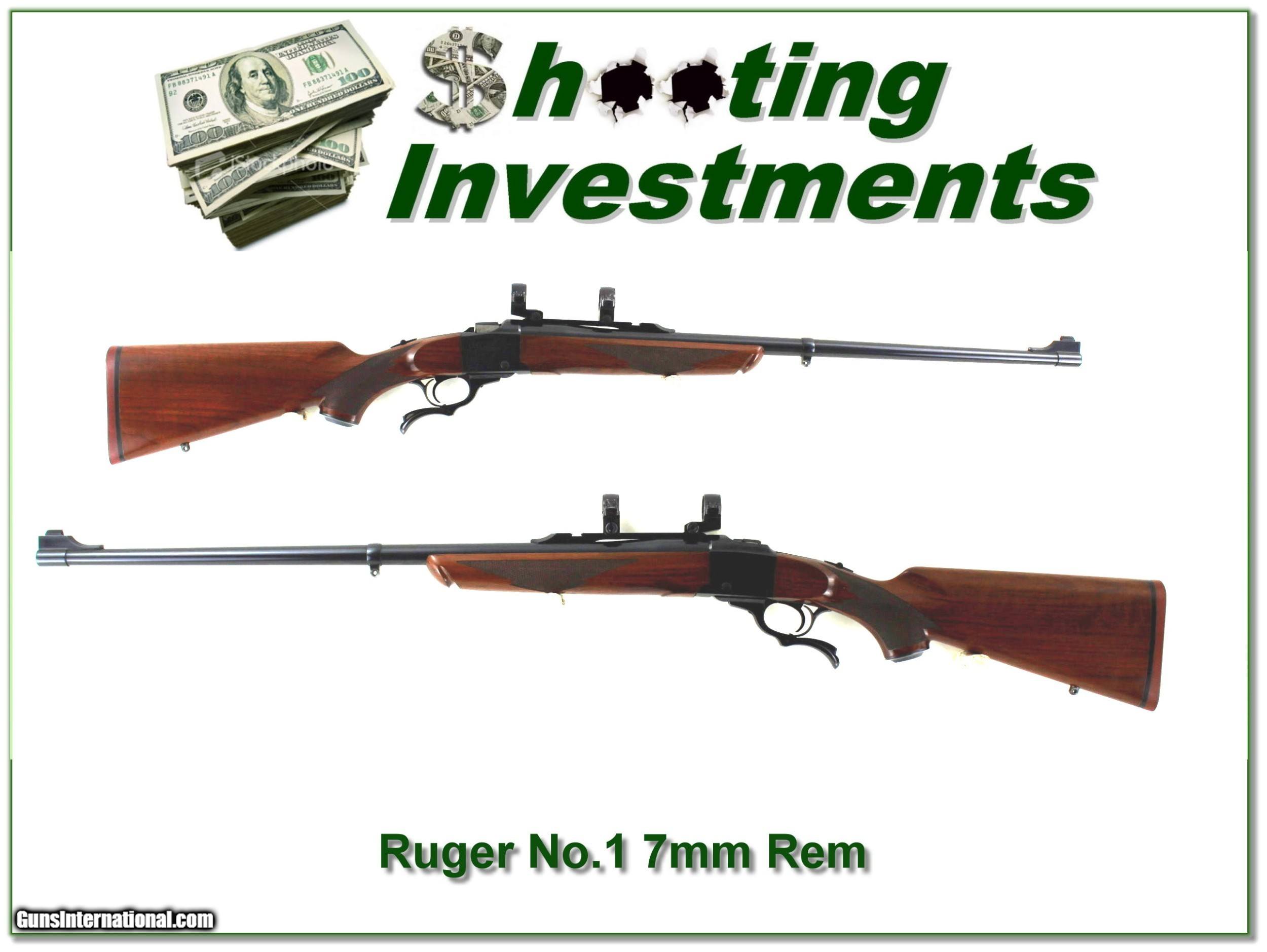 Description: This is a Ruger No.1 S Sporter in 7mm Remington Magnum. It is a n earlier Red Pad in excellent condition. I find no marks on the blue and only a few light handling marks on the wood. It has a26in barrel and comes with factory rings as seen. Shipping and insurance is $49. Please email me with any questions or larger pictures. (Consign your quality firearms with Shooting Investments for only 12%! Let me know if you have any you would like to sell!) 22-0380 Payment: Payment is by Money Order, Cashiers Check or Personal Check. I can now also accept Credit Cards (MasterCard, Visa, Discover & American Express) with a 3% convenience fee. Shipping: The shipping charge will be listed in each description. It is $49 for most long guns. Some heavy guns, over 48in boxes or those insured for over $2000 will be higher. Shipments to Alaska and Hawaii are higher because air shipment is required. Most firearms are shipped on Tuesday and Thursday and usually in 5 days of receipt of payment. We package all shipments carefully and insure them. Optics are shipped Priority Mail and most other non-firearm shipments are shipped First Class. Returns: Our return policy is simple. If for any reason you are not pleased with your purchase, you may return your item for a full refund of purchase price. Ammunition cannot be returned. It is important to us that you are happy. Guns cannot be fired or dissembled before returning them and they must be returned in the same condition as received. Notification of a return must occur with-in 3 days of receipt at your dealer. Shipping, convenience and dealer fees are not refundable and are the responsibility of the buyer. Lay-a-way: If needed, we offer a 60 day lay-a-way option on most firearms. It is 1/3 now, 1/3 in 30 days and 1/3 in 60 days. Lay-a-way firearm sales are final and if not completed the first payment cannot be returned. Consigning your firearms with Shooting Investments: We will help you get top dollar for your firearms. While most local guns shops charge 20% or more, our fee is only 12% with a minimum of $75. At your local gun shop it might take months to sell. Selling on-line provides instant access to thousands of interested buyers. You won’t find any other on-line dealer willing to sell your firearms for only 12% or listing every gun on 3 separate s. Selling through an House typically costs the seller 15% and the buyer an addition 15% (so 30%) and you have to wait several months to sell and longer to receive funds. If properly priced, we will sell your firearms in a few weeks. Send us an email or give us a call and we’ll explain how easy it is for you to get top dollar. Trading: Trading for use is really just buying your gun to re-sell. If you have a gun you want to trade, please email a picture and we will let you know what we can give or it. You will always get more if we sell it for you on consignment. Help for California Buyers: We are happy to ship to California. It is the buyer’s responsibility to make sure any item you buy is legal in your state. We are also happy to help with your purchase of a firearm from someone other than us. If you see a gun you would like to buy but the seller can’t or won’t ship to California they can ship to use and we’ll then ship it to your California dealer. The cost for this service is only $30 + shipping. Let us know if we can help! SOLD |