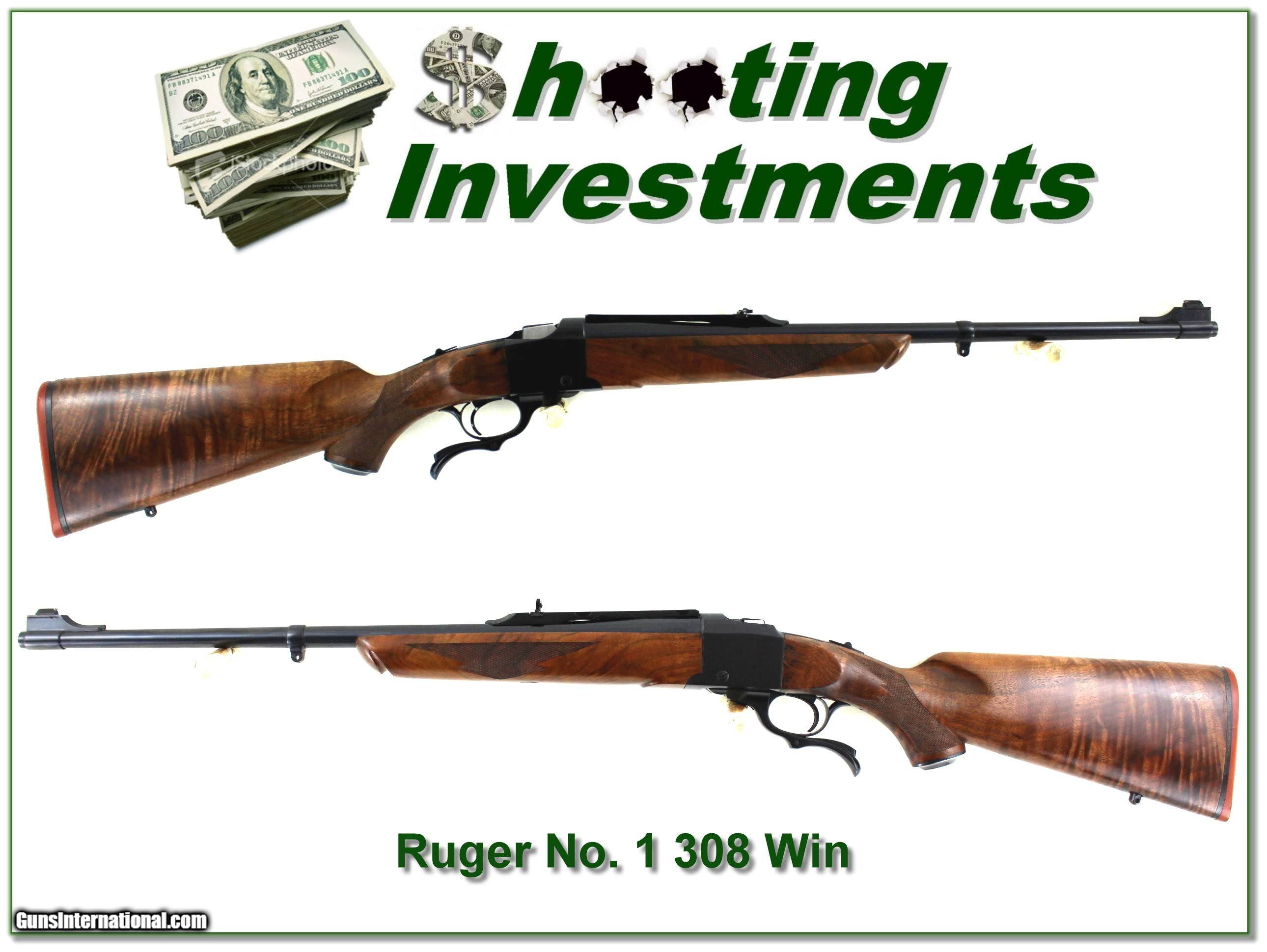 Description: Collectors, this is an early 4-digit serial number Ruger No.1. It is a Light Sportier in hard to find 308 Winchester. It has beautiful wood colors and figure and is of course an early pre-warning Red Pad Ruger! The blue is excellent. It has a 22in barrel with open sights. The wood has a small chip out at the trigger otherwise just a couple minor marks. I am selling this one on consignment and as such lay-a-way can’t be used. It does of course have the standard 3-day inspection. Shipping and insurance is $59. Please email me with any questions or larger pictures. (Consign your quality firearms with Shooting Investments for only 12%! Let me know if you have any you would like to sell!) 24-0773 Payment: Payment is by Money Order, Cashier’s Check or Personal Check. I can now also accept Credit Cards (MasterCard, Visa, Discover & American Express) with a 3% convenience fee. Shipping: The shipping charge will be listed in each description. It is $49 for most firearms. Some heavy guns or those insured for over $2000 will be higher. Shipments to Alaska and Hawaii are higher because air shipment is required. Most firearms are shipped on Tuesday and Thursday and usually in 5 days of receipt of payment. We package all shipments carefully and insure them. Optics are shipped Priority Mail and most other non-firearm shipments are shipped First Class. Returns: Our return policy is simple. If for any reason you are not pleased with your purchase, you may return your item for a full refund of purchase price. Ammunition cannot be returned. It is important to us that you are happy. Guns cannot be fired or dissembled before returning them and they must be returned in the same condition as received. Notification of a return must occur within 3 days of receipt at your dealer. Shipping, convenience and dealer fees are not refundable and are the responsibility of the buyer. Lay-a-way: If needed, we offer a 60 day lay-a-way option on most firearms. It is 1/3 now, 1/3 in 30 days and 1/3 in 60 days. Lay-a-way firearm sales are final and cannot be returned. If a lay-a-way is not completed the first payment cannot be refunded. Consigning your firearms with Shooting Investments: We will help you get top dollar for your firearms. While most local guns shops charge 20% or more, our fee is only 12% with a minimum of $75. At your local gun shop it might take months to sell. Selling on-line provides instant access to thousands of interested buyers. You won’t find any other on-line dealer willing to sell your firearms for only 12% or listing every gun on 3 separate s. Selling through an House typically costs the seller 15% and the buyer an addition 15% (so 30%) and you have to wait several months to sell and longer to receive funds. If properly priced, we will sell your firearms within a few weeks. Send us an email or give us a call and we’ll explain how easy it is for you to get top dollar. Trading: Trading for us is really just buying your gun to re-sell. If you have a gun you want to trade, please email a picture and we will let you know what we can give for it. You will always get more if we sell it for you on consignment. SOLD |