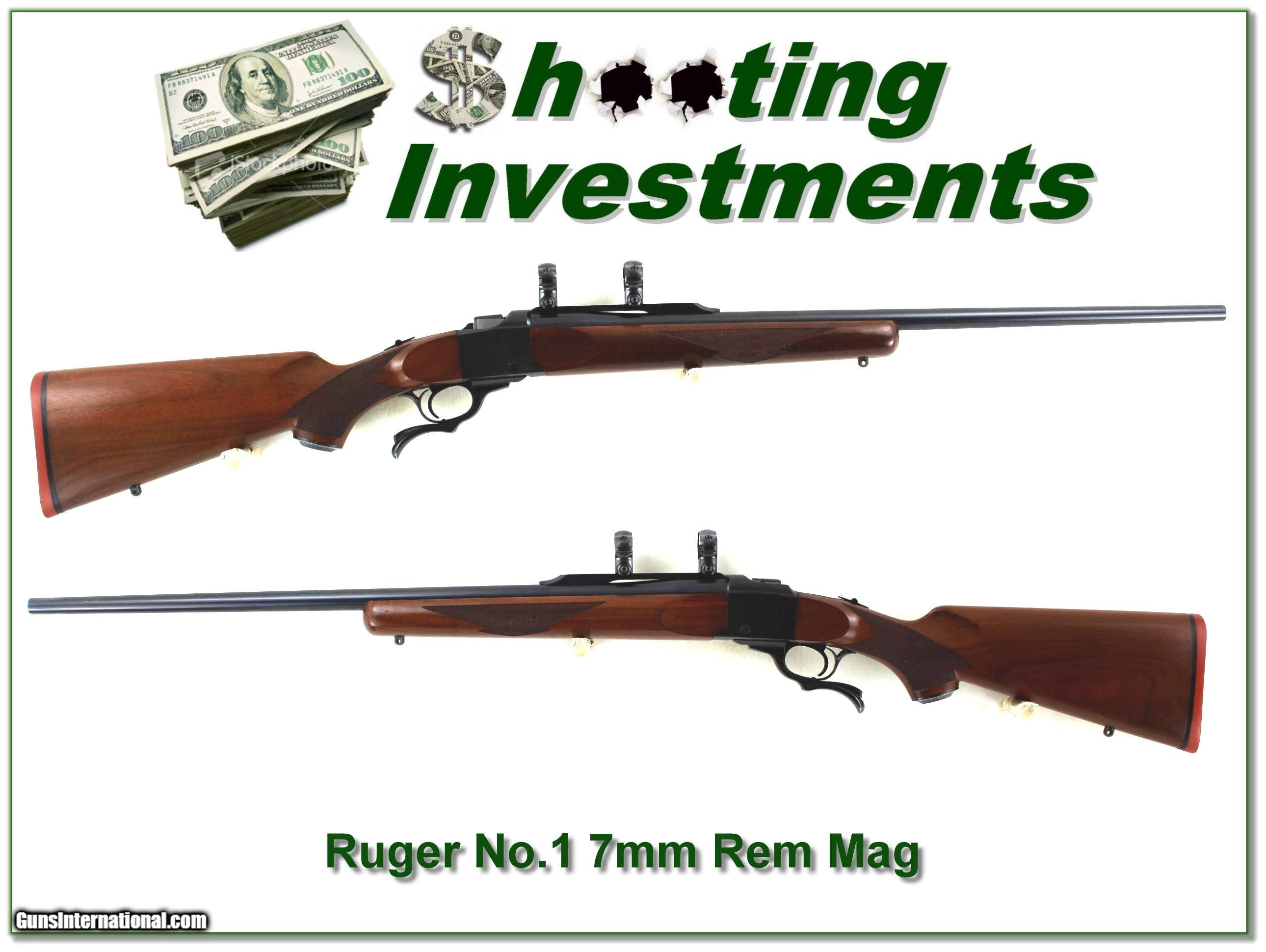 Description: Shooters and long rang hunters, this is an earlier Ruger No.1 B in 7mm Remington Magnum. It has a 26in barrel and comes with rings as seen. The metal is excellent and wood has just a few minor marks mostly on the forearm. It will make a classic Ruger! Shipping and insurance is $49. Please email me with any questions or larger pictures. (Consign your quality firearms with Shooting Investments for only 12%! Let me know if you have any you would like to sell!) 24-0493 Payment: Payment is by Money Order, Cashier’s Check or Personal Check. I can now also accept Credit Cards (MasterCard, Visa, Discover & American Express) with a 3% convenience fee. Shipping: The shipping charge will be listed in each description. It is $49 for most firearms. Some heavy guns or those insured for over $2000 will be higher. Shipments to Alaska and Hawaii are higher because air shipment is required. Most firearms are shipped on Tuesday and Thursday and usually in 5 days of receipt of payment. We package all shipments carefully and insure them. Optics are shipped Priority Mail and most other non-firearm shipments are shipped First Class. Returns: Our return policy is simple. If for any reason you are not pleased with your purchase, you may return your item for a full refund of purchase price. Ammunition cannot be returned. It is important to us that you are happy. Guns cannot be fired or dissembled before returning them and they must be returned in the same condition as received. Notification of a return must occur within 3 days of receipt at your dealer. Shipping, convenience and dealer fees are not refundable and are the responsibility of the buyer. Lay-a-way: If needed, we offer a 60 day lay-a-way option on most firearms. It is 1/3 now, 1/3 in 30 days and 1/3 in 60 days. Lay-a-way firearm sales are final and cannot be returned. If a lay-a-way is not completed the first payment cannot be refunded. Consigning your firearms with Shooting Investments: We will help you get top dollar for your firearms. While most local guns shops charge 20% or more, our fee is only 12% with a minimum of $75. At your local gun shop it might take months to sell. Selling on-line provides instant access to thousands of interested buyers. You won’t find any other on-line dealer willing to sell your firearms for only 12% or listing every gun on 3 separate s. Selling through an House typically costs the seller 15% and the buyer an addition 15% (so 30%) and you have to wait several months to sell and longer to receive funds. If properly priced, we will sell your firearms within a few weeks. Send us an email or give us a call and we’ll explain how easy it is for you to get top dollar. Trading: Trading for us is really just buying your gun to re-sell. If you have a gun you want to trade, please email a picture and we will let you know what we can give for it. You will always get more if we sell it for you on consignment. SOLD |