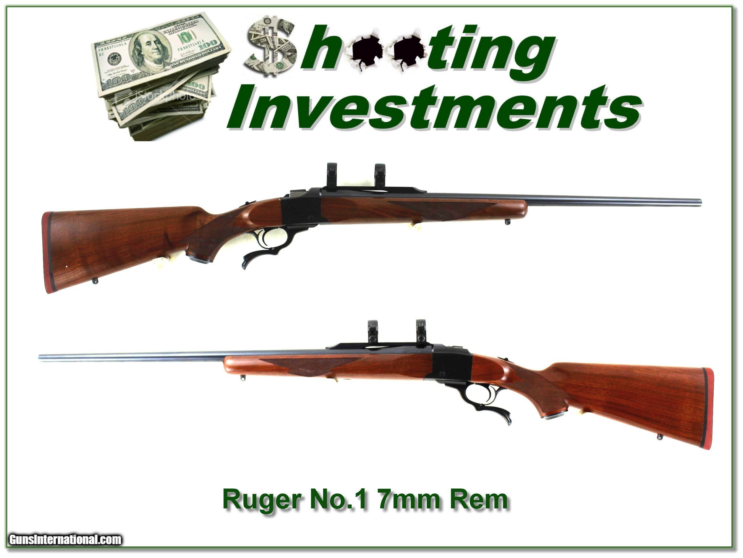 Description: Shooters, hunters and collectors, this is an excellent condition older Ruger No.1 Red Pad in 7mm Remington Magnum. It is the “B” or Beavertail model with 26in barrel. The metal is about new with no marks I see and it comes with factory rings. I’m sure not more than a few rounds fired. The walnut has only a few insignificant handing marks! It is a real Shooting Investment. Shipping and insurance is $49. Please email me with any questions or larger pictures. (Consign your quality firearms with Shooting Investments for only 12%! Let me know if you have any you would like to sell!) 24-0456 Payment: Payment is by Money Order, Cashier’s Check or Personal Check. I can now also accept Credit Cards (MasterCard, Visa, Discover & American Express) with a 3% convenience fee. Shipping: The shipping charge will be listed in each description. It is $49 for most firearms. Some heavy guns or those insured for over $2000 will be higher. Shipments to Alaska and Hawaii are higher because air shipment is required. Most firearms are shipped on Tuesday and Thursday and usually in 5 days of receipt of payment. We package all shipments carefully and insure them. Optics are shipped Priority Mail and most other non-firearm shipments are shipped First Class. Returns: Our return policy is simple. If for any reason you are not pleased with your purchase, you may return your item for a full refund of purchase price. Ammunition cannot be returned. It is important to us that you are happy. Guns cannot be fired or dissembled before returning them and they must be returned in the same condition as received. Notification of a return must occur within 3 days of receipt at your dealer. Shipping, convenience and dealer fees are not refundable and are the responsibility of the buyer. Lay-a-way: If needed, we offer a 60 day lay-a-way option on most firearms. It is 1/3 now, 1/3 in 30 days and 1/3 in 60 days. Lay-a-way firearm sales are final and cannot be returned. If a lay-a-way is not completed the first payment cannot be refunded. Consigning your firearms with Shooting Investments: We will help you get top dollar for your firearms. While most local guns shops charge 20% or more, our fee is only 12% with a minimum of $75. At your local gun shop it might take months to sell. Selling on-line provides instant access to thousands of interested buyers. You won’t find any other on-line dealer willing to sell your firearms for only 12% or listing every gun on 3 separate s. Selling through an House typically costs the seller 15% and the buyer an addition 15% (so 30%) and you have to wait several months to sell and longer to receive funds. If properly priced, we will sell your firearms within a few weeks. Send us an email or give us a call and we’ll explain how easy it is for you to get top dollar. Trading: Trading for us is really just buying your gun to re-sell. If you have a gun you want to trade, please email a picture and we will let you know what we can give for it. You will always get more if we sell it for you on consignment. SOLD |