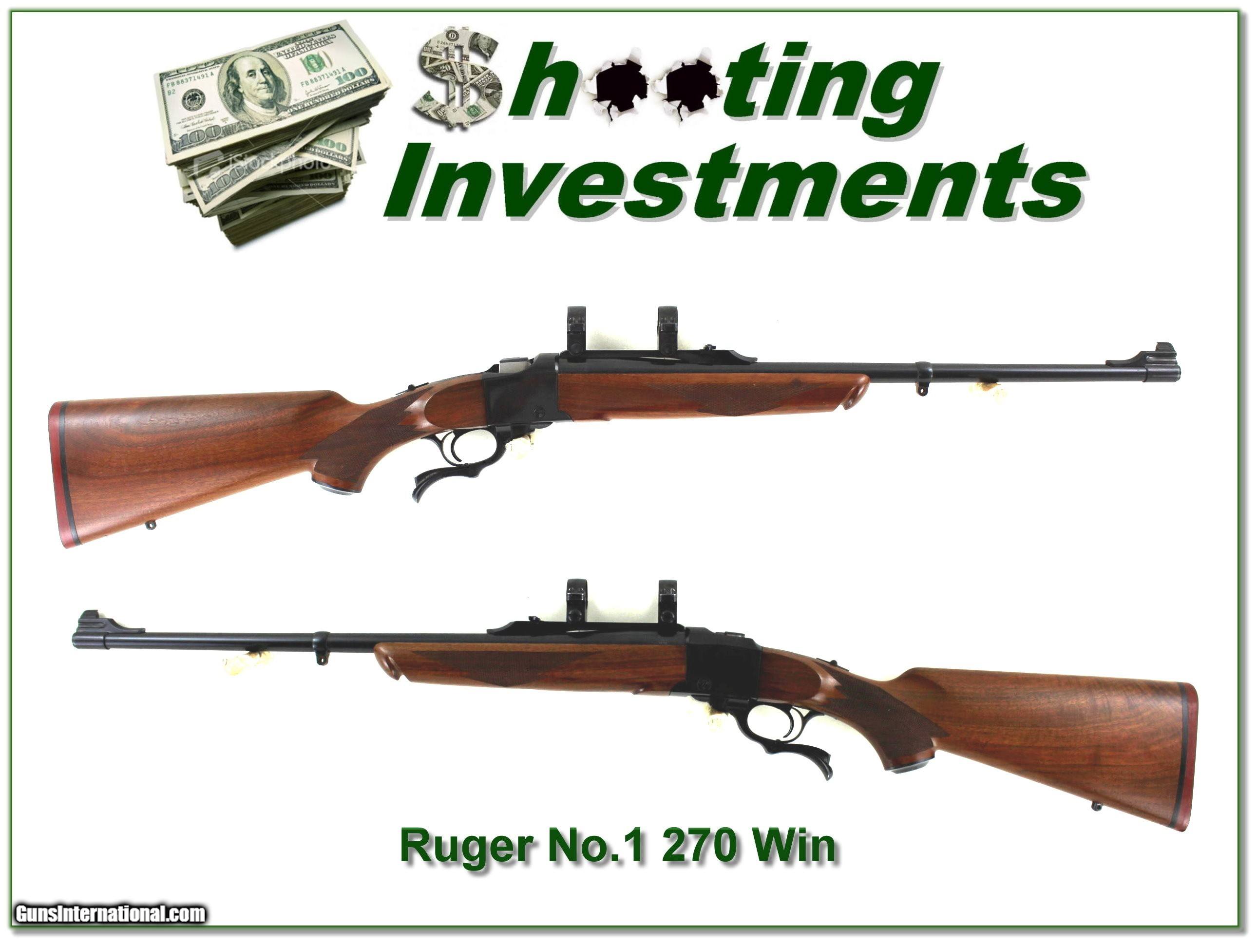 Description: Shooters, collectors and hunters, this is an very nice earlier Ruger No.1 A (Light Sportier) in 270 Winchester. It has a 24in barrel with open sights and comes with factory rings as seen. It is excellent with light use and I just see a few insignificant marks on the walnut! Shipping with insurance is $49. Please email me with any questions or larger pictures. (Consign your quality firearms with Shooting Investments for only 12%! Let me know if you have any you would like to sell!) 24-0784 Payment: Payment is by Money Order, Cashier’s Check or Personal Check. I can now also accept Credit Cards (MasterCard, Visa, Discover & American Express) with a 3% convenience fee. Shipping: The shipping charge will be listed in each description. It is $49 for most firearms. Some heavy guns or those insured for over $2000 will be higher. Shipments to Alaska and Hawaii are higher because air shipment is required. Most firearms are shipped on Tuesday and Thursday and usually in 5 days of receipt of payment. We package all shipments carefully and insure them. Optics are shipped Priority Mail and most other non-firearm shipments are shipped First Class. Returns: Our return policy is simple. If for any reason you are not pleased with your purchase, you may return your item for a full refund of purchase price. Ammunition cannot be returned. It is important to us that you are happy. Guns cannot be fired or dissembled before returning them and they must be returned in the same condition as received. Notification of a return must occur within 3 days of receipt at your dealer. Shipping, convenience and dealer fees are not refundable and are the responsibility of the buyer. Lay-a-way: If needed, we offer a 60 day lay-a-way option on most firearms. It is 1/3 now, 1/3 in 30 days and 1/3 in 60 days. Lay-a-way firearm sales are final and cannot be returned. If a lay-a-way is not completed the first payment cannot be refunded. Consigning your firearms with Shooting Investments: We will help you get top dollar for your firearms. While most local guns shops charge 20% or more, our fee is only 12% with a minimum of $75. At your local gun shop it might take months to sell. Selling on-line provides instant access to thousands of interested buyers. You won’t find any other on-line dealer willing to sell your firearms for only 12% or listing every gun on 3 separate s. Selling through an House typically costs the seller 15% and the buyer an addition 15% (so 30%) and you have to wait several months to sell and longer to receive funds. If properly priced, we will sell your firearms within a few weeks. Send us an email or give us a call and we’ll explain how easy it is for you to get top dollar. Trading: Trading for us is really just buying your gun to re-sell. If you have a gun you want to trade, please email a picture and we will let you know what we can give for it. You will always get more if we sell it for you on consignment. SOLD |