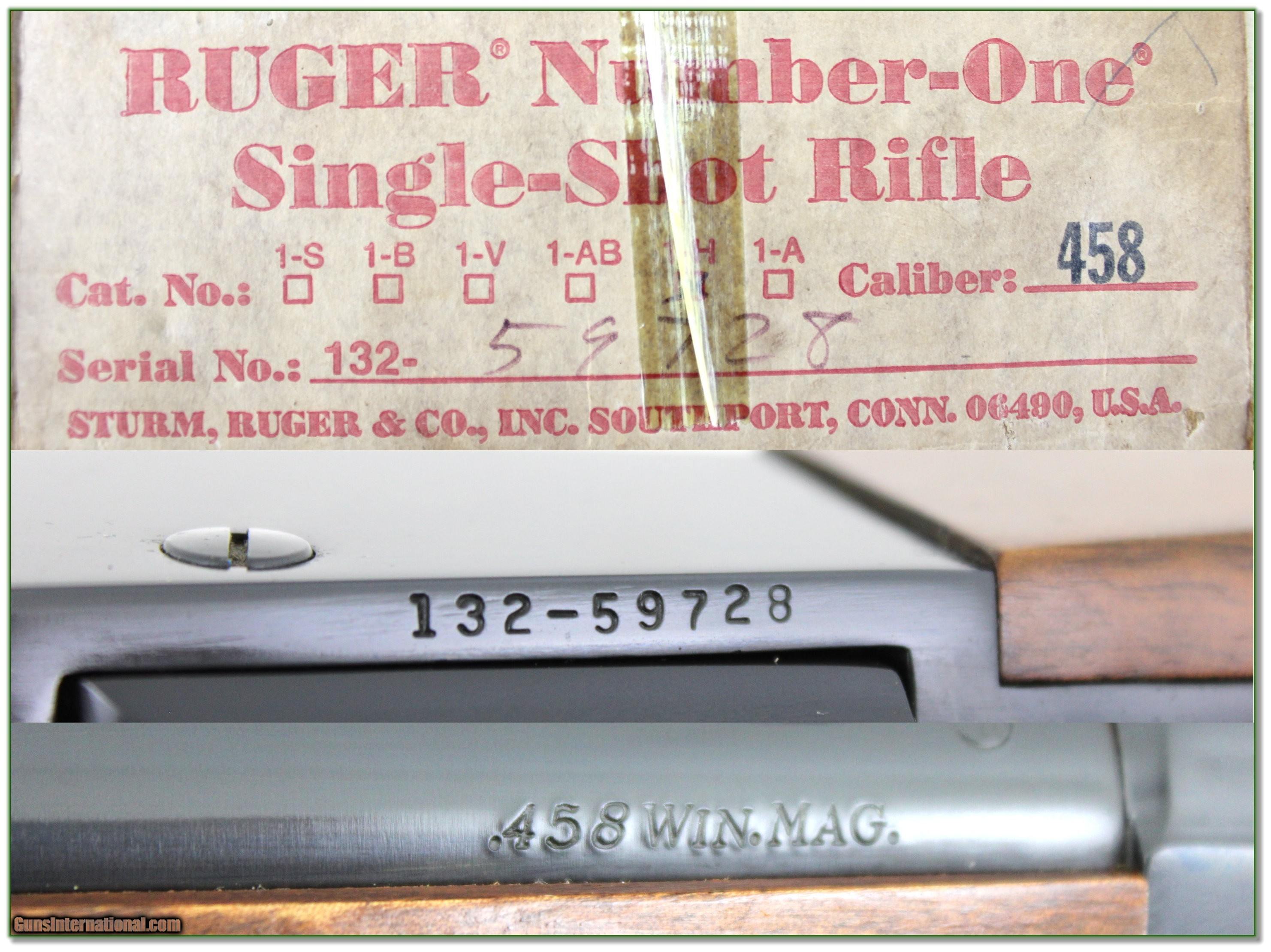 Ruger No.1 Tropical unfired in box 458 Win Red Pad!