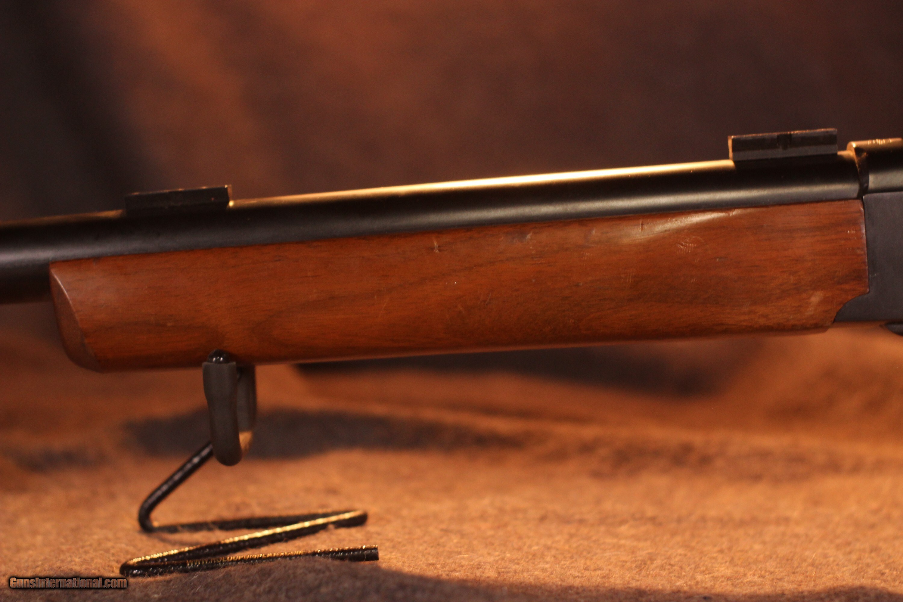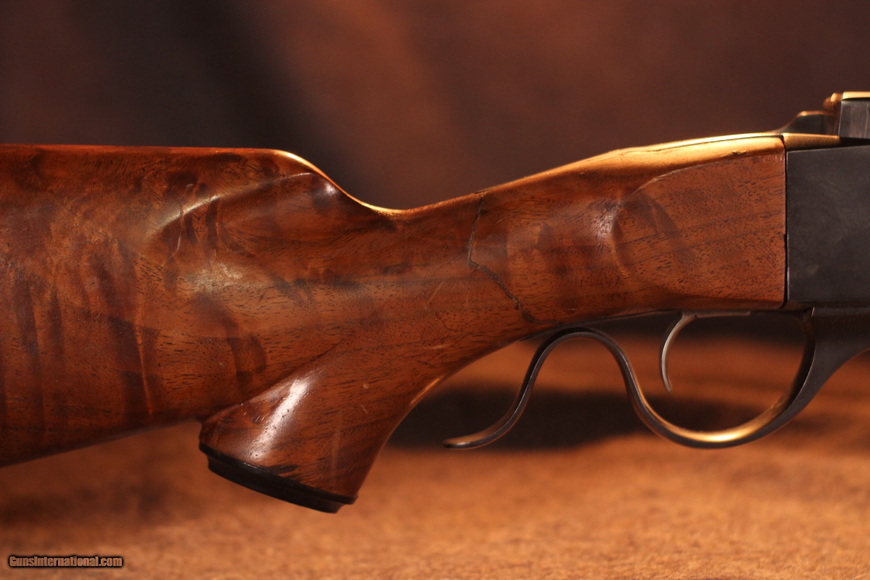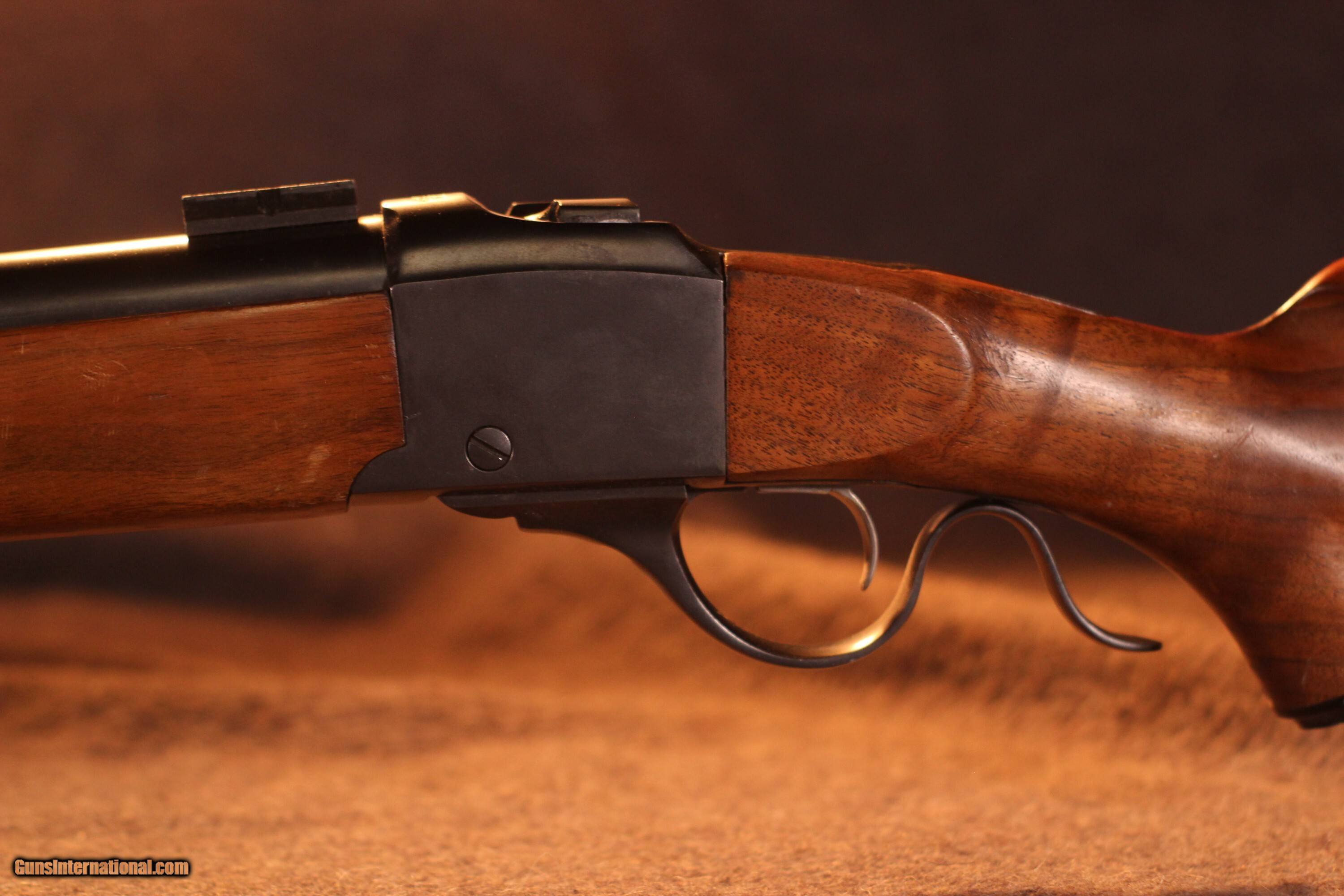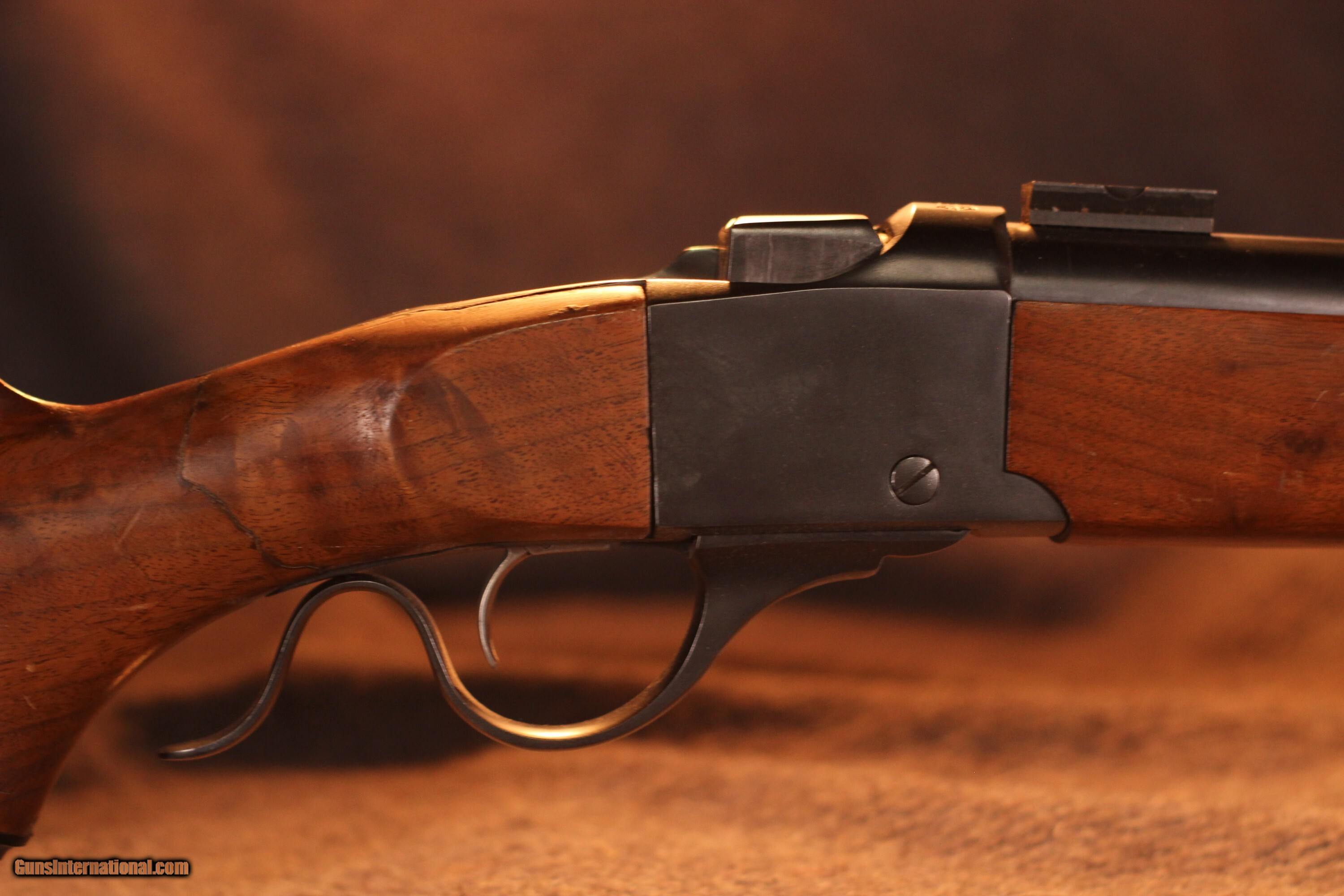 Description: Ruger No1 custom caliber 357 maximum cartridge 26 inch medium heavy barrel custom reshaped wood pistol grips cracked and repaired rifle has No3 Ruger operating lever no top tang safety match grade trigger excellent bore 95% factory bluing 80% wood finish $1295.00 $48.00 shipping Rifle Caliber: .357 Magnum Price: $1,295.00 Shipping: $48.00 Buy Now Contact Seller |
