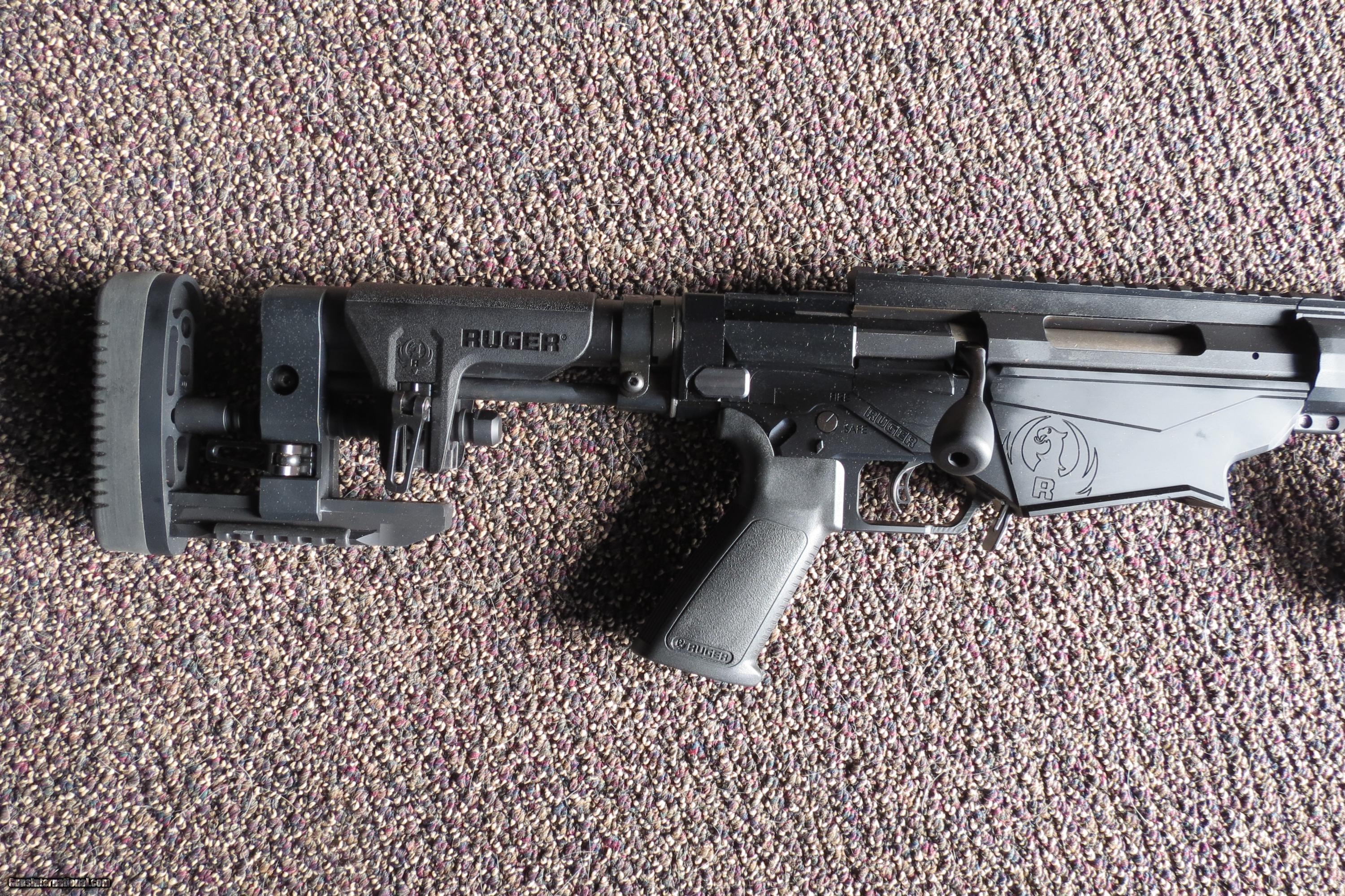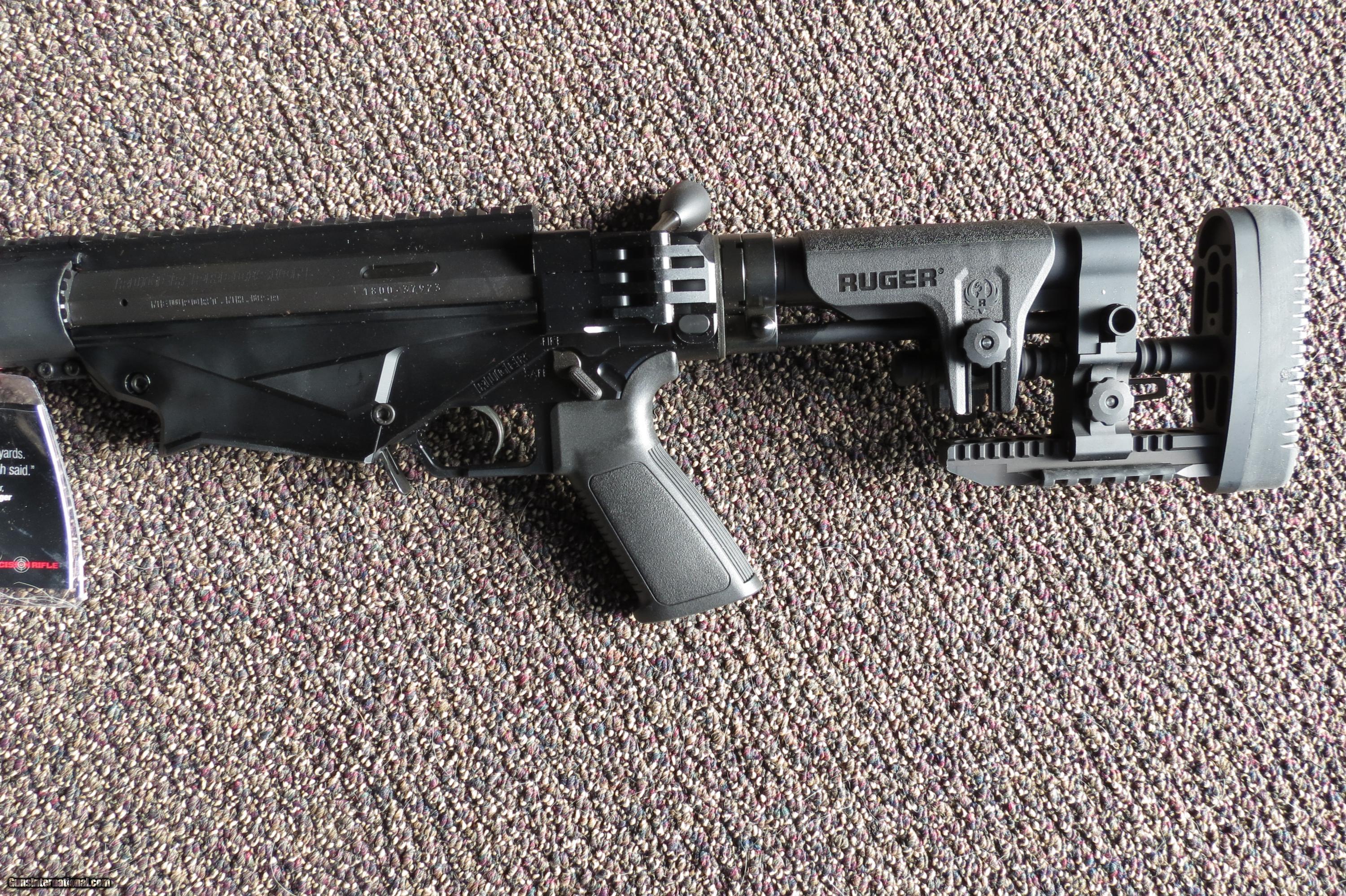 Description: Ruger Precision Rifle new in box, 308 Winchester, in-line recoil path, 20 inch free-floating cold hammer forged barrel, Multi-Magazine ingerface with two 10 round Magpul PMAGS, oversized bolt handle, Samson Evolution Keymod handguard, AR-style grip, Ruger Marksman Adjusteble trigger, MSR stock is foldable and adjustable for comb and LOP, Multiple QD sling attachment points, bottom Picatinny rail, soft rubber buttpad, left-folding stock hinge is attached to AR-style buffer tube and accepts AR-style stocks. Shipping/Insurance $35 SOLD Manufacturer: Ruger Model: Precisioin Caliber Info: 308 Winchester Condition: New in Box |