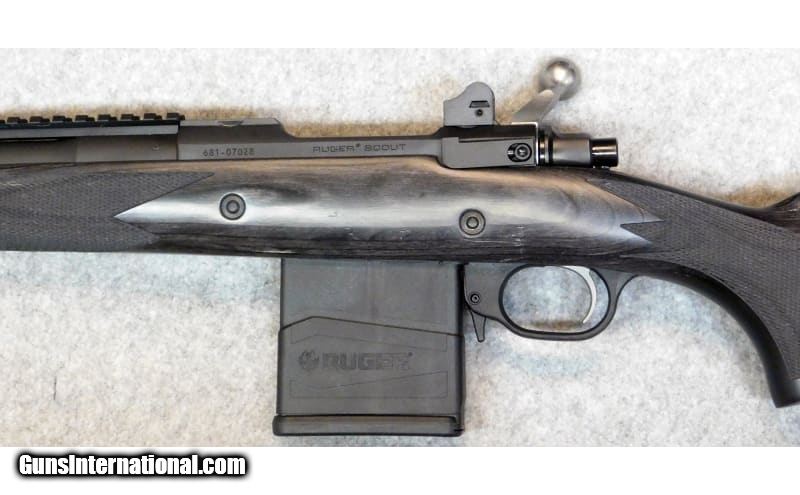 Description: Ruger ~ Scout ~ Chambered in .308 Winchester. Is a bolt action sporting carbine. Features a 16" barrel paired with iron sights, blued receiver is complimented with a dark laminate stock. Comes with factory box and documentation and two 10 + 1 capacity magazines. .308 Winchester SOLD Chambers: .308 Winchester. Metal Condition: Good Condition. Wood Condition: Good Condition. Bore Condition: Good Condition. Barrels: 16" inches. Triggers: 5.25 pounds. Stock Dimensions: 13.25" LOP. Fore End: Laminate wood. Butt Pad: Rubber. Weight: 7 pounds Sights: Iron sights. Item Location: Acworth, GA |