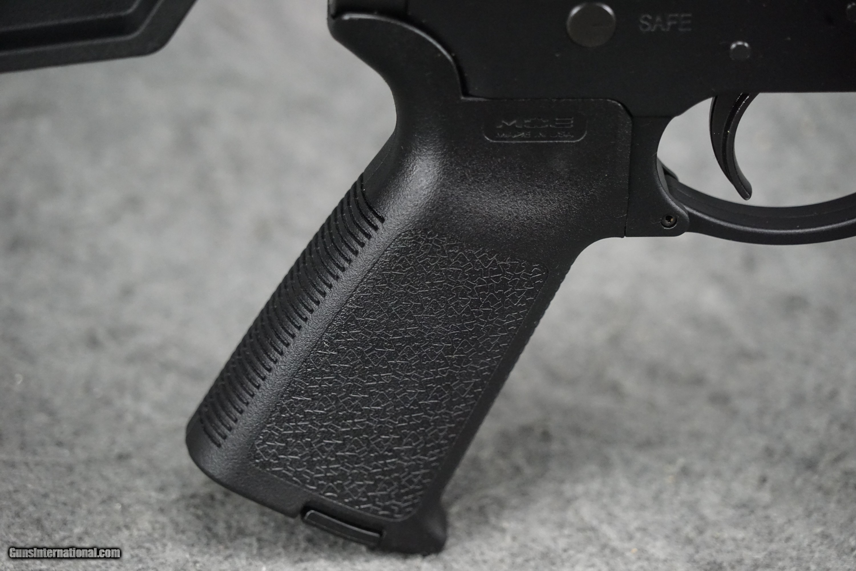 Description: A true Small-Frame Autoloading Rifle, the SFAR™ is nearly identical in size to a traditional 5.56-caliber modern sporting rifle. Chambered in 7.62 NATO / .308 Win., the SFAR combines the ballistic advantages of .308 Winchester with the size of a traditional MSR. Bolt and barrel extensions are CNC-machined from high-strength super alloy steel that outperforms traditional C158 bolts. Tapered lug geometry further strengthens the breech to support larger short-action cartridges. The bolt carrier assembly features a chrome-lined 8620 steel bolt carrier and nitride-processed gas key staked in place. The titanium firing pin has been DLC-coated for long service life. The bolt includes dual ejectors and an optimized extractor to ensure positive extraction and ejection of the spent case through the enlarged ejection port. 4140 chrome-moly steel barrel is cold hammer-forged with ultra-precise 5R rifling. The heavy profile barrel balances nicely and its attractive, black nitride finish helps ensure exceptional accuracy, longevity, and easy cleaning. Ruger® 2-port Boomer muzzle brake has large perpendicular surfaces to redirect gas and reduce felt recoil. 5/8"-24 muzzle threads on the barrel remain compatible with other brakes, flash hiders, and suppressors. 15" Lite aluminum handguard is free-floated for accuracy and features Magpul® M-LOK® accessory attachment slots along the 3:00, 6:00 and 9:00 positions. The top rail has been docked in the center for improved grip access and reduced weight while maintaining Picatinny rail sections at the front and rear. Sockets for Quick Disconnect (QD) sling swivels located at the muzzle end of the handguard allows for comfortable carry with a two-point sling. The mid-length gas system features a 0.750" 4-position rotary-regulator gas block to achieve ideal function across the wide range of ammunition available in the marketplace today. The included, on-board 3/16" ball-end wrench makes for easy regulator adjustment. Equipped with a Ruger Elite 452® trigger that delivers a smooth, crisp 4.5-pound 2-stage trigger pull. A full-strength hammer spring and lightweight hammer ensure fast lock times and consistent primer ignition. Made from a 7075-T6 hard-coat anodized aluminum forging, the upper receiver is complete with brass deflector, forward assist, and full-length Picatinny rail. The lower receiver features a generous flare on the magazine well for easy magazine insertion. Venting holes in the upper receiver, barrel extension, and bolt carrier ensure that excess gas is directed safely away from the user. The Magpul MOE SL® stock and MOE® grip provide positive control and ergonomics. The receiver end plate includes an additional socket for a QD sling swivel pocket and fills the offset space at the rear of the receiver. Compatible with mil-spec MSR trigger groups, receiver end plates, charging handles, pistol grips, and adjustable stocks. Also includes: one, 20-round Magpul PMAG® magazine and is compatible with SR25®/AR-10®-pattern .308 Win/7.62 NATO magazines. StockMagpul® MOE SL® HandguardLite Free-Float with M-LOK® Attachment Slots SightsNone Barrel Length16.10" Thread Pattern5/8"-24 GripMagpul® MOE® Capacity20 FinishType III Hard-Coat Anodized Height7.20" Weight6.8 lb. Twist1:10" RH Overall Length34" - 37.25" Length of Pull11" - 14.25" Grooves5 SOLD Rifle Caliber: 7.62x51mm NATO Manufacturer: Ruger Model: SFAR Barrel Length: 16.1" Barrel Condition: BRAND NEW |