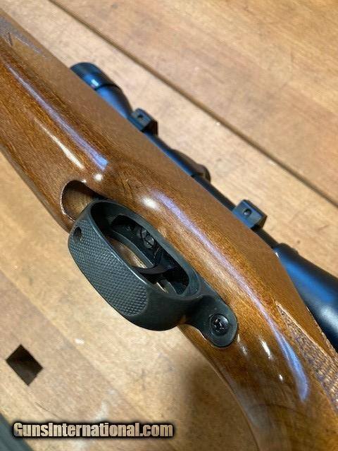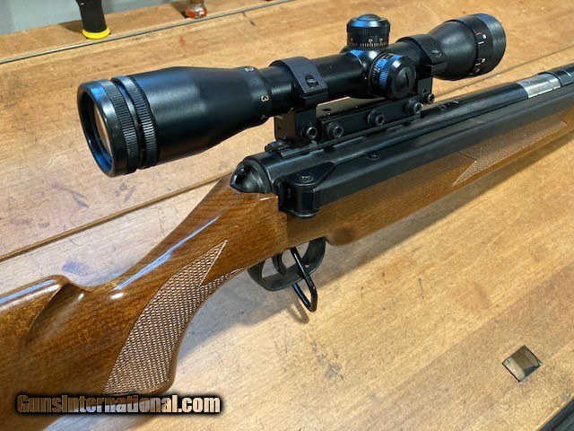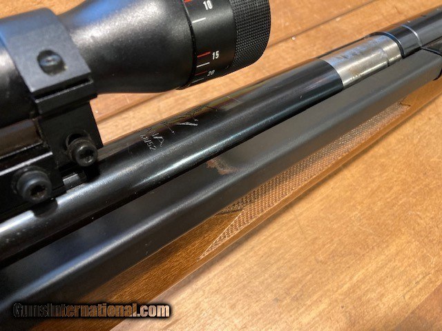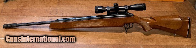 Description: Here we present a very nice RWS Diana Model 48/52 Sidelever, Spring-Piston Air Rifle chambered in .22 Caliber (5.5mm). The rifle is in Very Good Condition with some light handling marks, and was most likely manufactured some time in the mid-late 1980's as it reads "Made in West Germany" on the left side of the receiver. The 17-1/2" barrel has an excellent, shiny bore with strong rifling and retains about 95% of its original bluing with just a few light scratches. The nicely checkered wood stock with right-handed cheek piece is in great shape as well with just a few minor handling marks. The sidelever cocking mechanism operates very smoothly at around 35lbs, and everything functions as it should. The rifle is also equipped with a 2-7X scope with a clear reticle and the windage/elevation adjustment knobs function very well. This rifle is very accurate and has more than enough power for small game hunting. Feel free to call or text with any questions. SOLD Rifle Caliber: .22 (Air Rifle) |