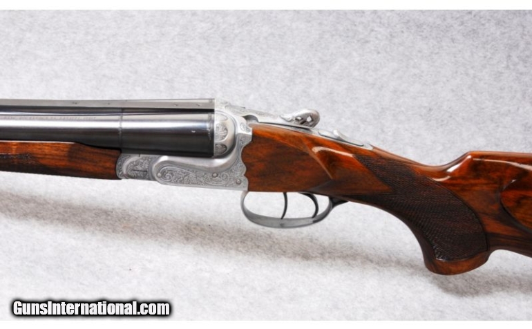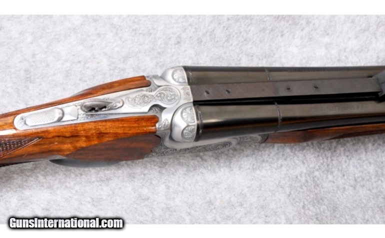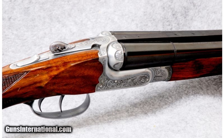 Description: SOLD Caliber Info: .500 Nitro Express. Metal Condition: Gray, engraved, scalloped receiver with oak leaves and vine engraving, engraved fences and trigger guard, engraved top lever with an upper tang non-automatic safety and ejectors. Wood Condition: Excellent. Bore Condition: Excellent. Barrels: 24" heavy barrels with a quarter rib and a barrel mounted sling stud. Triggers: Double triggers. Stock: Dark figured walnut with a cheek piece, checkered pistol grip, and a sling stud. Stock Dimensions: LOP: 14 1/4". Fore End: Wide checkered fore end with an Anson-Deeley push-button release. Butt Pad: Rubber recoil pad. Weight: 9 lbs. 12 oz. Sights: Ramped brass bead blade front sight and 2 folding, and one standing, rear sights on the quarter rib. Item Location: Kansas City, KS |