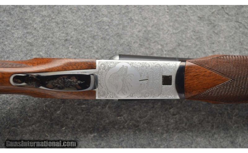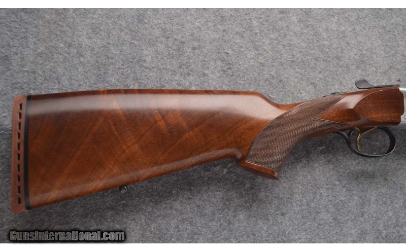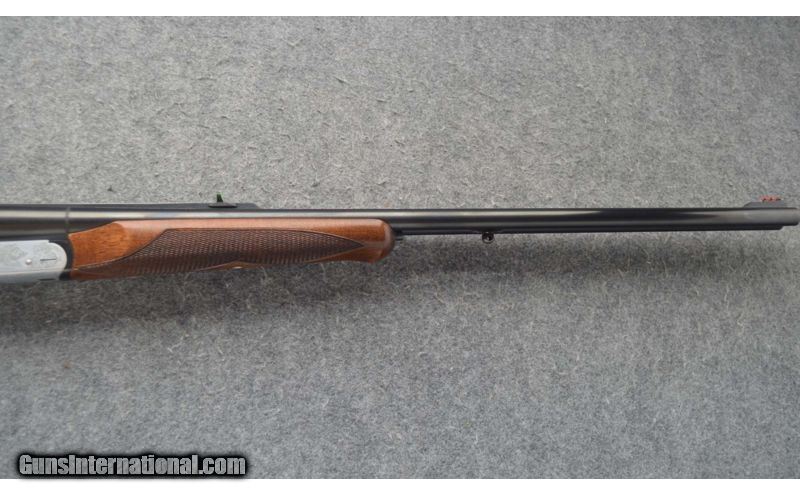 Description: Classic 92 with modified Anson and Deeley box lock action, Milled steel billet reciever with nickel plated finish with engraving, Solid standing breech attached to double limbed water table. SOLD Caliber Info: 45.70 gov't Metal Condition: Few noticeable handling marks Wood Condition: Few minor handling marks Bore Condition: Bright and sharp Excellent rifling Barrels: 24" Chrome molybdenum cold hammer forged steel Triggers: Gold plated with manual tang safety Stock: European high gloss walnut pistol grip raised cheek piece Stock Dimensions: Lop 14 1/2" DAH 2 1/4" DAH 1 3/4 Fore End: European high gloss walnut, beaver tail with Anson type release Butt Pad: BMR red rubber Weight: 9 lbs 8 oz Sights: Rear green fiberoptic , front red fiberoptic bar, standing quarter rib drilled and tapped for scope mounts Extras: None Item Location: Sidney, NE |