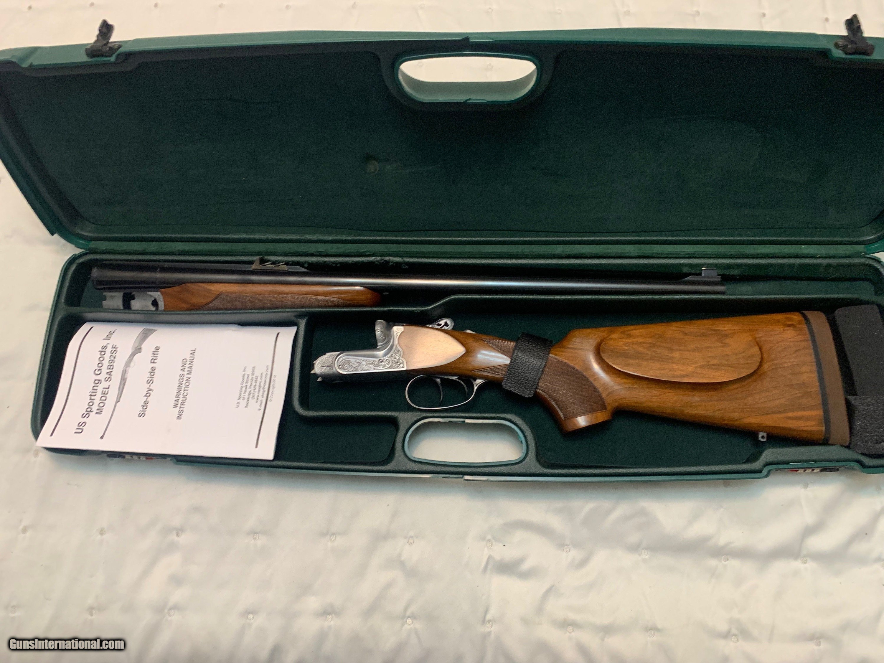 Description: This is a Sabatti double rifle fully engraved in pristine condition in .450/.400 Nitro Express. It has leaf sites and an extra scope base. The barrel is 24 inches long. SOLD Rifle Caliber: .450/400 Nitro Express Manufacturer: Sabatti Model: Safari Barrel Length: 24 inch |