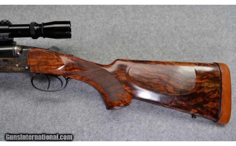 Description: SOLD Caliber Info: 9.3X74R Metal Condition: Excellent Wood Condition: Very Good, a few small dings and scratches. Bore Condition: Excellent, clean, bright, strong rifling. Barrels: 23.5 Inch Triggers: Double Stock: Opto Wood Stock Dimensions: 13.5,14.5 LOP Butt Pad: Leather Weight: 8 Pound Sights: Leupold Vari-X 3X9, Fiber Optic buckhorn and post Extras: Die set, 2 boxes of bullets and hard case Item Location: Springfield, OR |