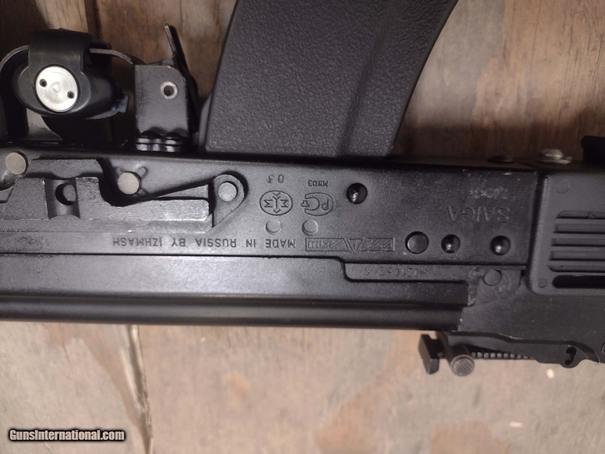 Description: Guns Listing ID: 470790 Izmash Russia Saiga, matte black with aftermarket pistol grip and adjustable stock. Includes one 30 round mag and hard case. Small scratches along barrel, finish is matte black. SOLD Manufacturer: EAA Model: Izmash Saiga Caliber Info: 7.62 X 39 MM Condition: Used - Non-Certified Barrels: 19 BARREL |