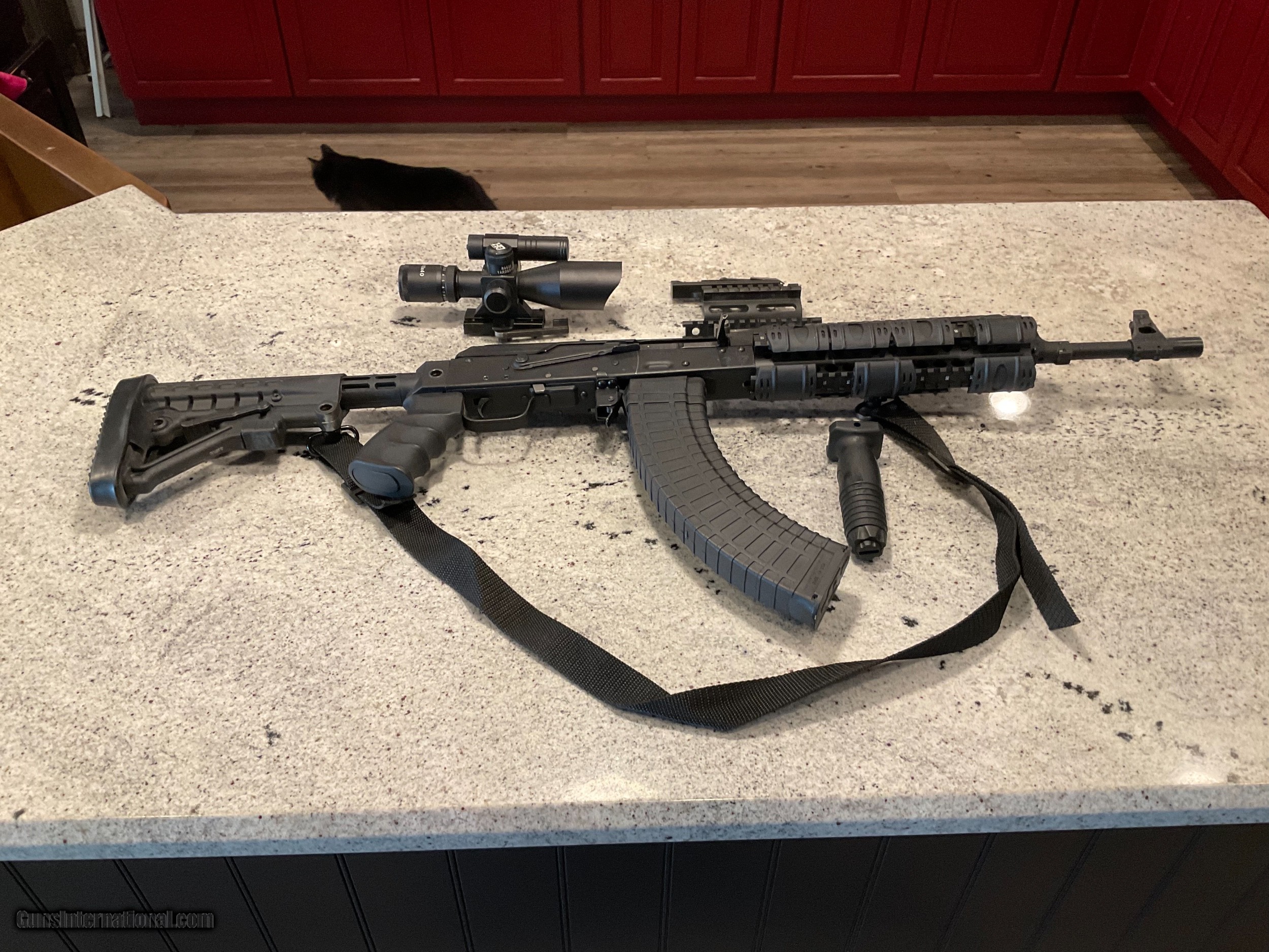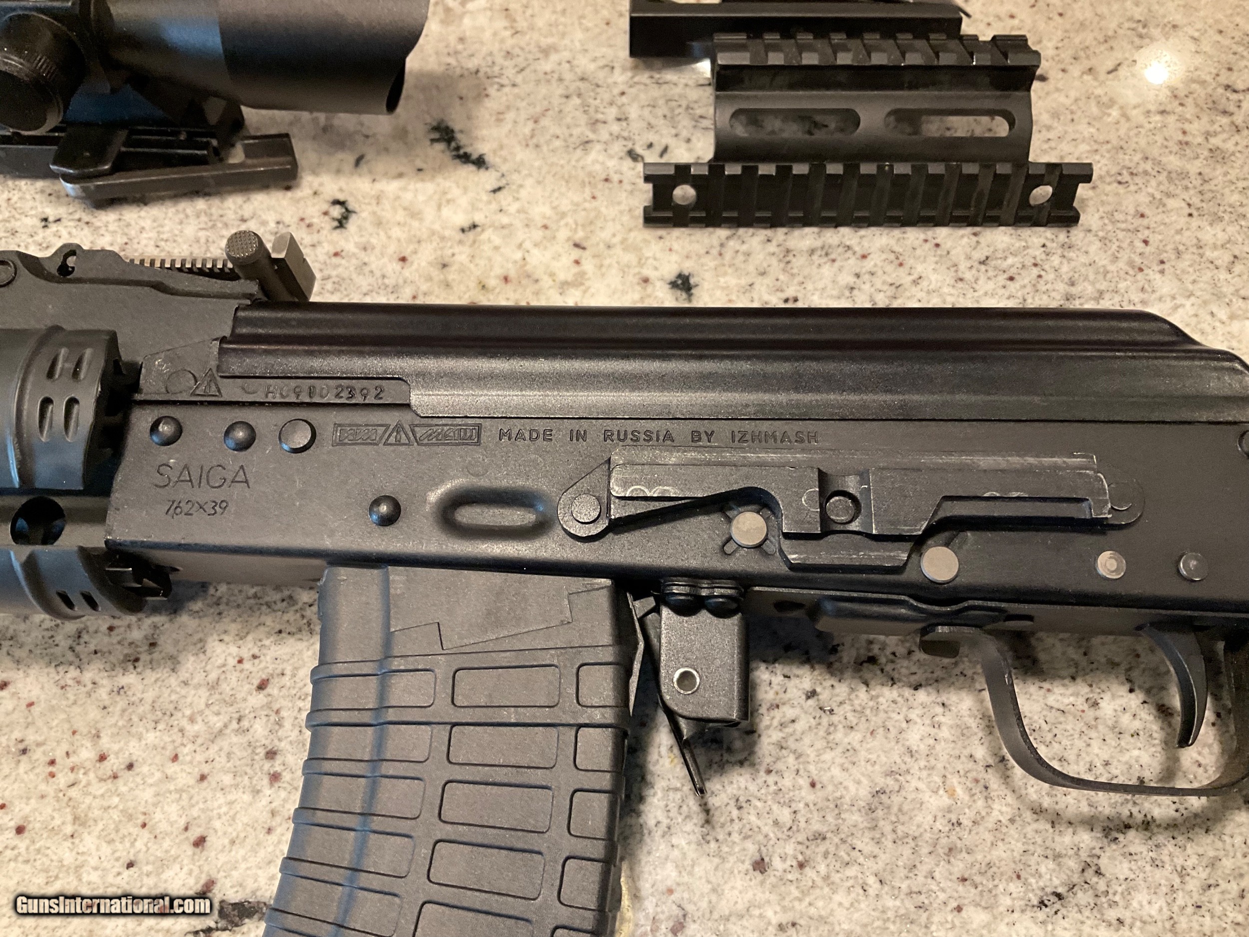 Description: THIS IS A EXCELLENT SAIGA IZHMASH AK47. NEVER BEEN FIRED. IT IS A PRE-BAN FROM RUSSIA, MEANING RUSSIA CAN NO LONGER IMPORT THIS RIFLE TO THE U.S. IT COMES WITH SLING, FRONT HAND GRIP, SCOPE (HO ISSUE 2.5-10x40) AND GREEN LIGHT LASER AS WELL AS FULLY COVERED BARREL GUARDS. COMES WITH 30 MAG. LISTED TO SELL AT $850. Ships to your FFL in the lower 48 for $65 shipping and insurance. SOLD Rifle Caliber: 7.62x39mm |